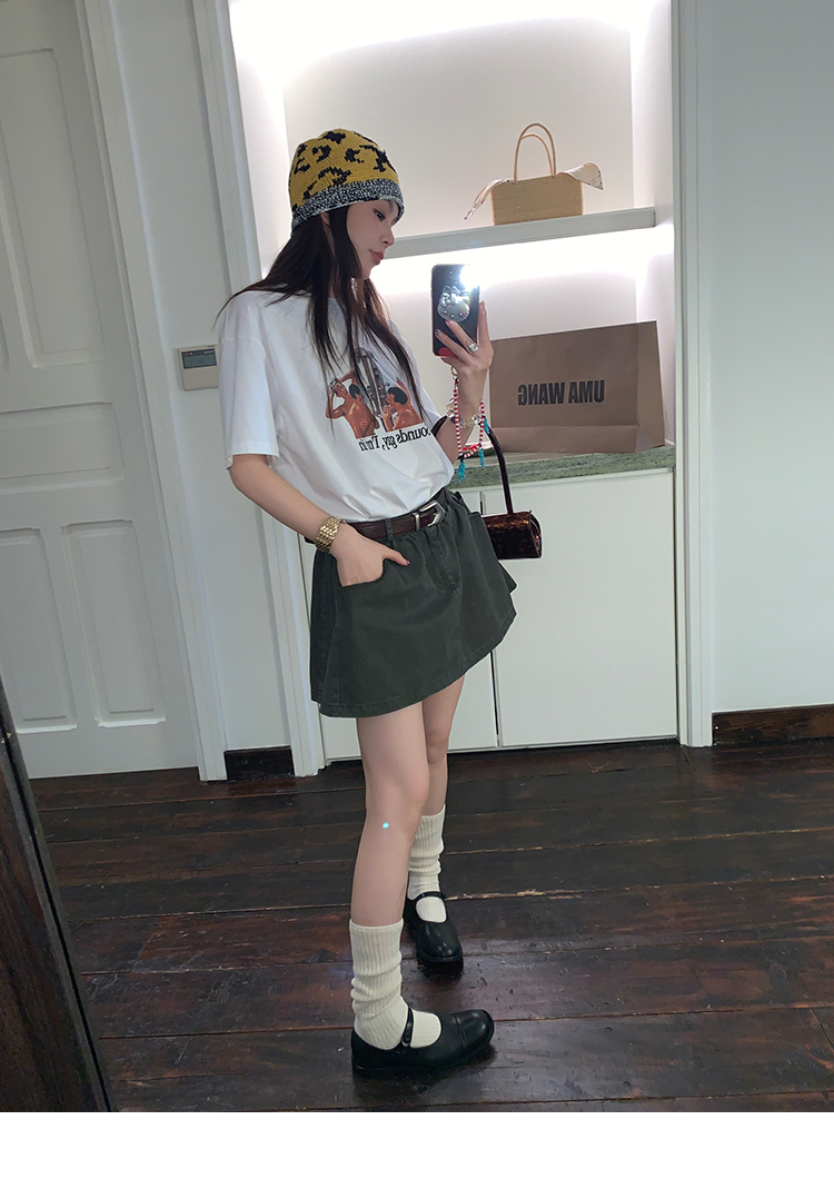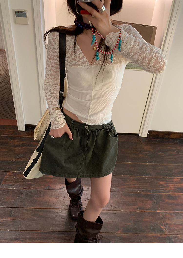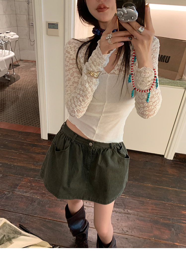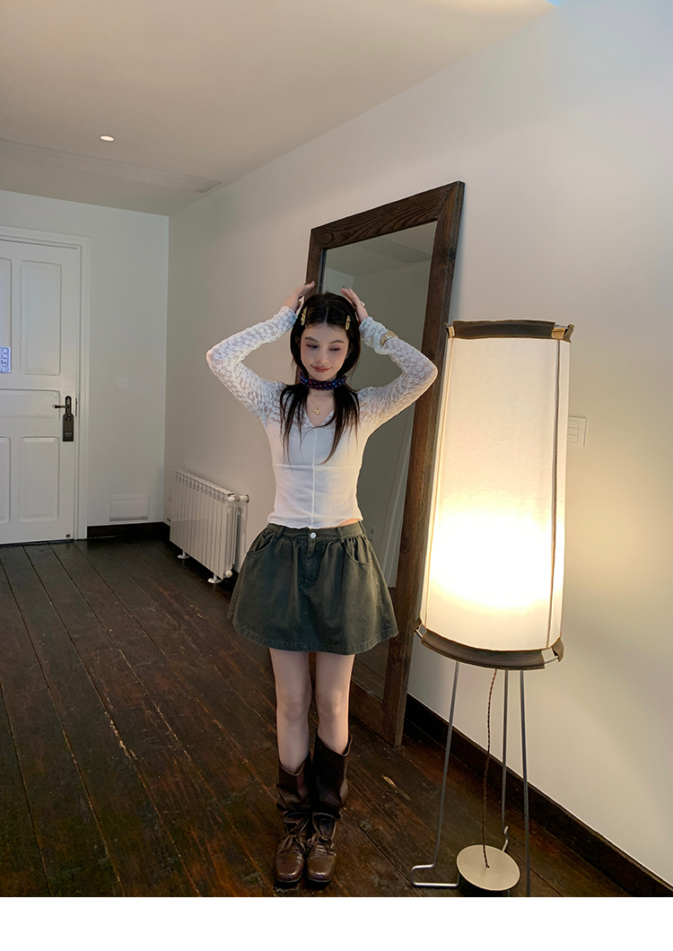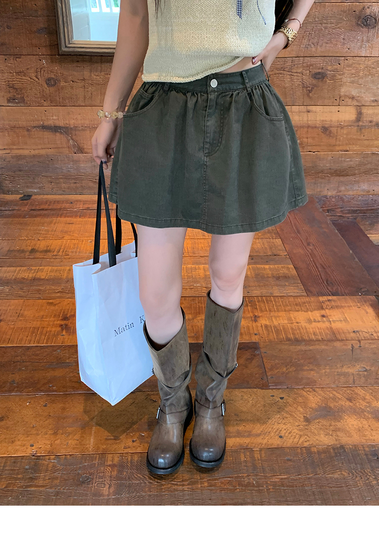 LRIB Wash Craft Vintage Green Folded Workwear Half Skirt