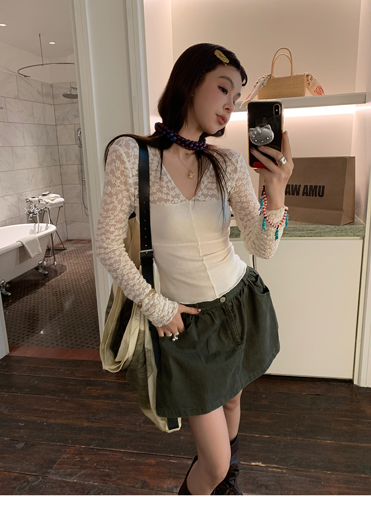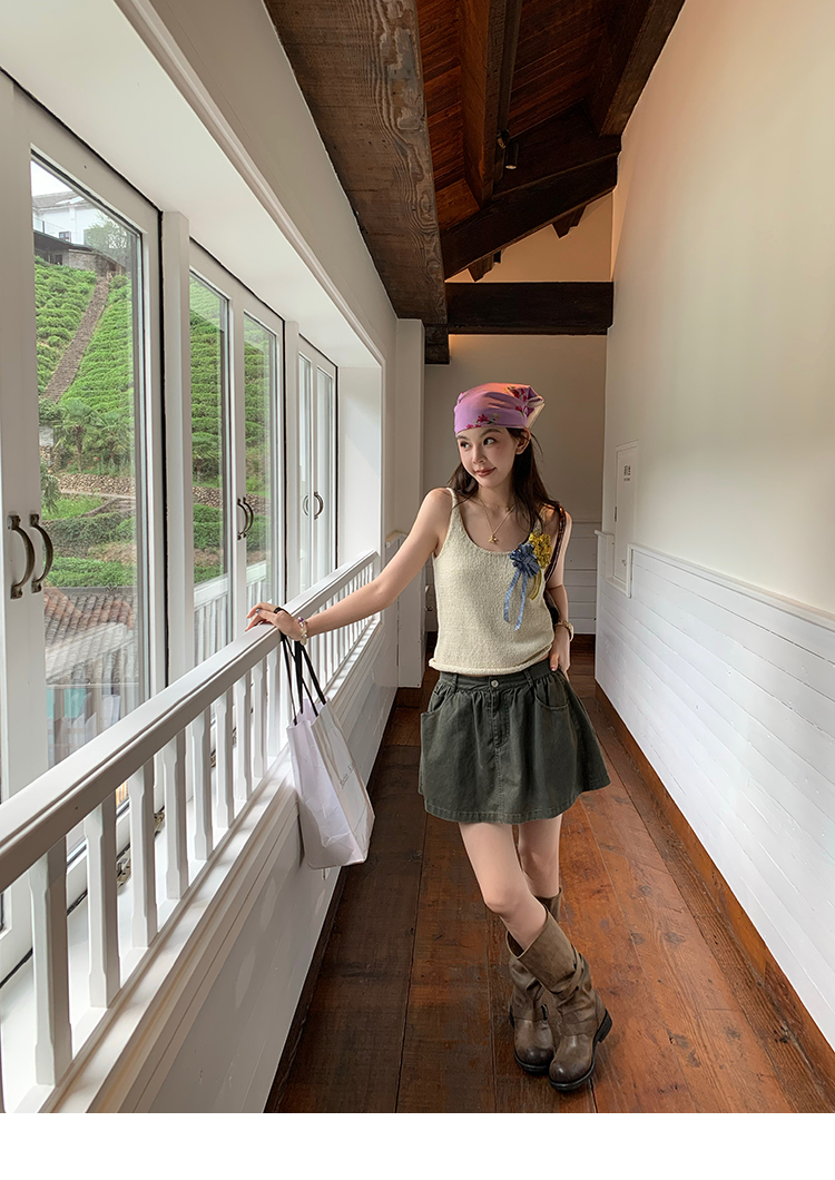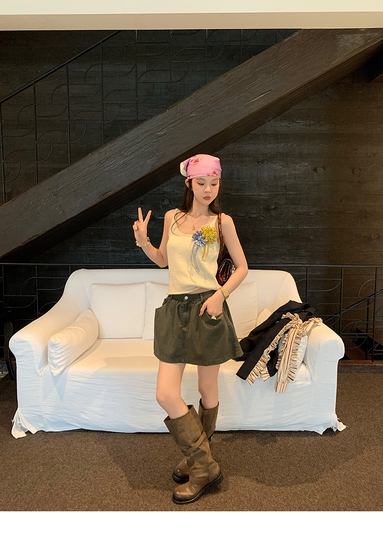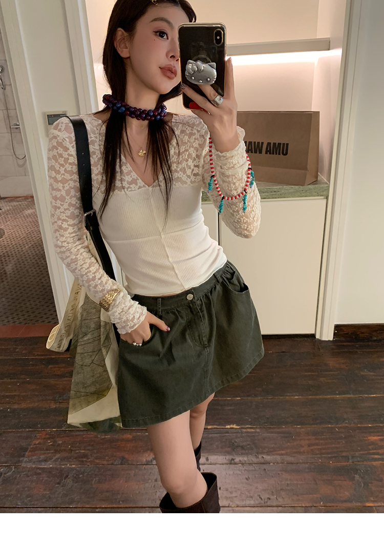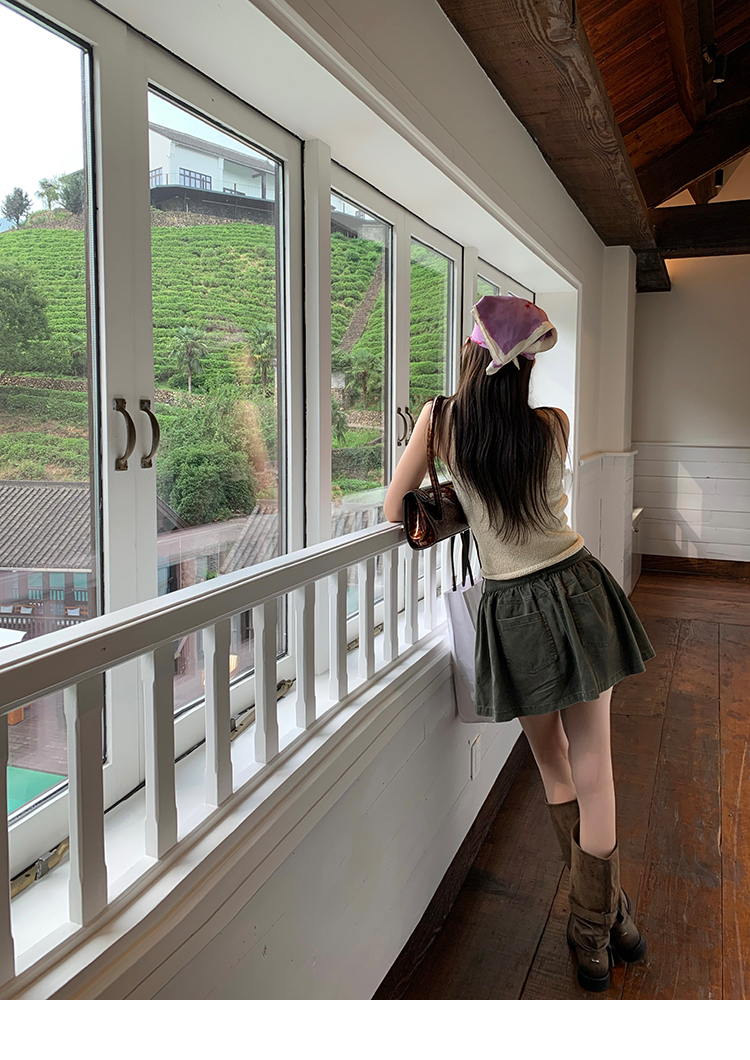 LRIB Wash Craft Vintage Green Folded Workwear Half Skirt