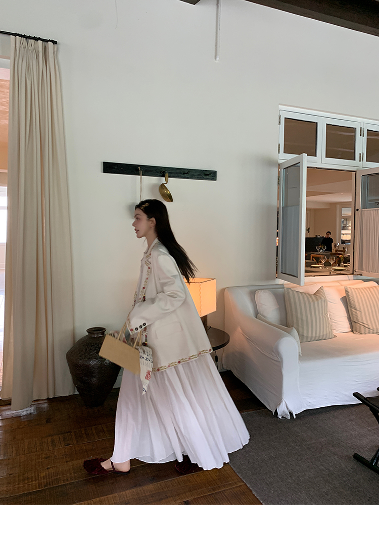 LRIB light art series colorful flower embroidery lace beige suit jacket