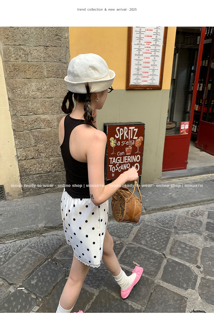 MONARTW black and white polka dots high-waisted pants