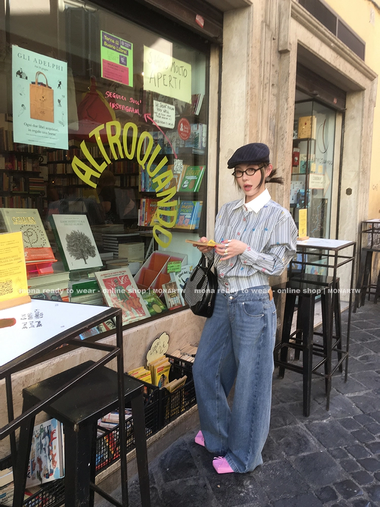 MONARTW striped long-sleeve loose shirt