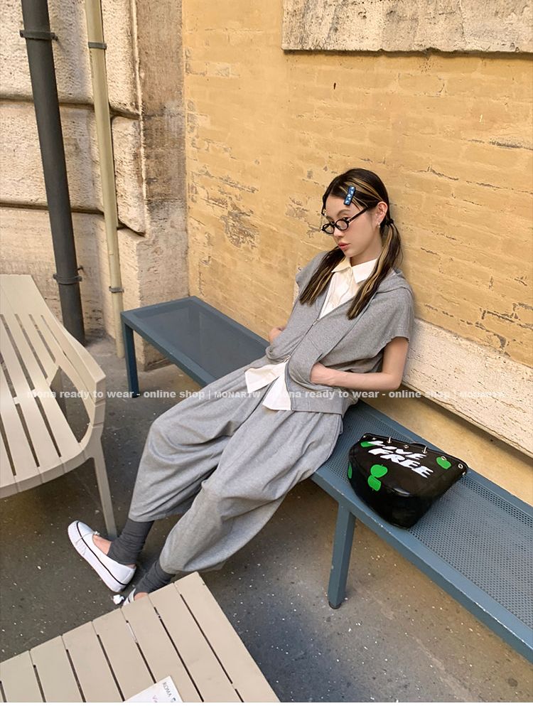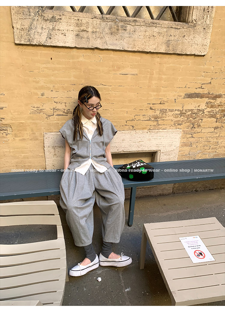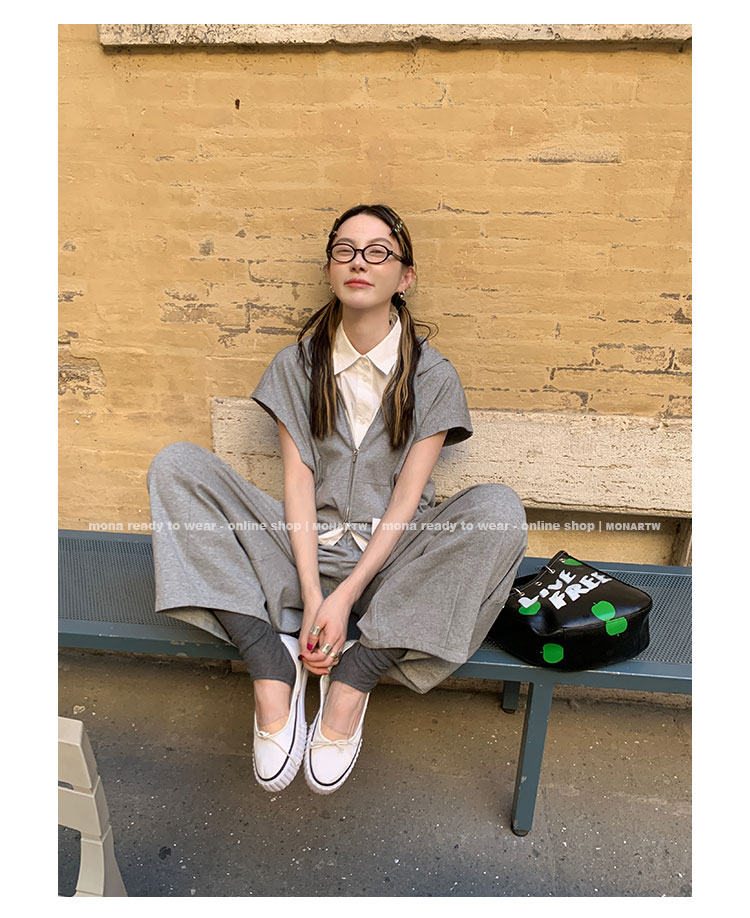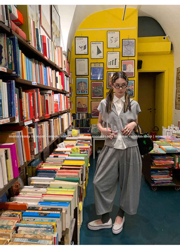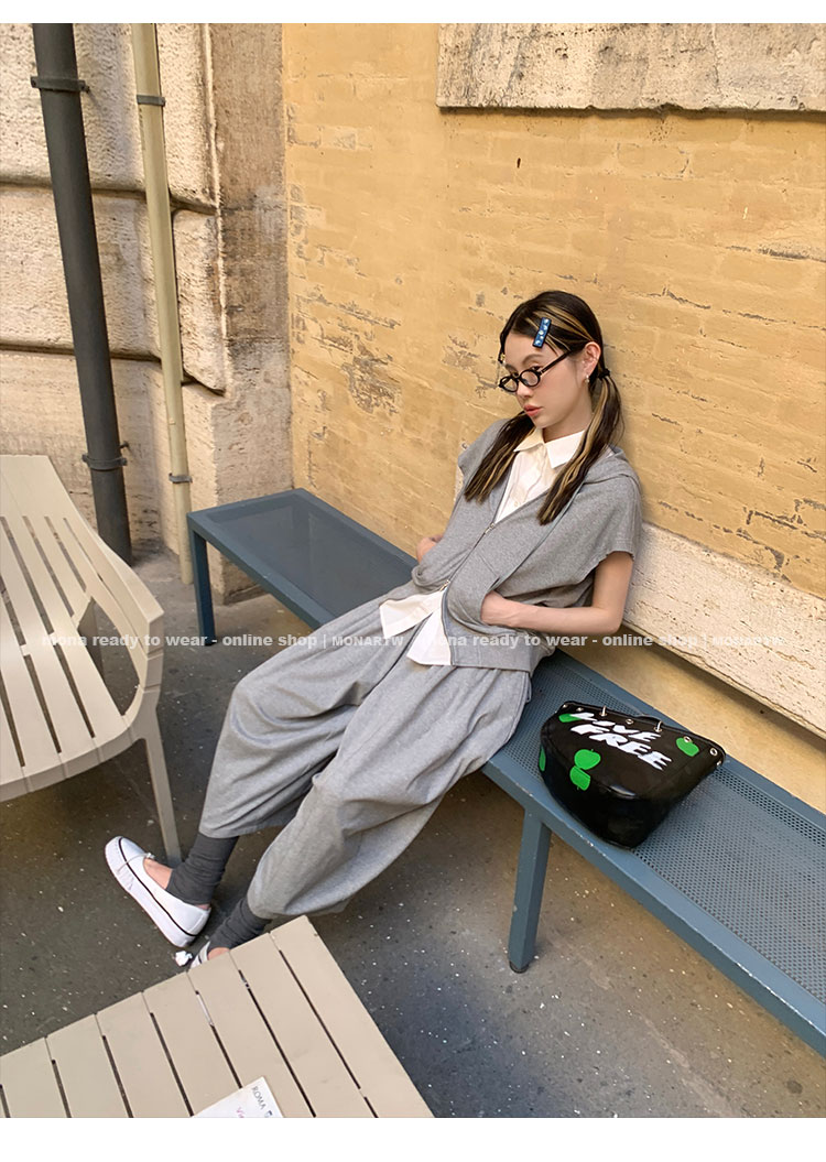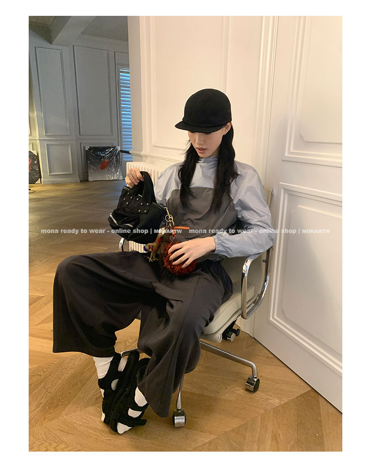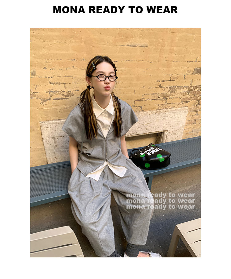 MONARTW Fake Two-Piece Loose Jacket Mid-Waisted Pants Set