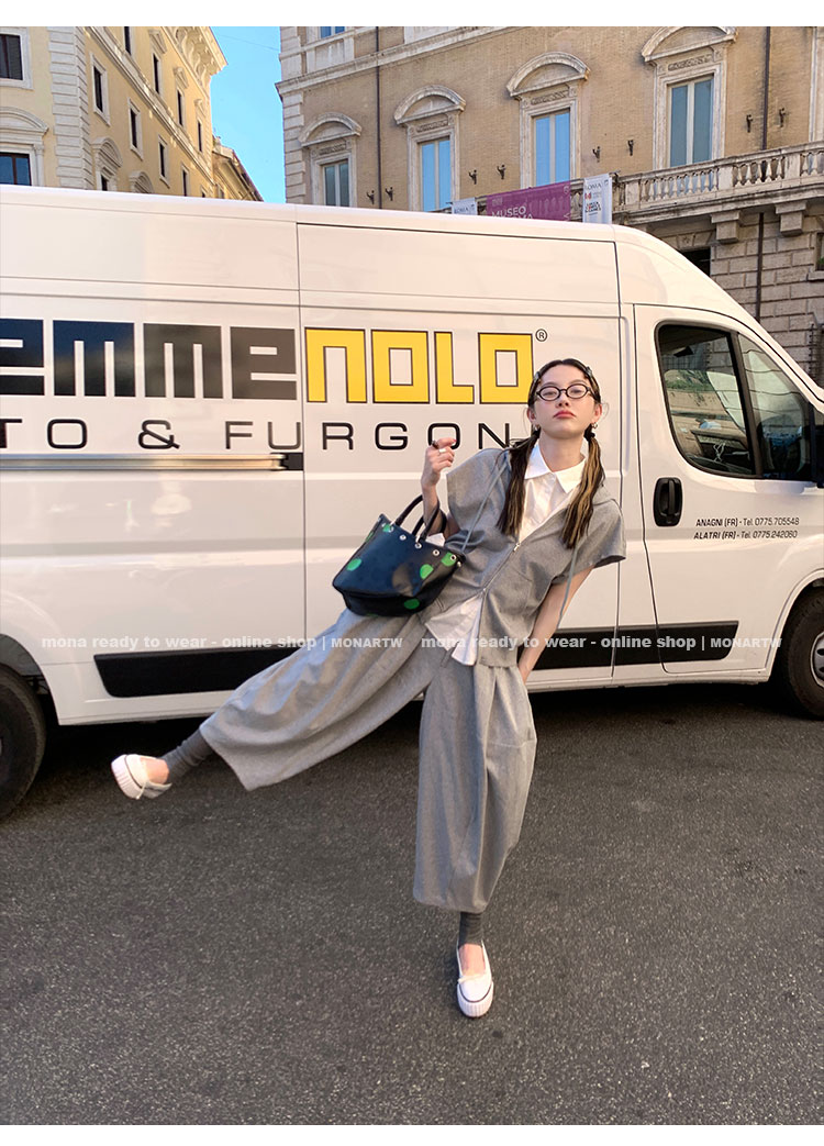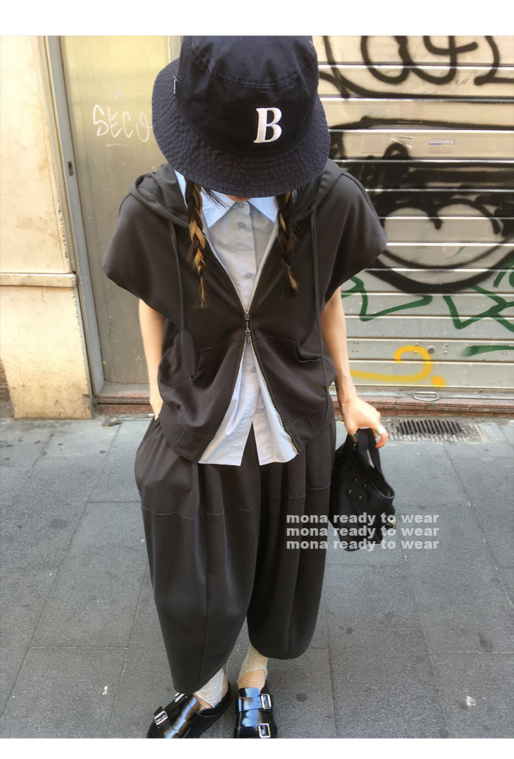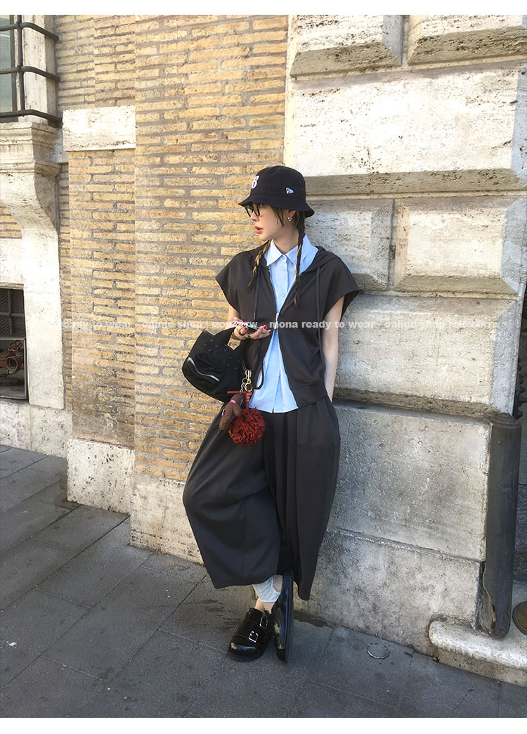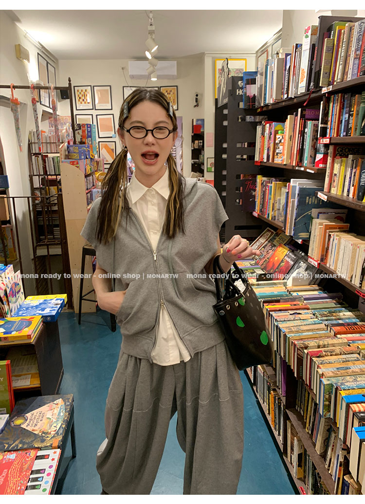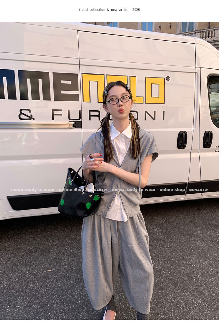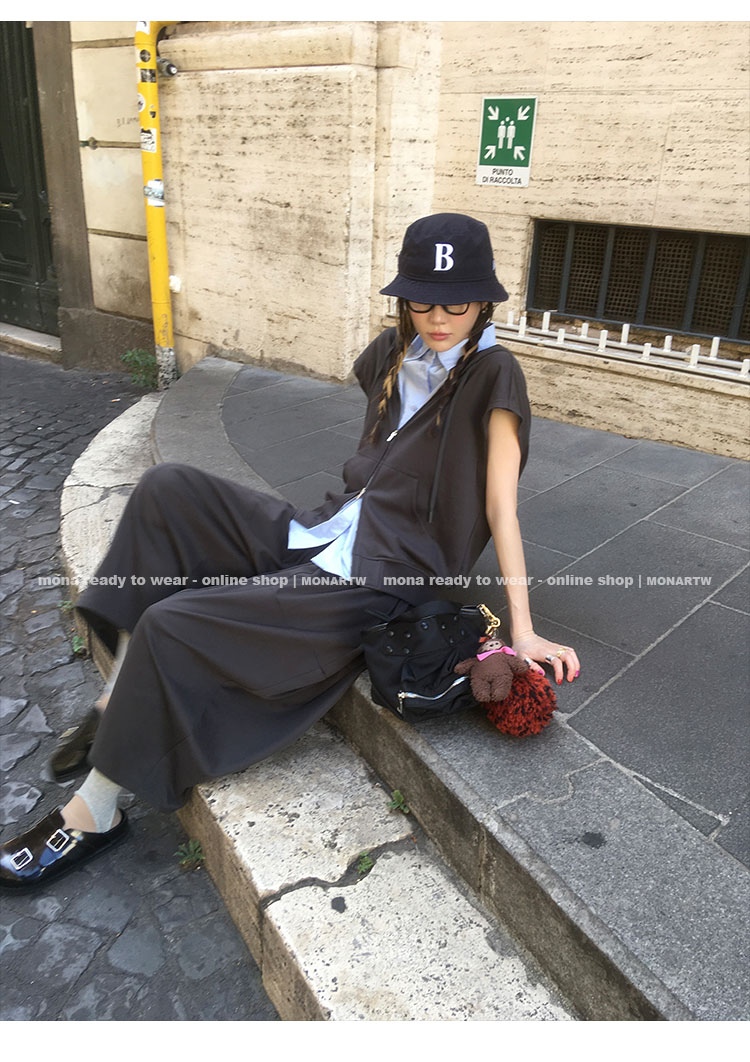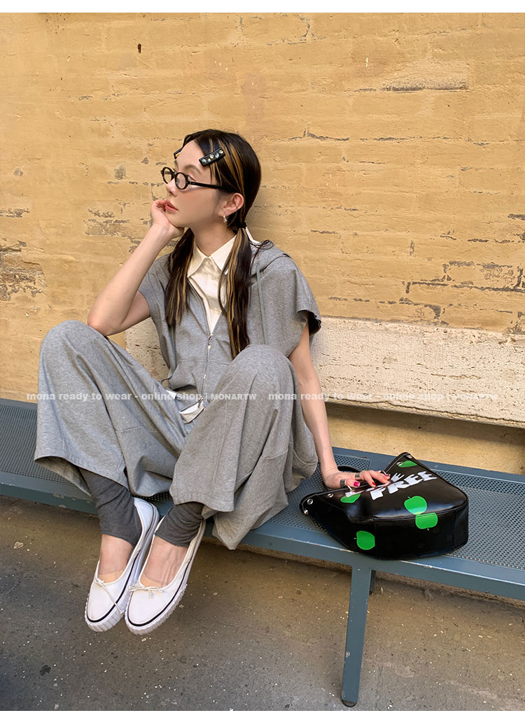 MONARTW Fake Two-Piece Loose Jacket Mid-Waisted Pants Set
