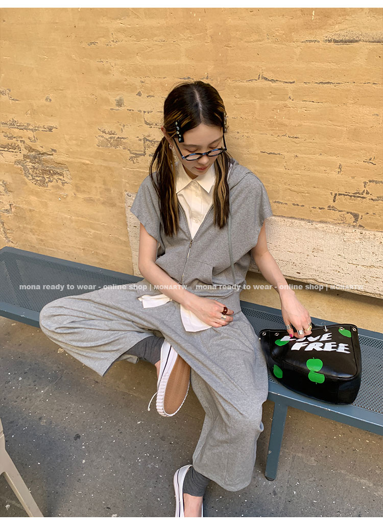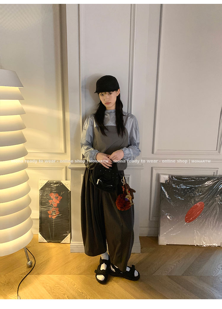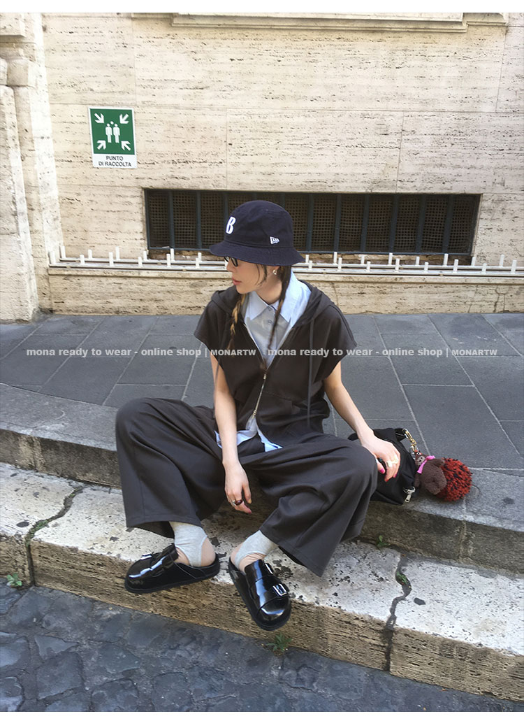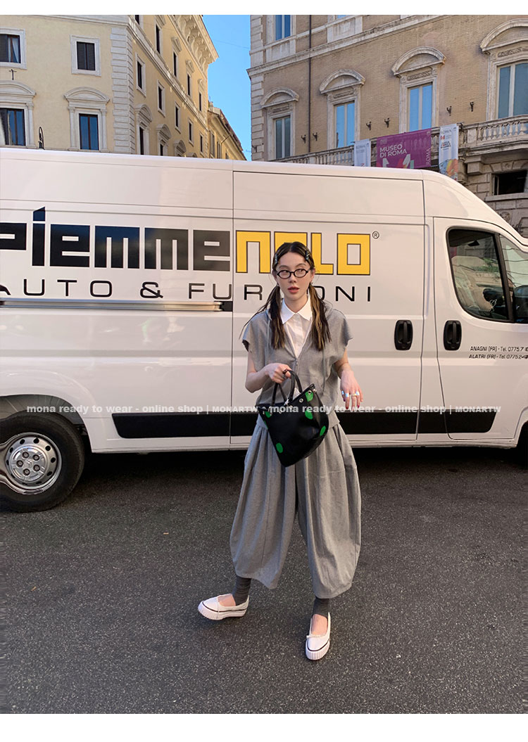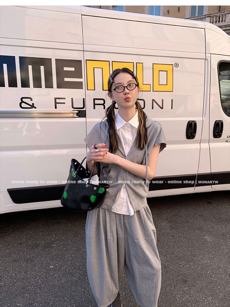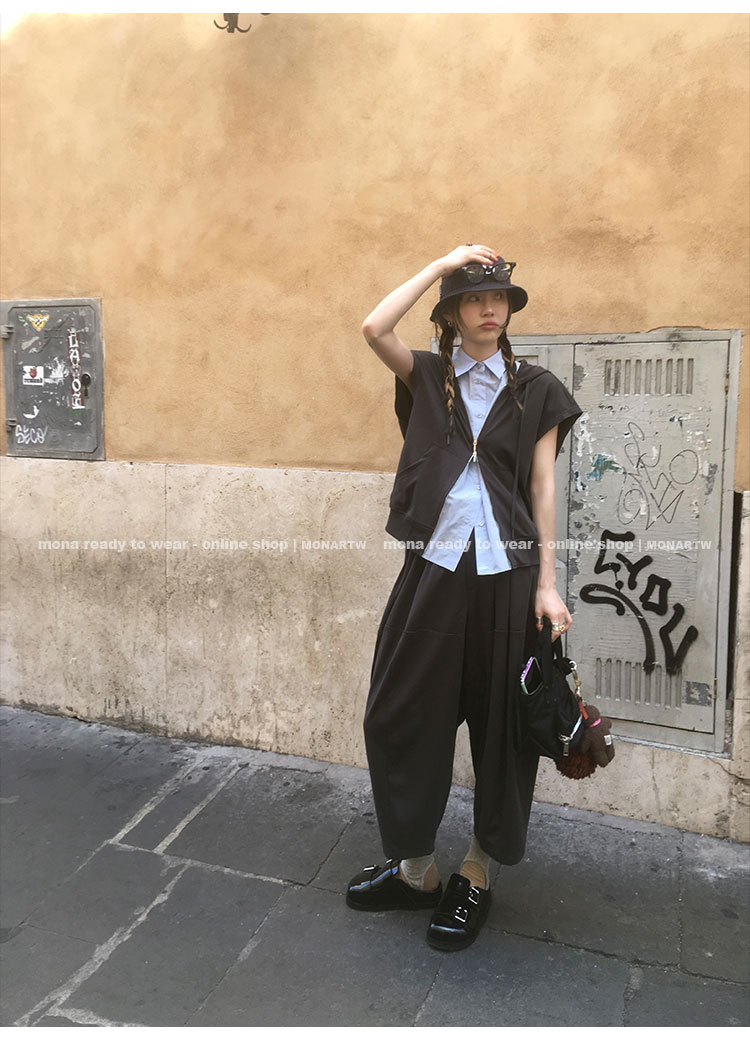 MONARTW Fake Two-Piece Loose Jacket Mid-Waisted Pants Set