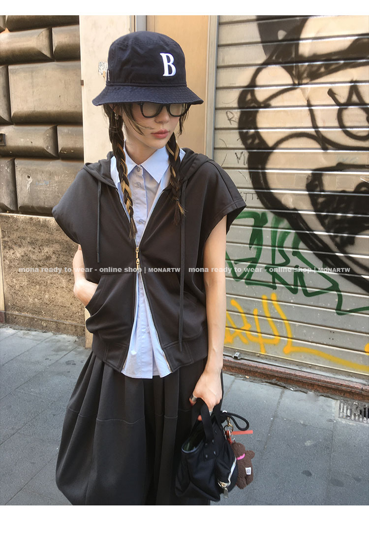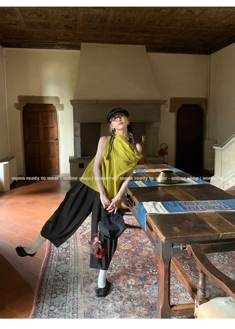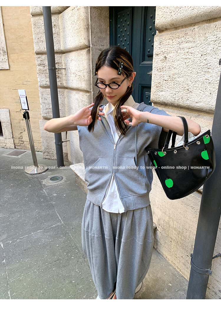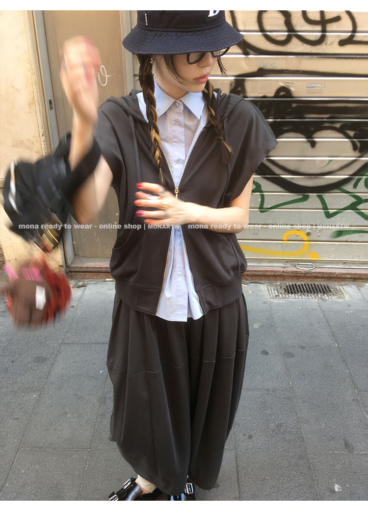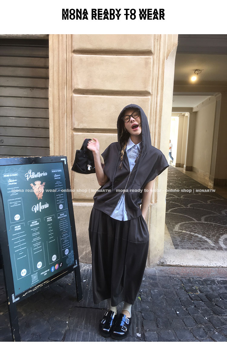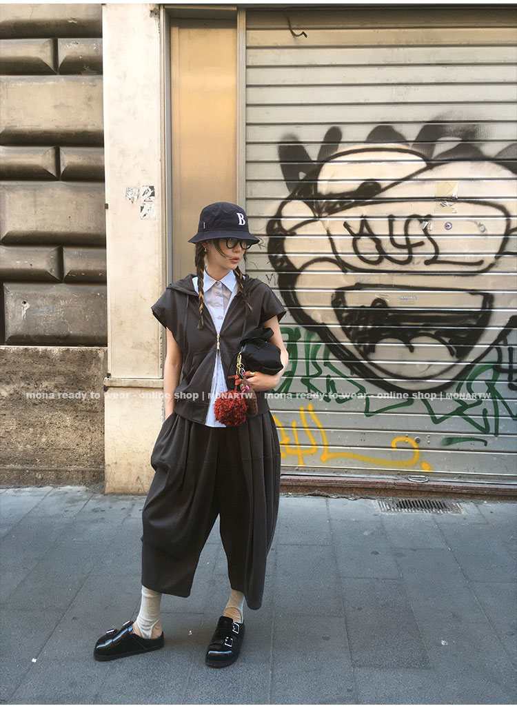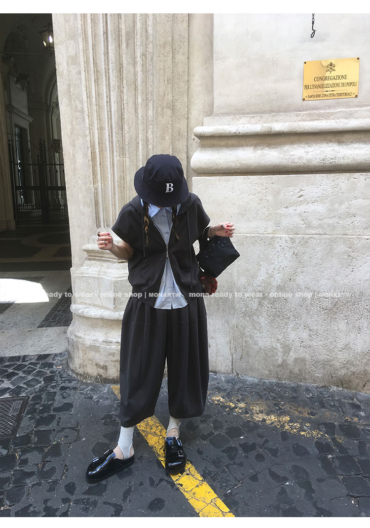 MONARTW Fake Two-Piece Loose Jacket Mid-Waisted Pants Set