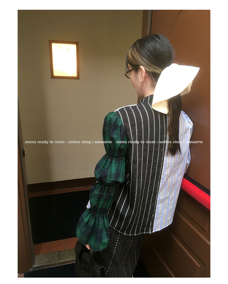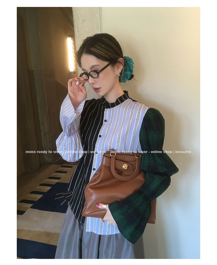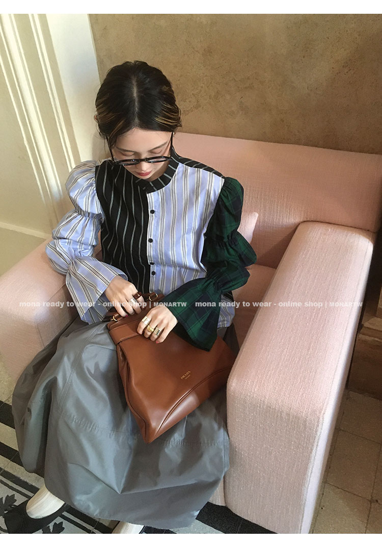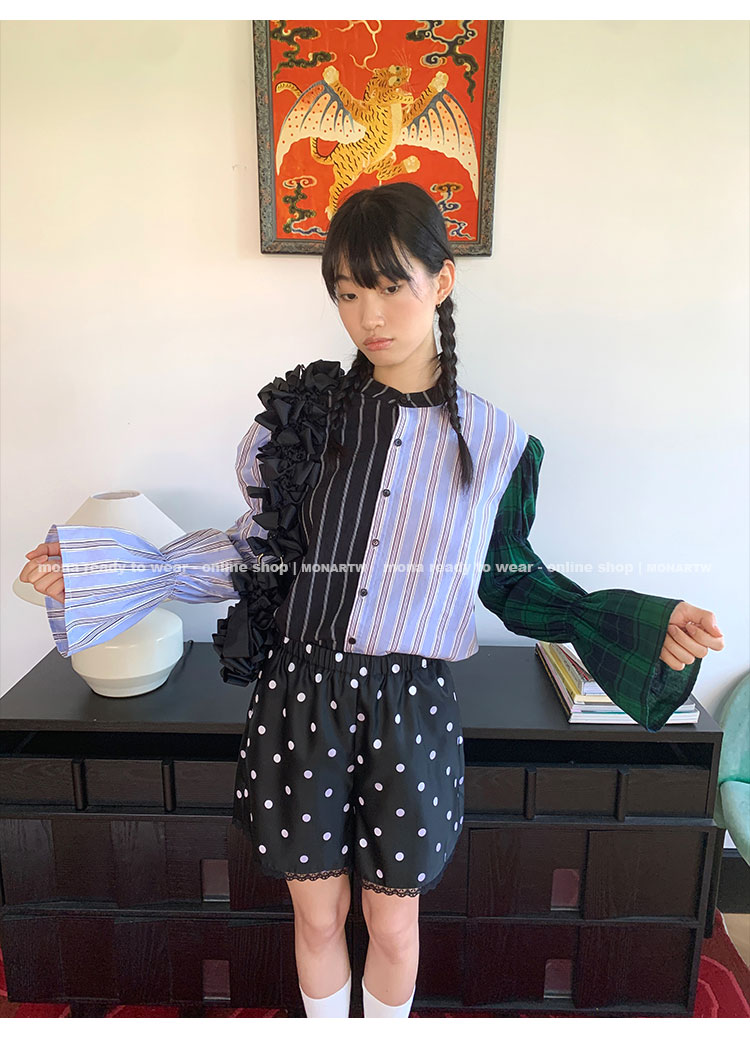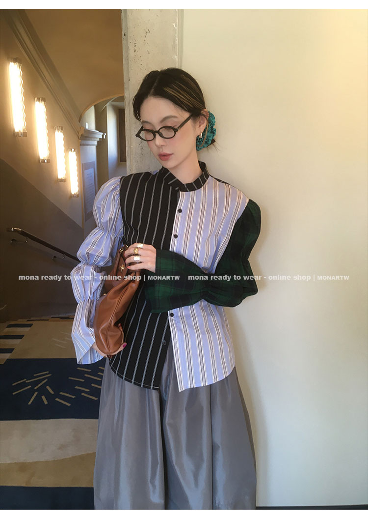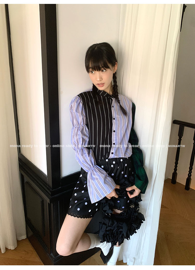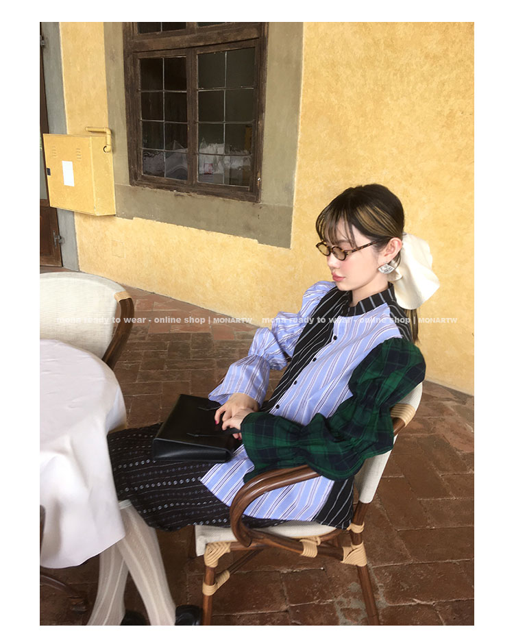 MONARTW Unique Color Collision Stitching Flute Sleeve Shirt