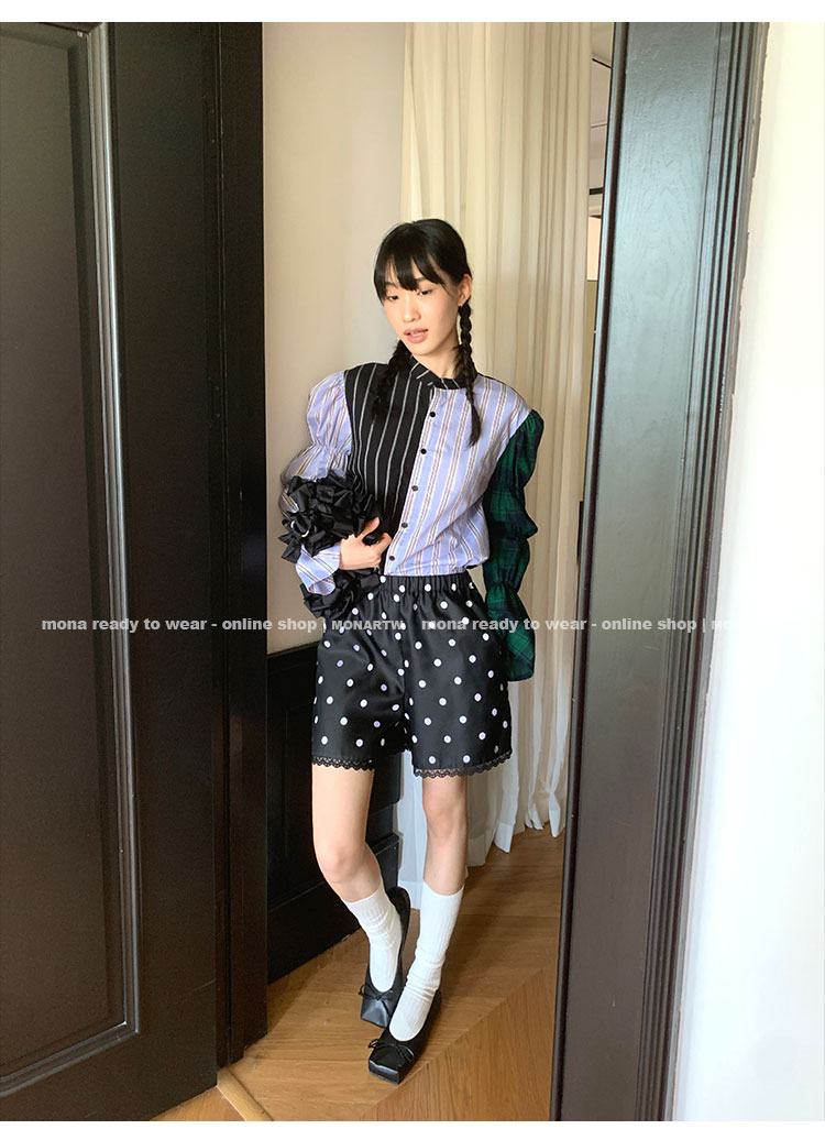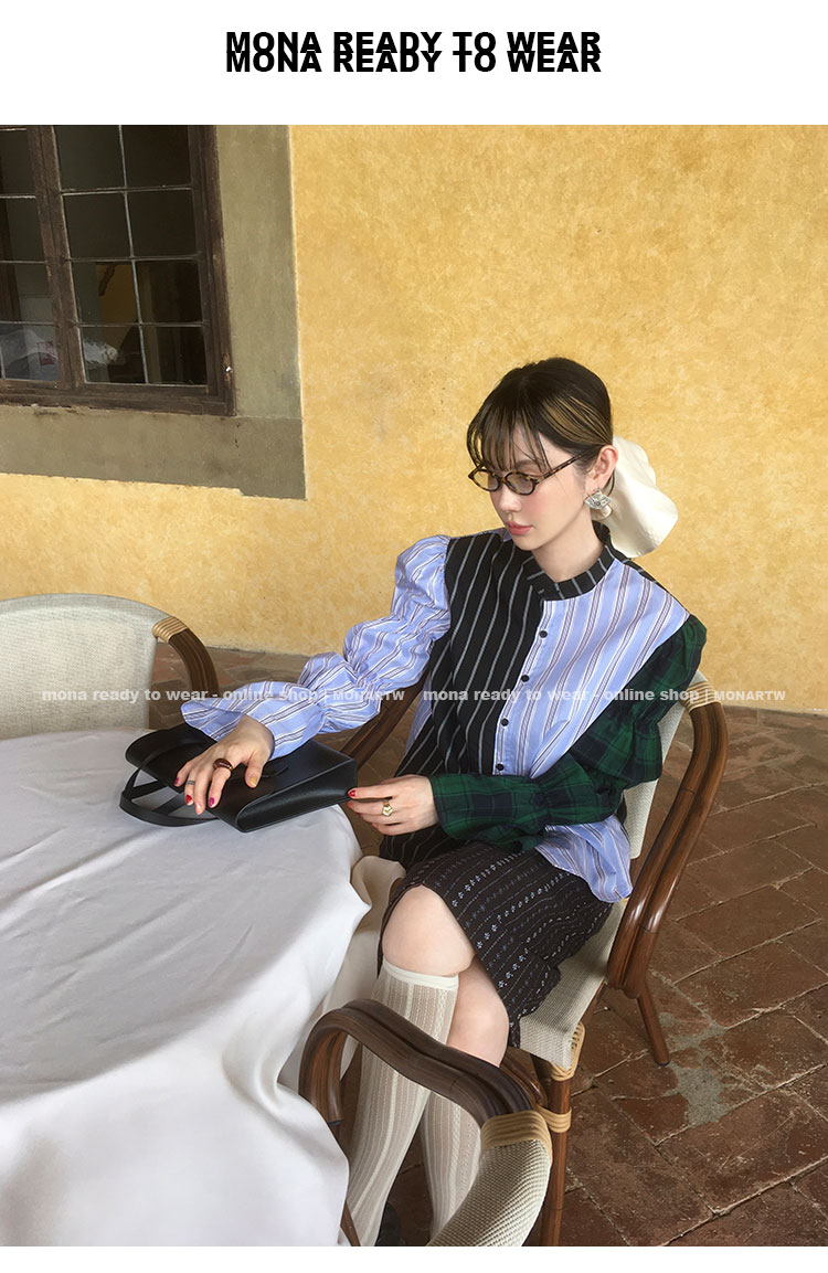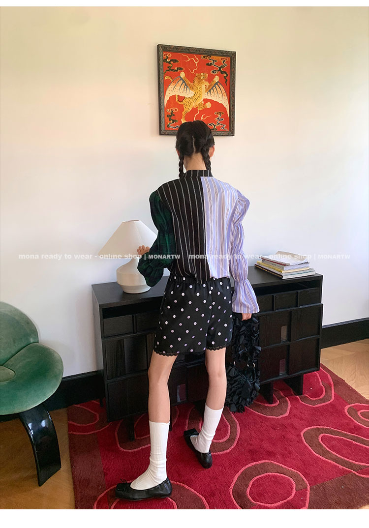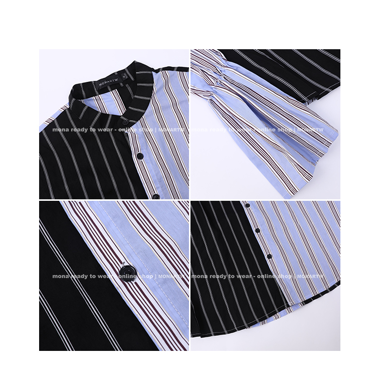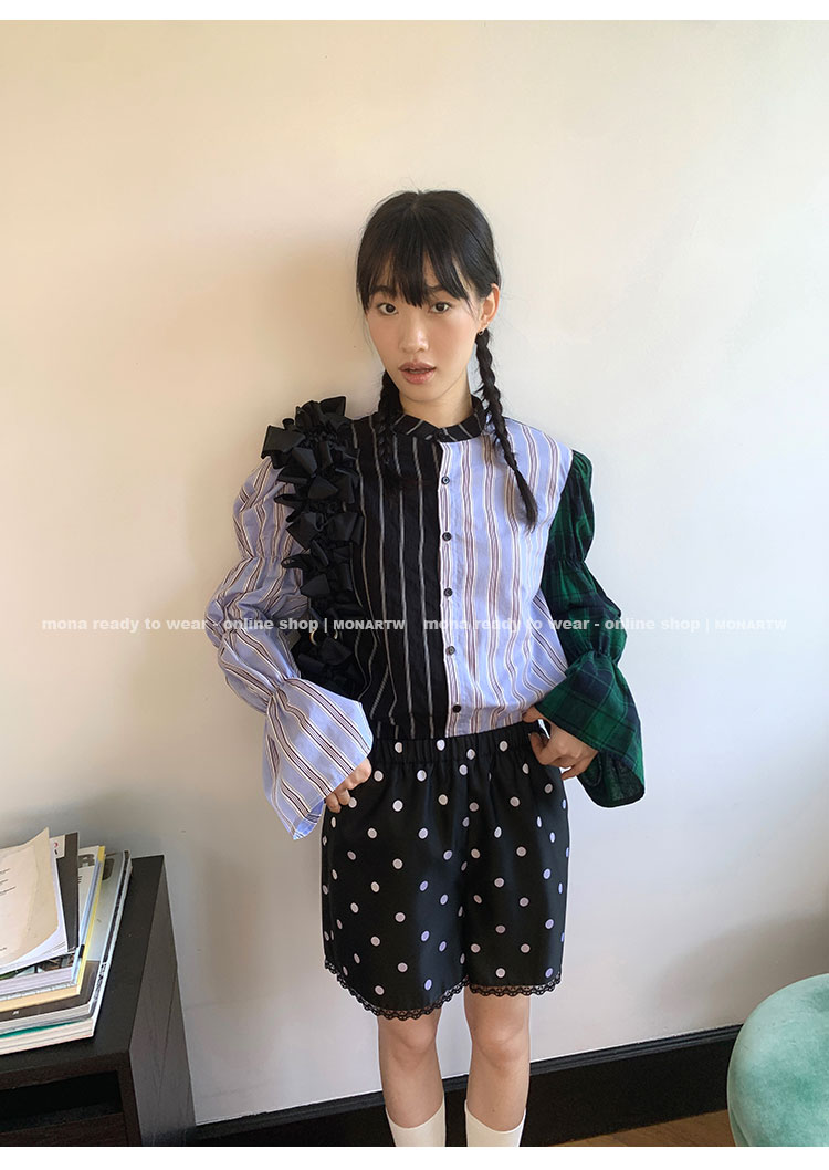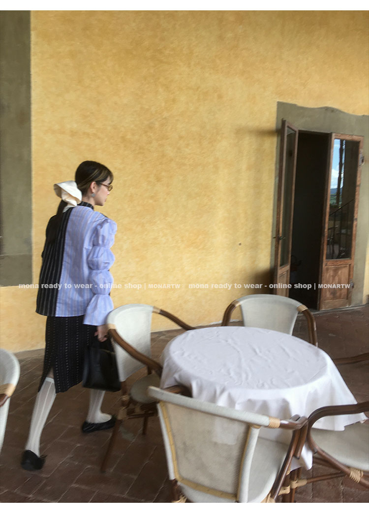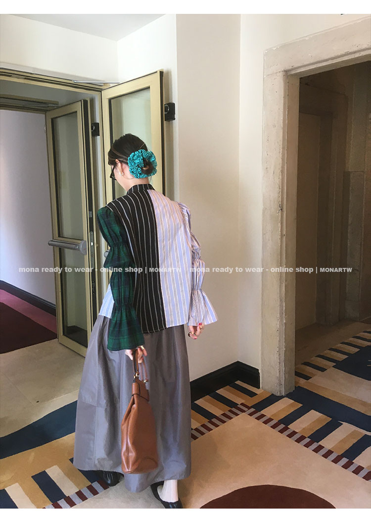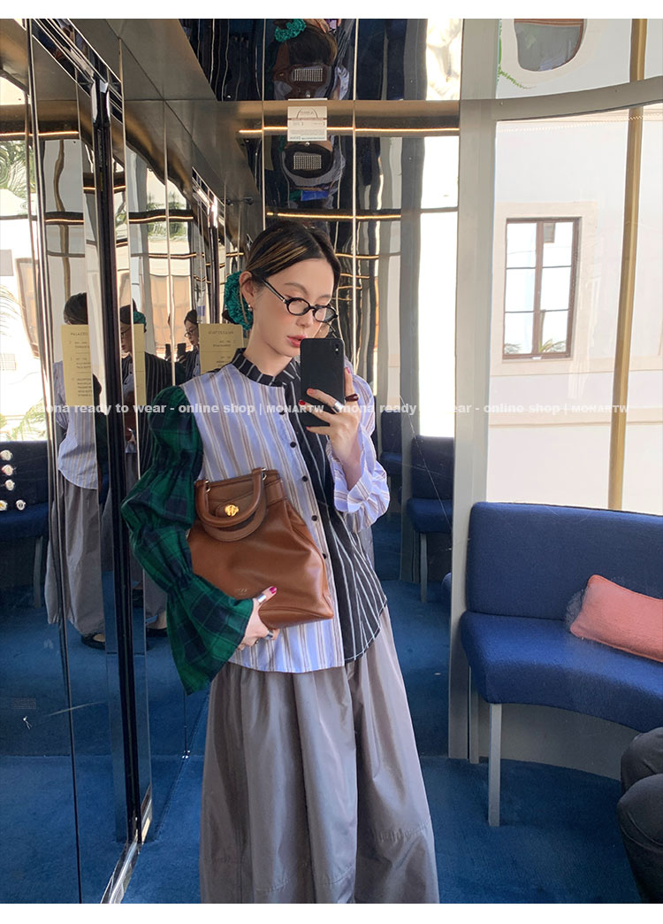 MONARTW Unique Color Collision Stitching Flute Sleeve Shirt