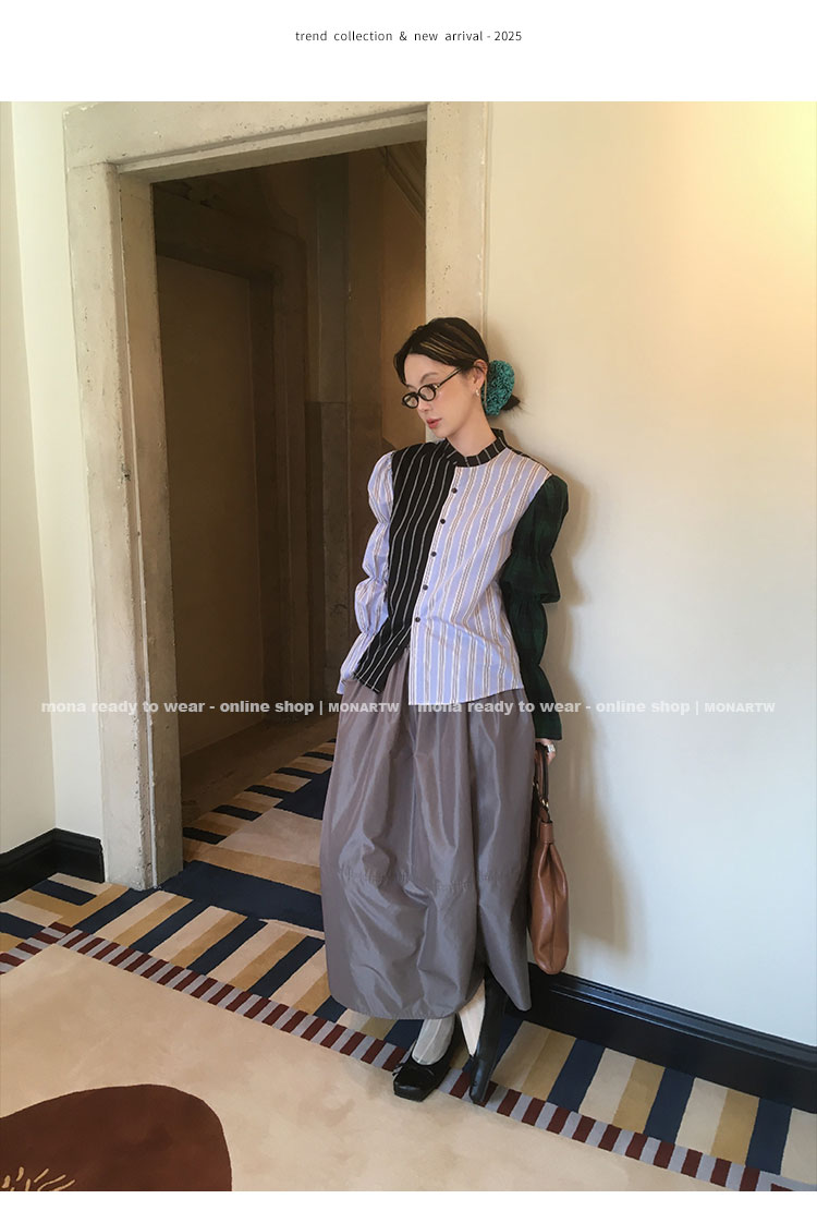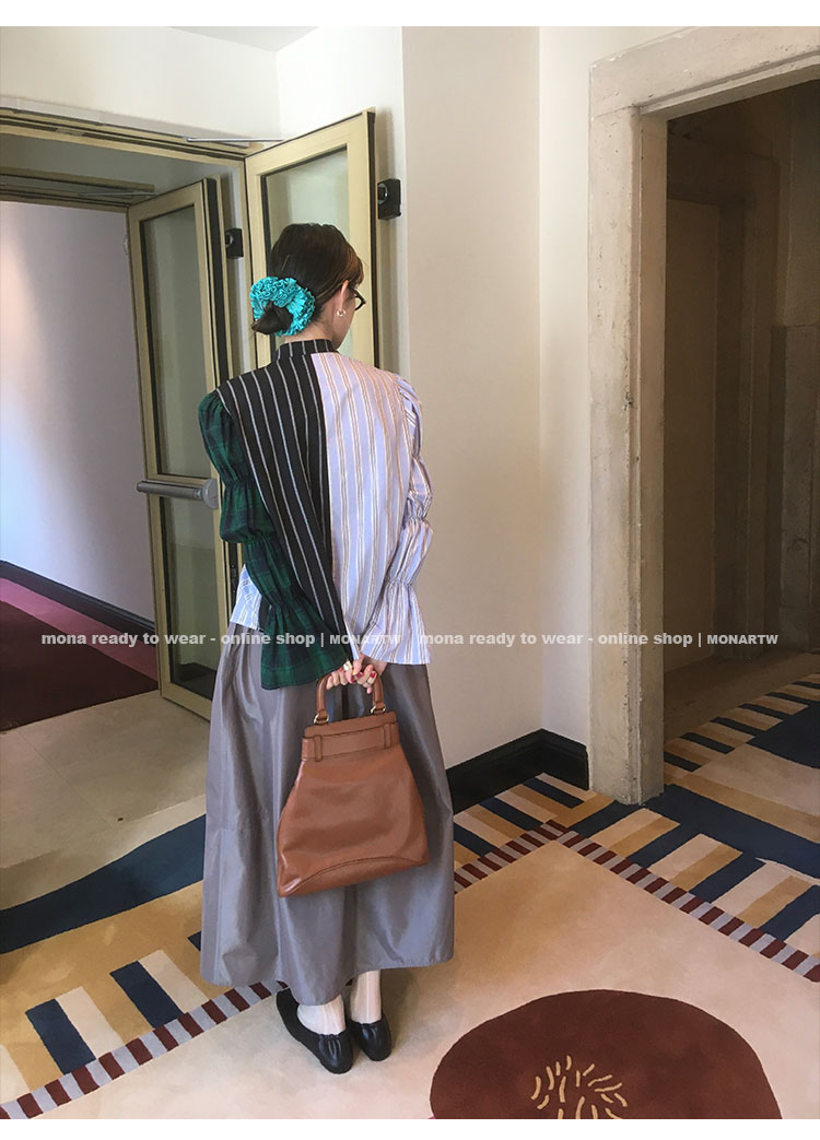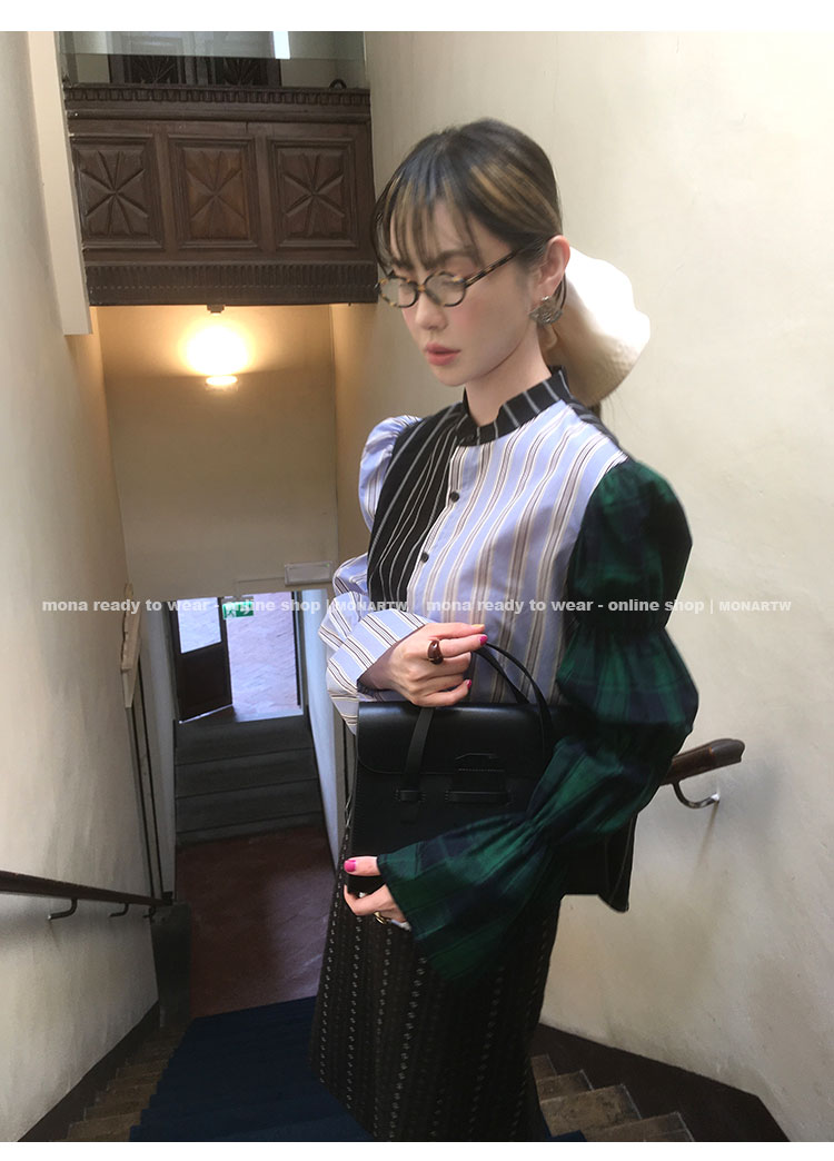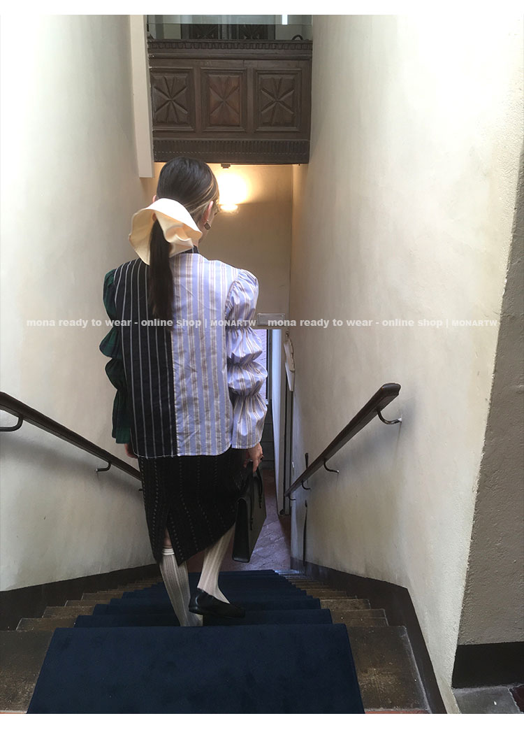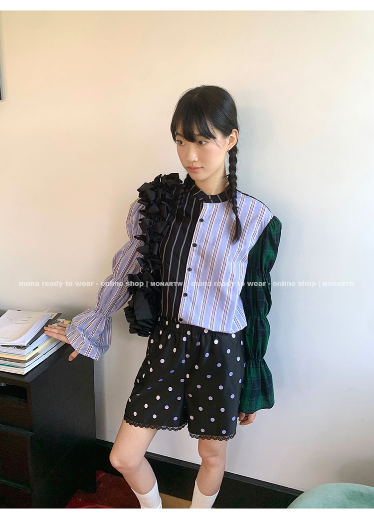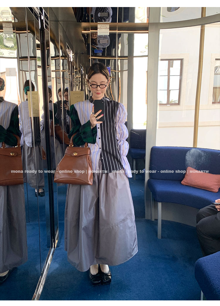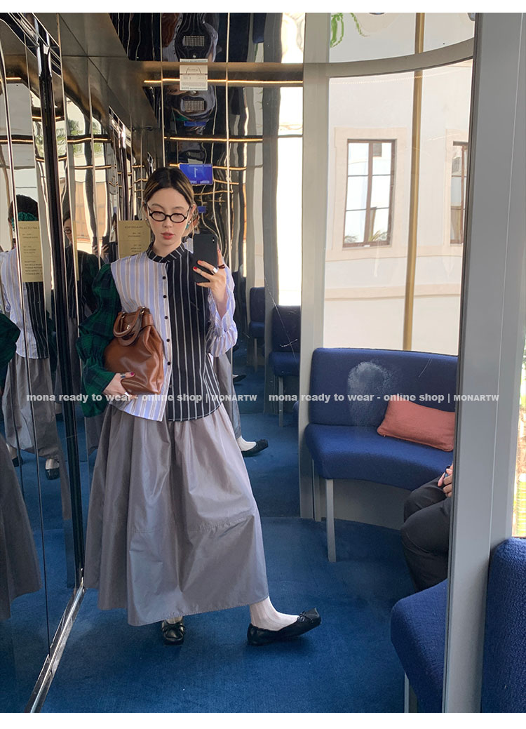 MONARTW Unique Color Collision Stitching Flute Sleeve Shirt