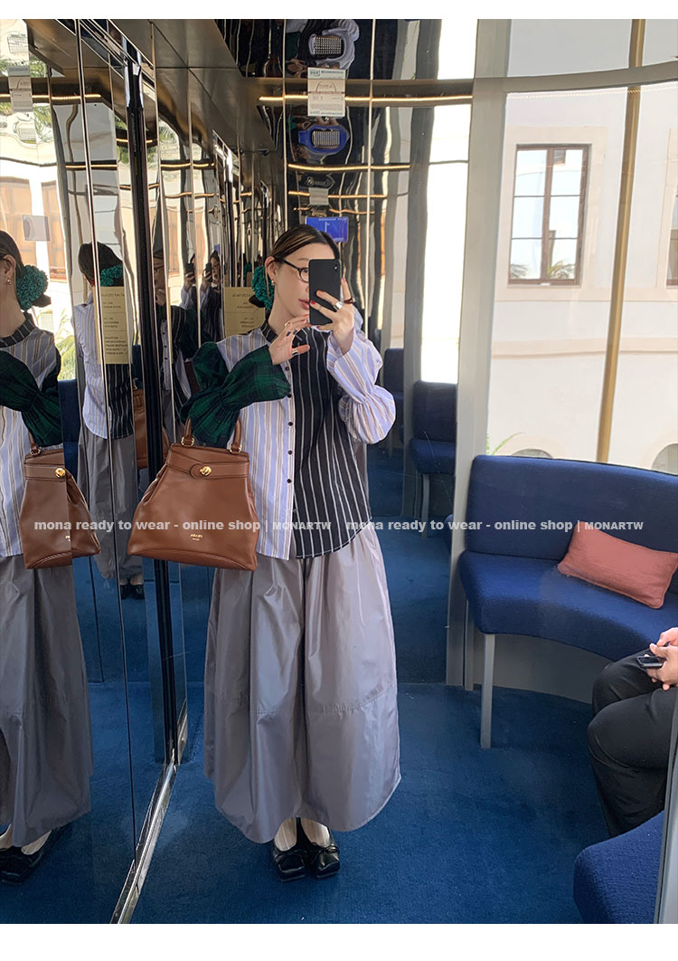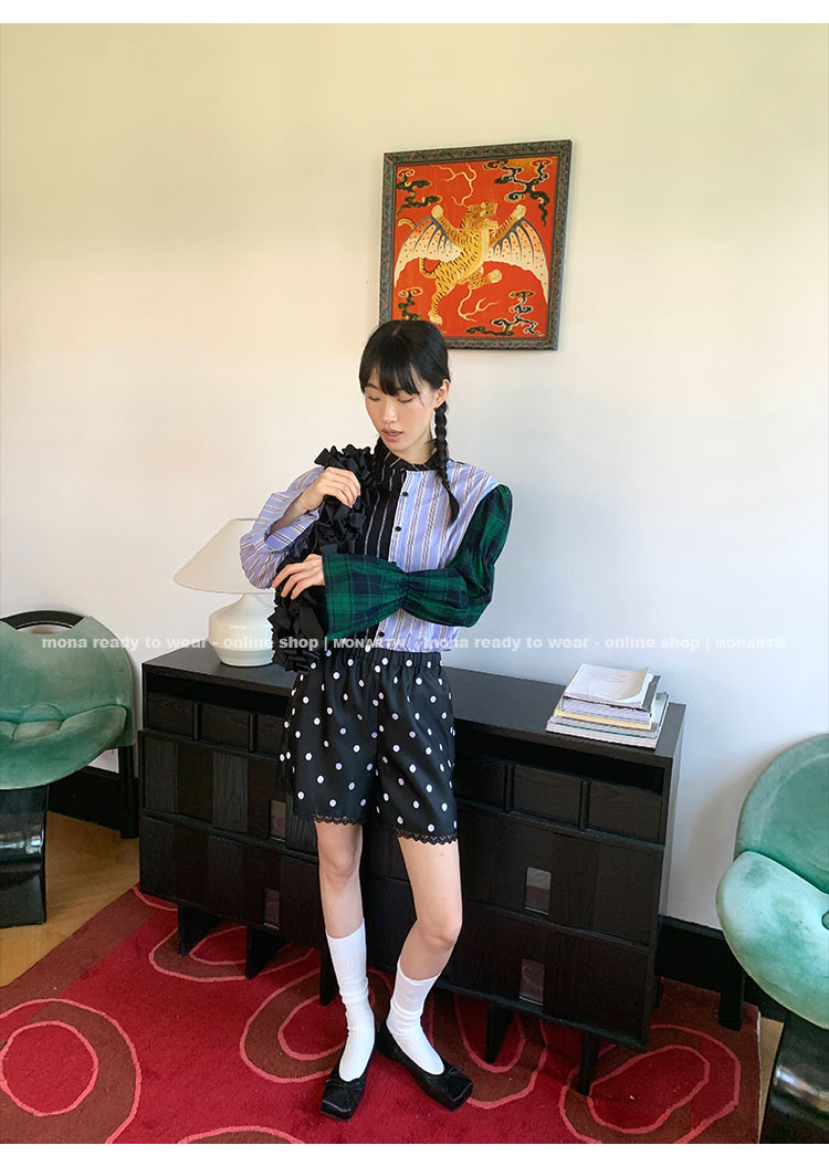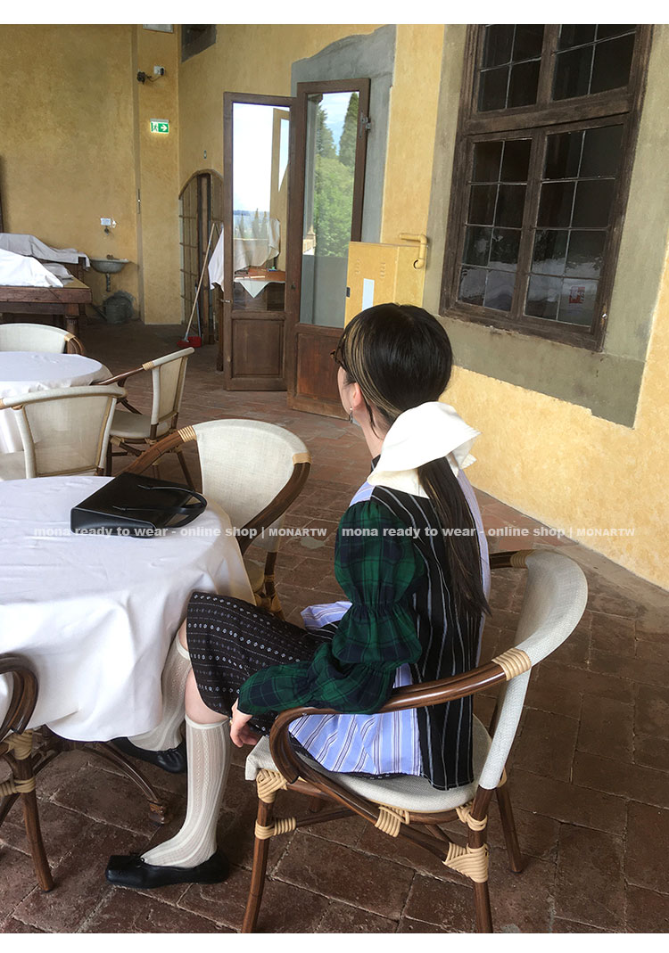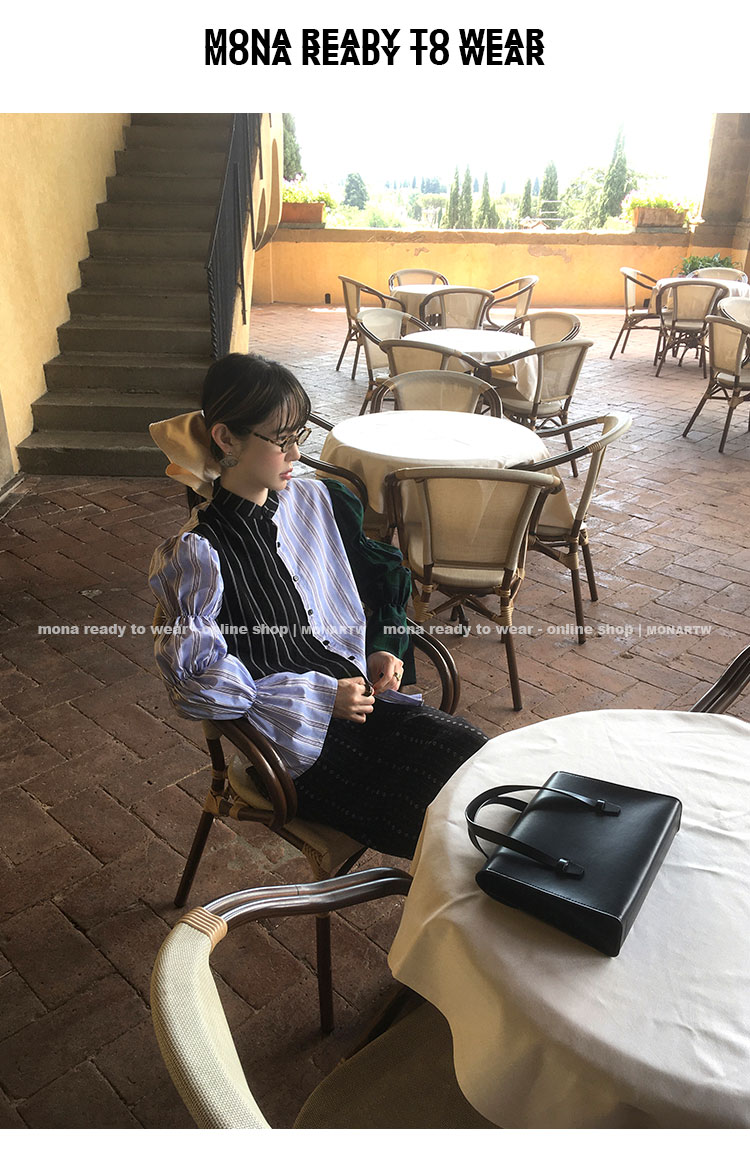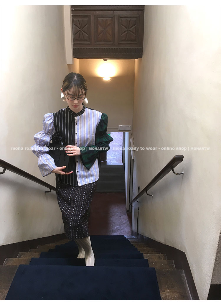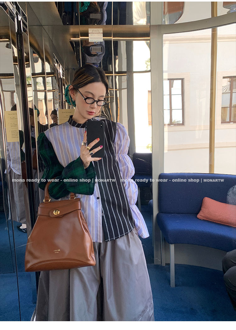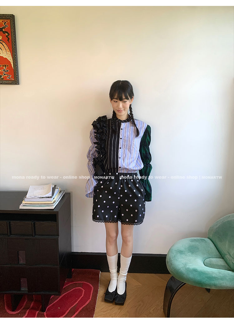 MONARTW Unique Color Collision Stitching Flute Sleeve Shirt