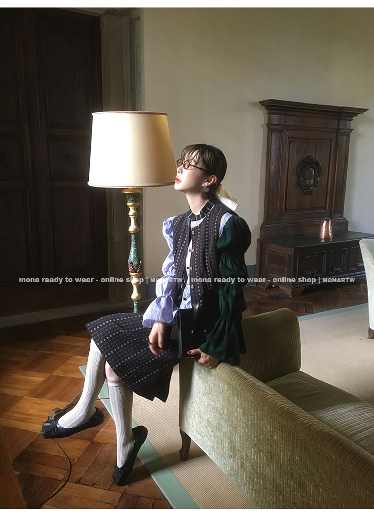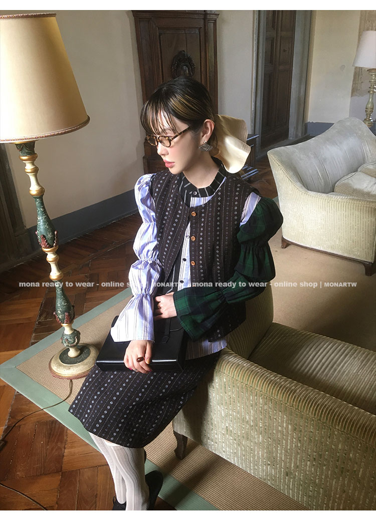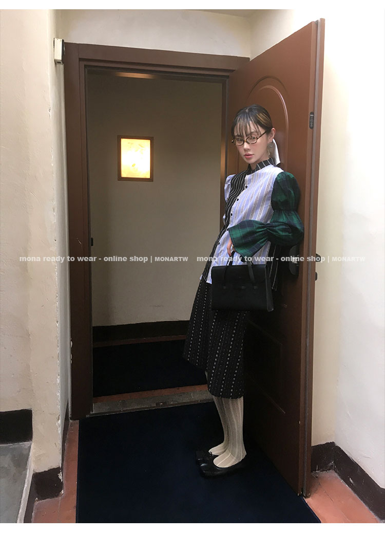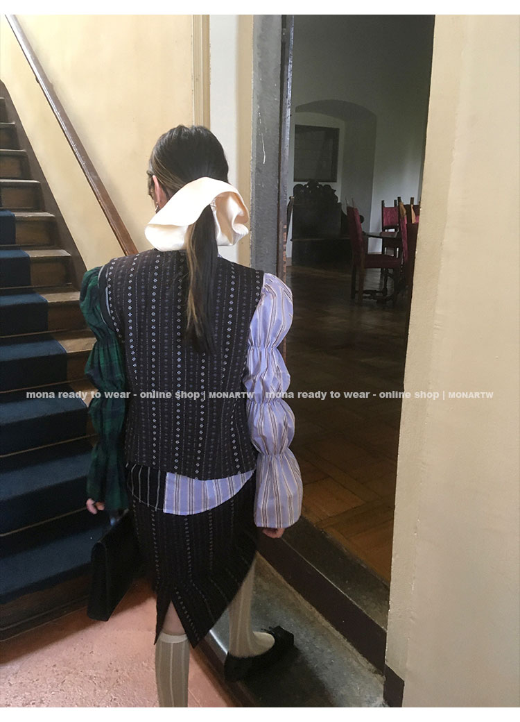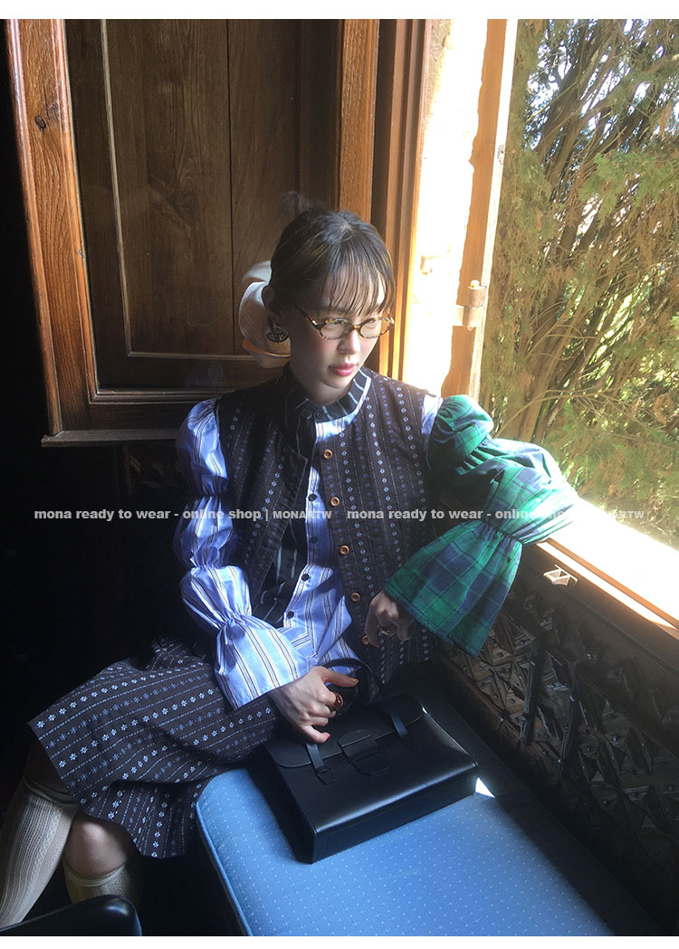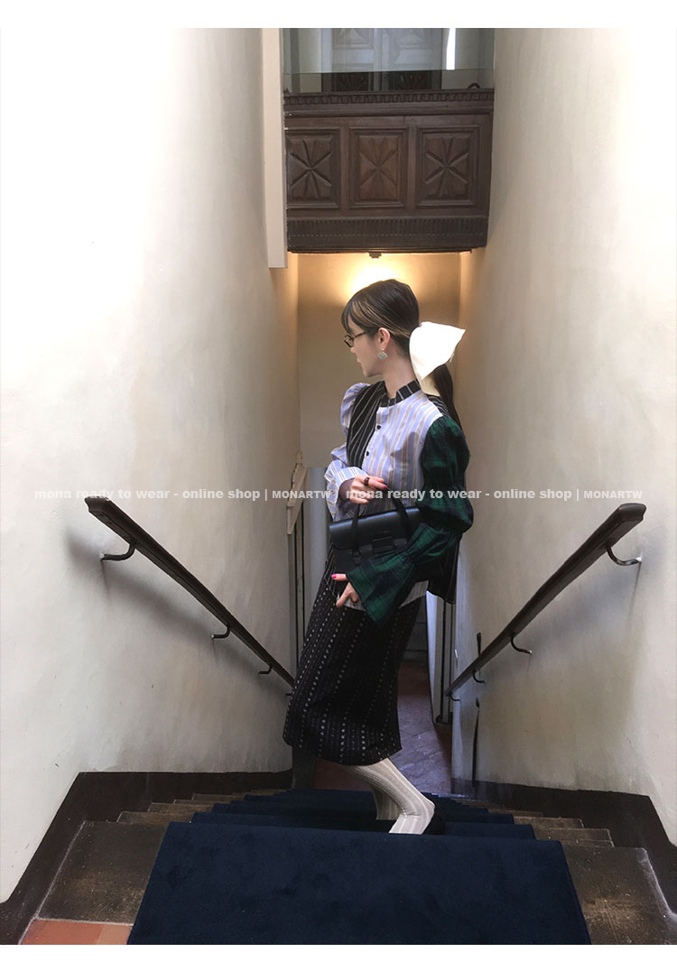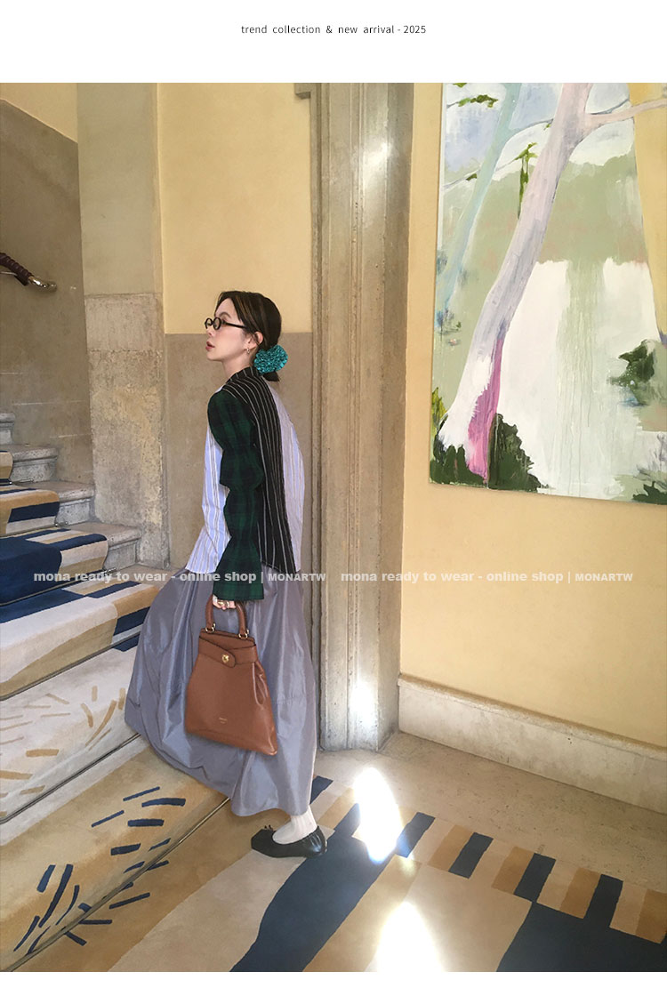 MONARTW Unique Color Collision Stitching Flute Sleeve Shirt
