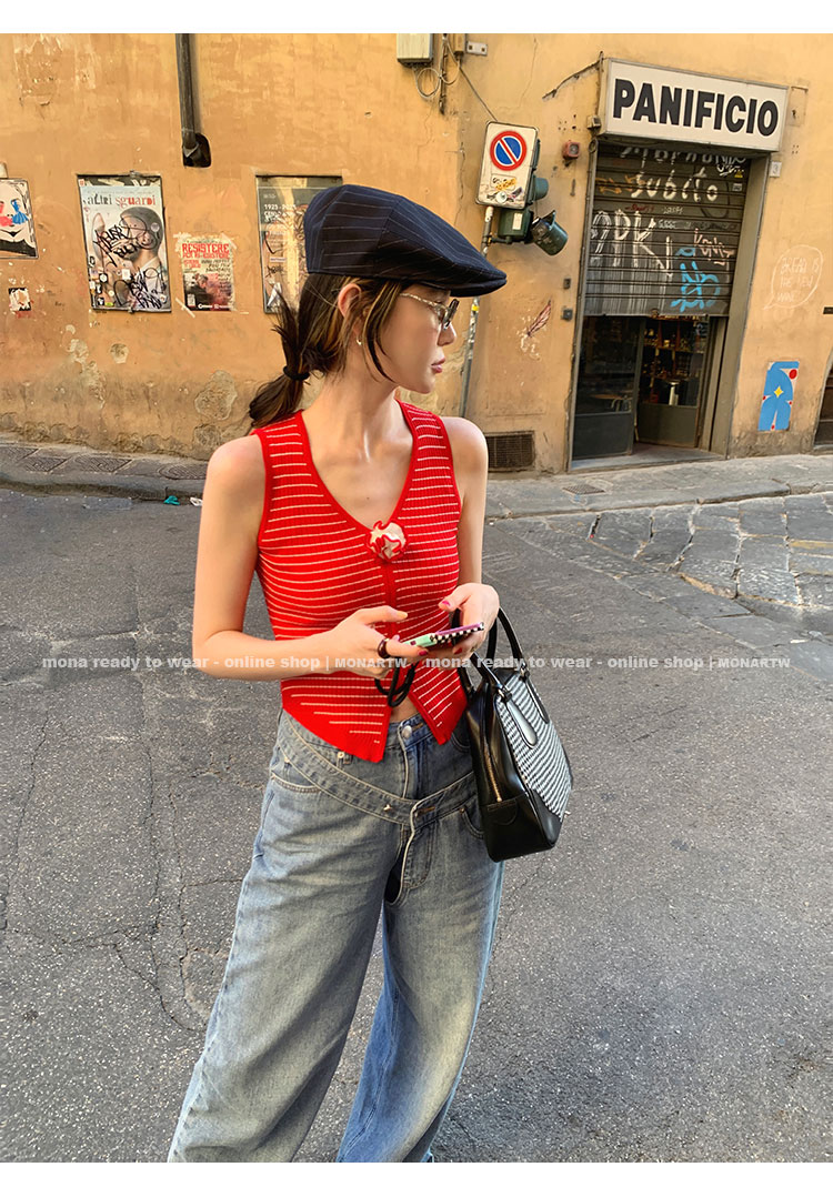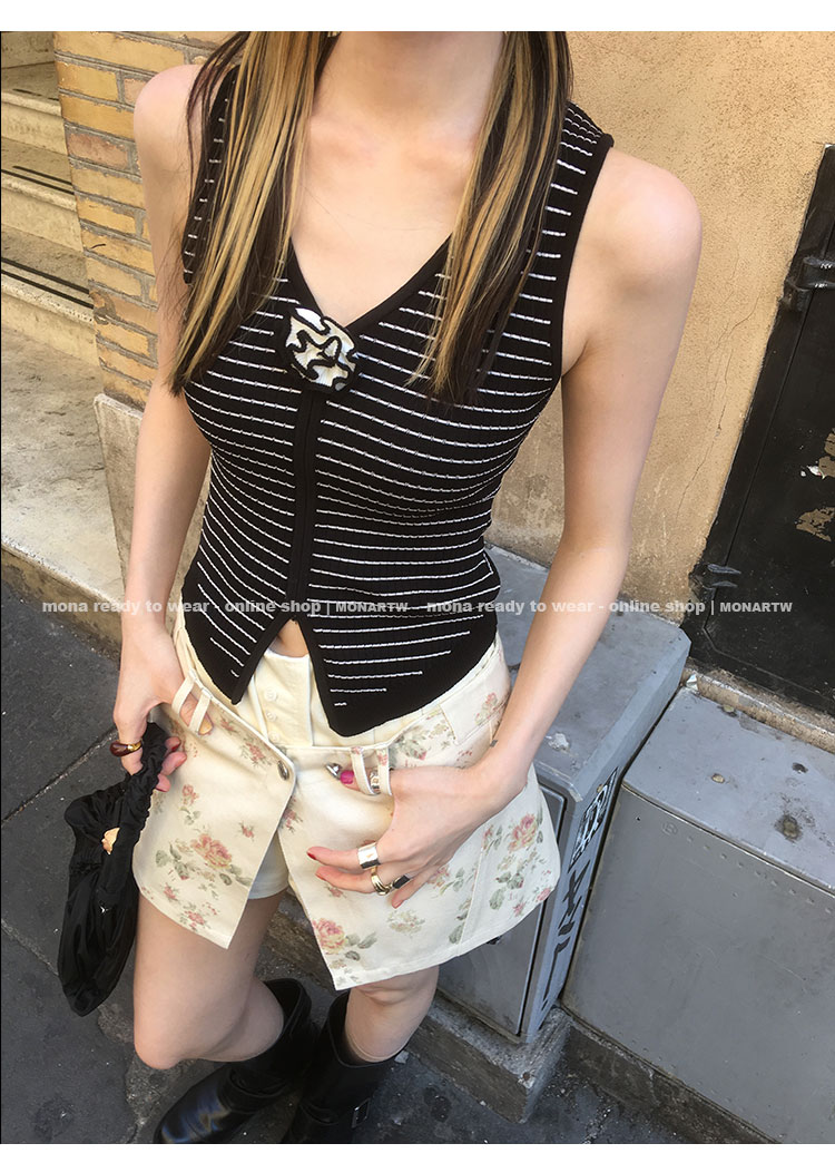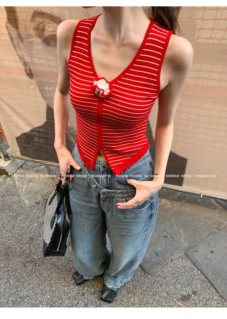 MONARTW Ice-Cooled Silk Striped Slim Fit Sleeveless Tank Top