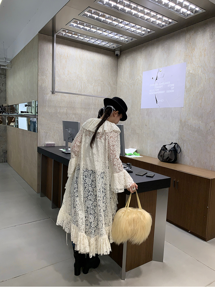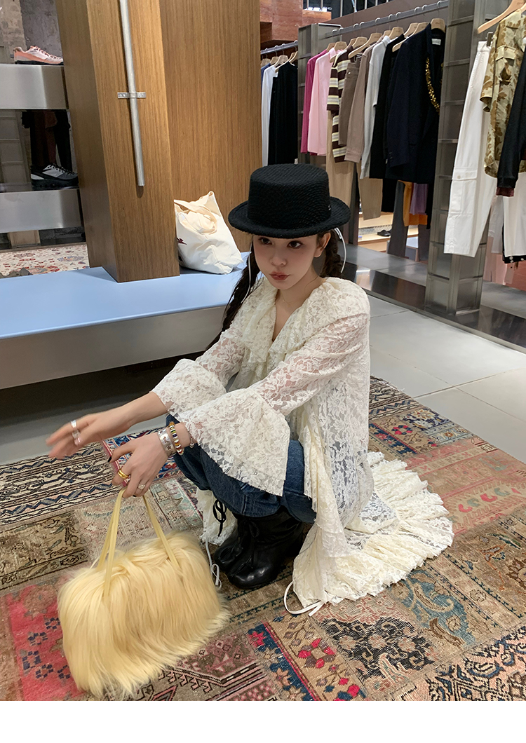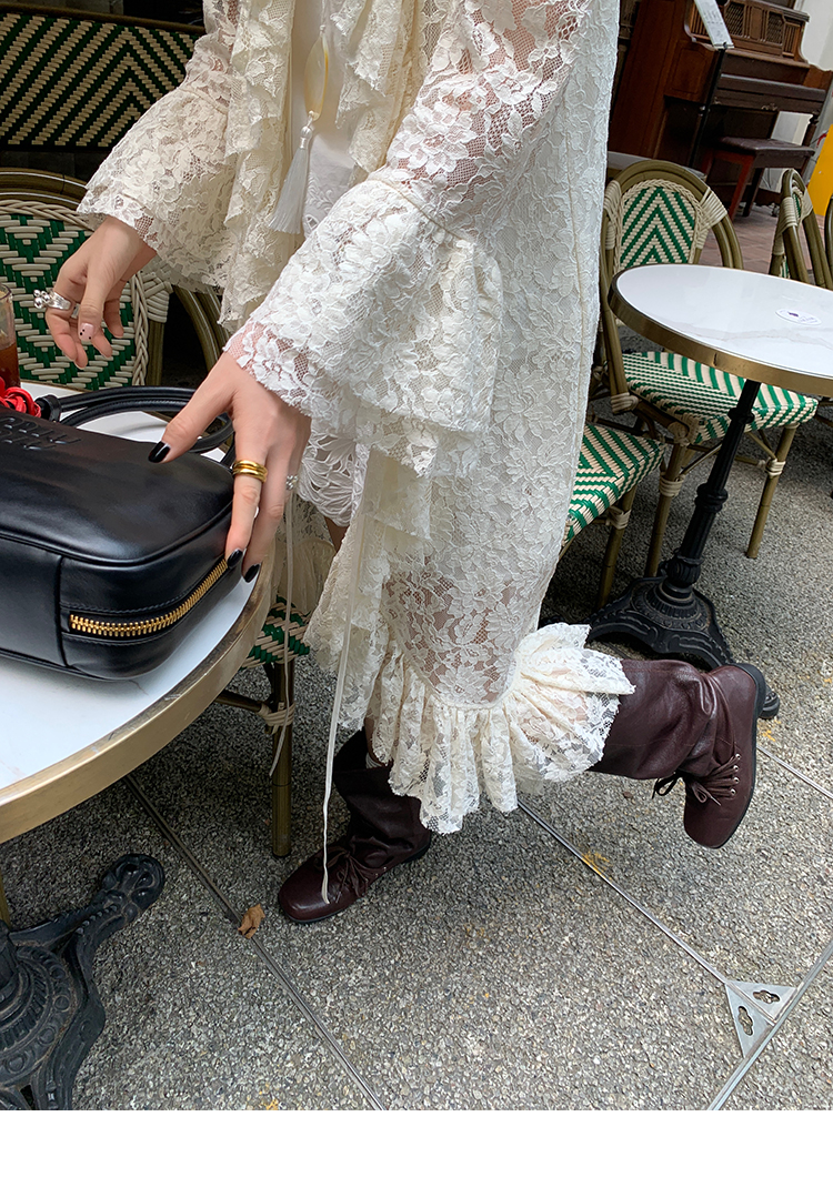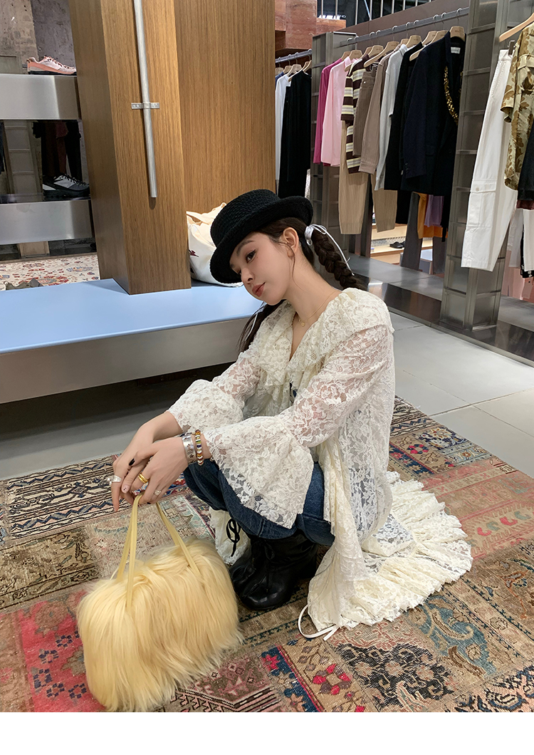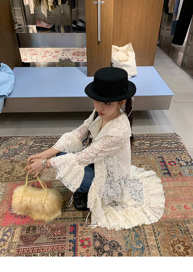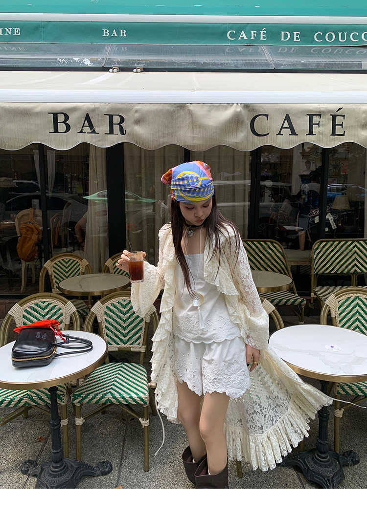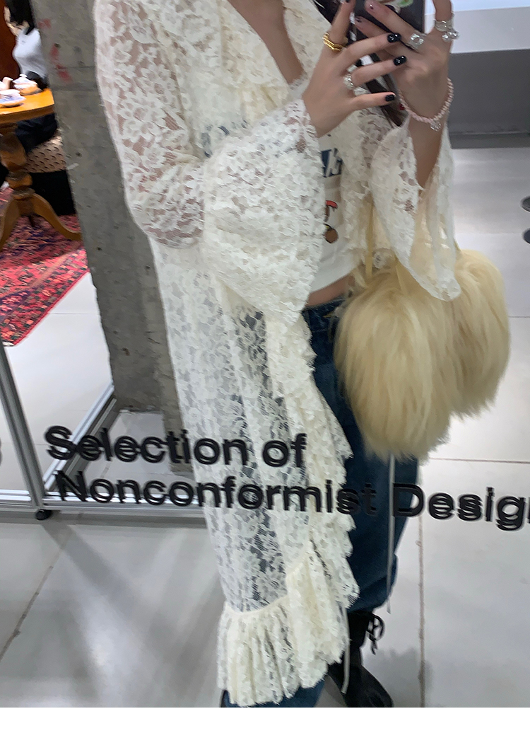 LRIB romantic lace ruffled trumpet sleeve layered shawl cardigan