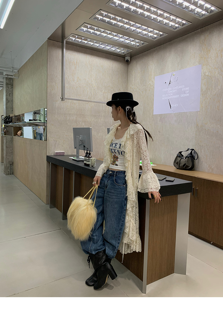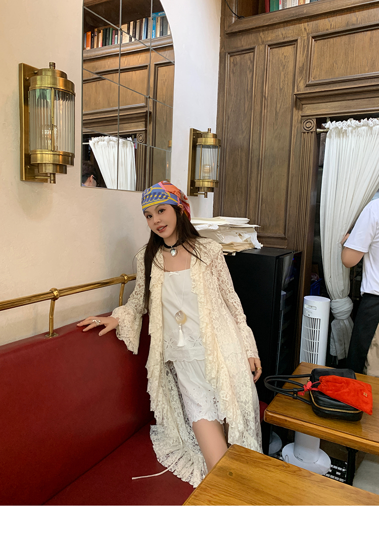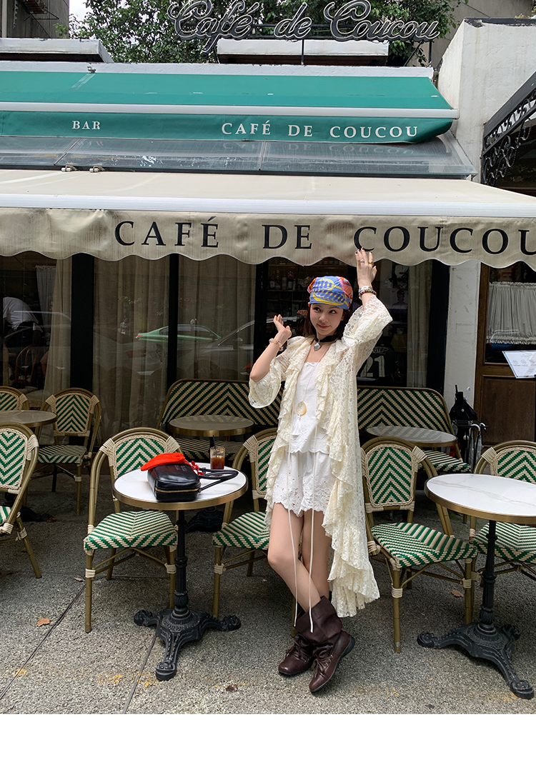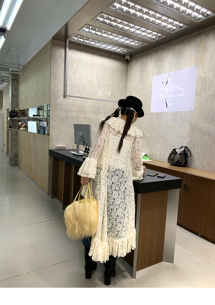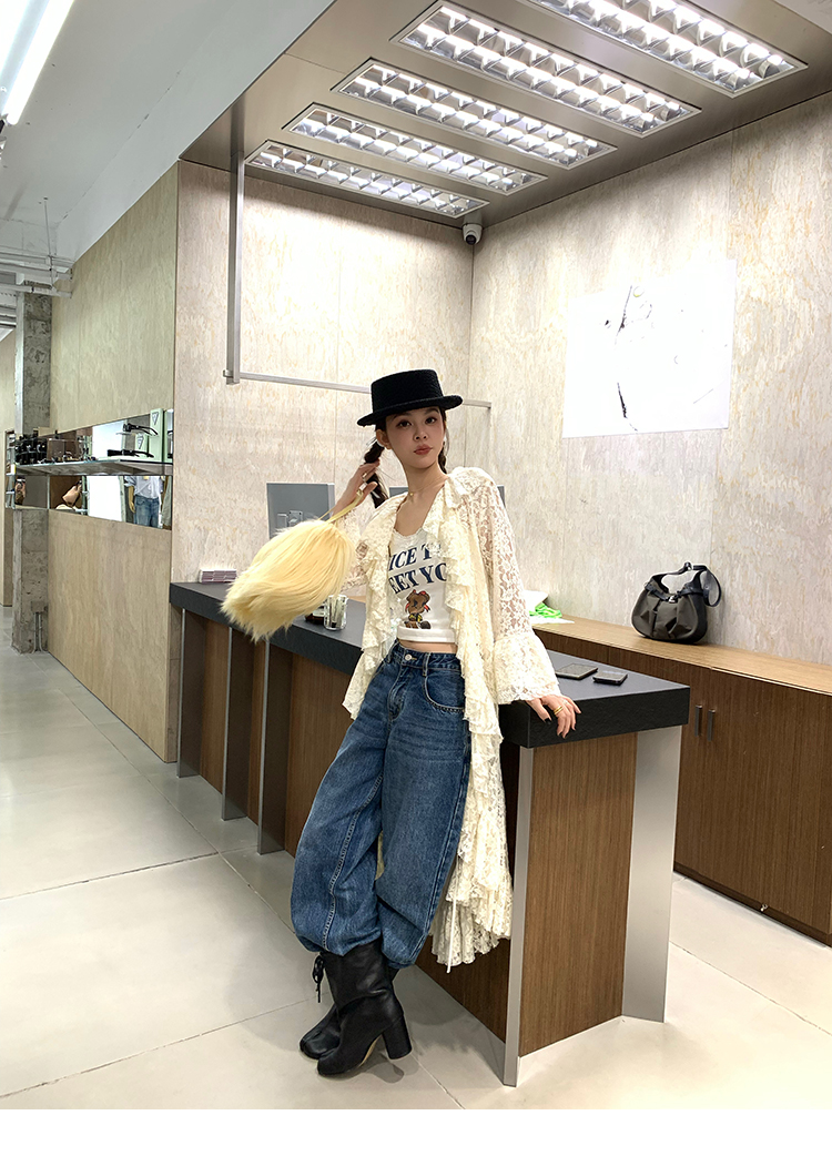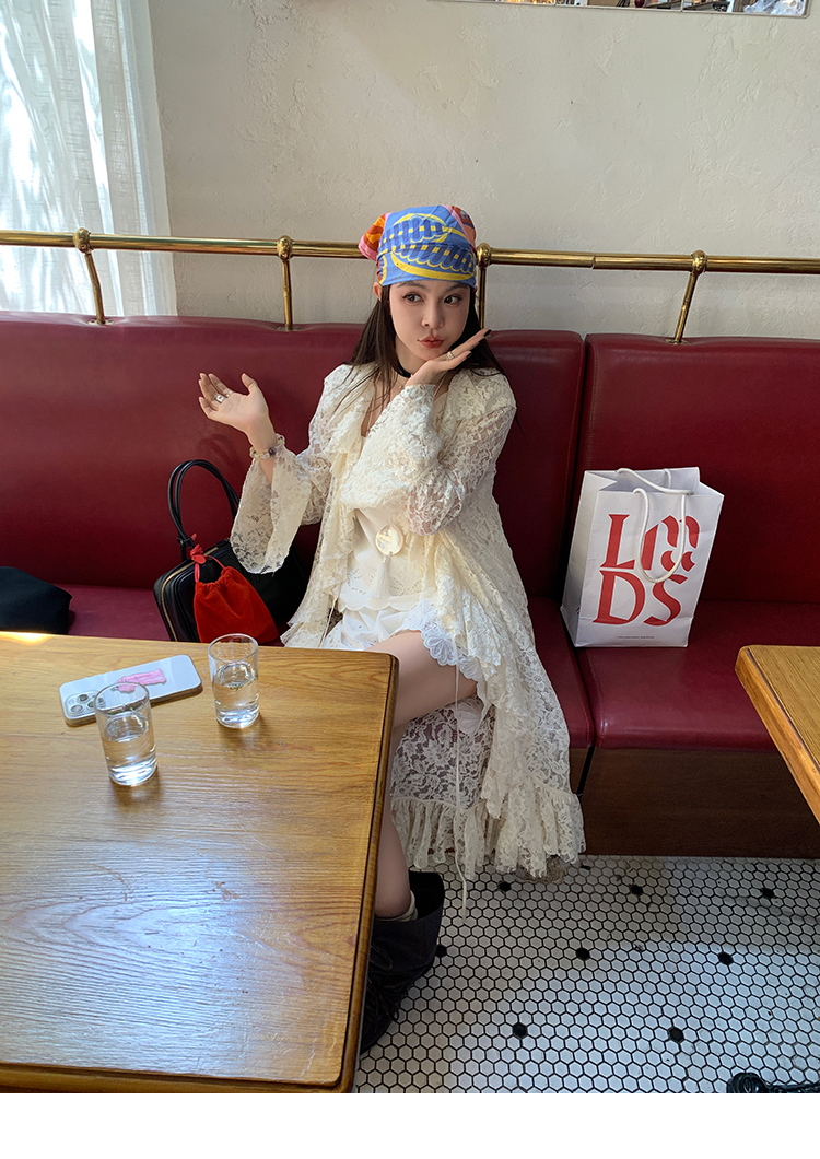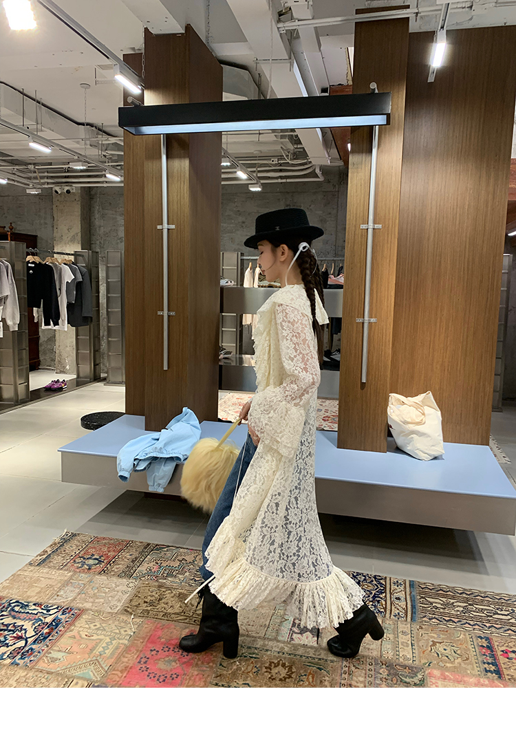 LRIB romantic lace ruffled trumpet sleeve layered shawl cardigan