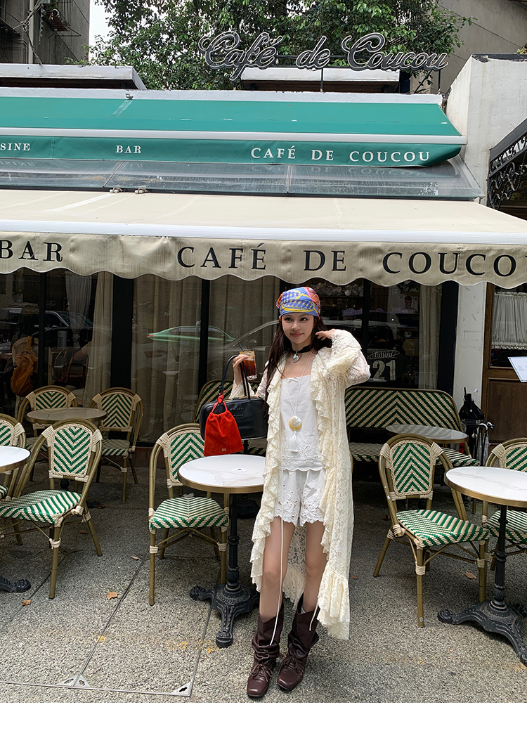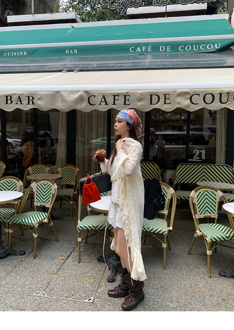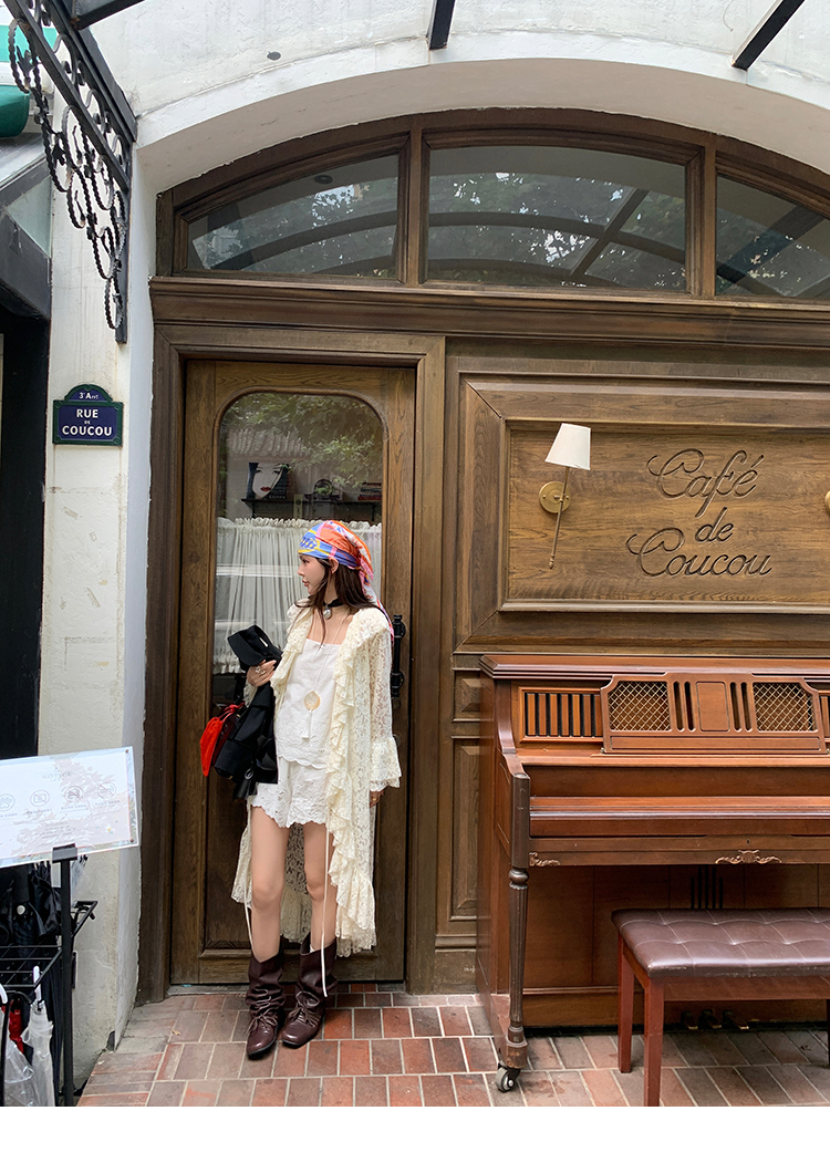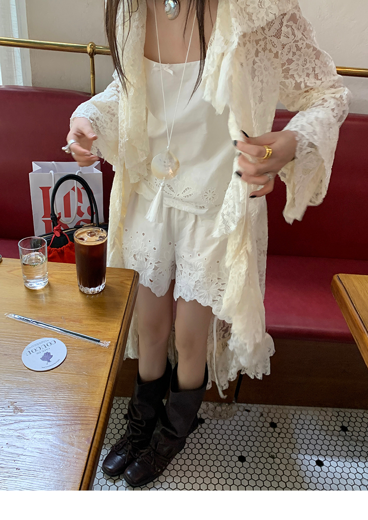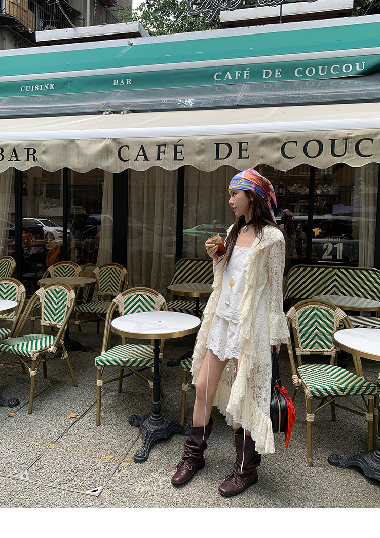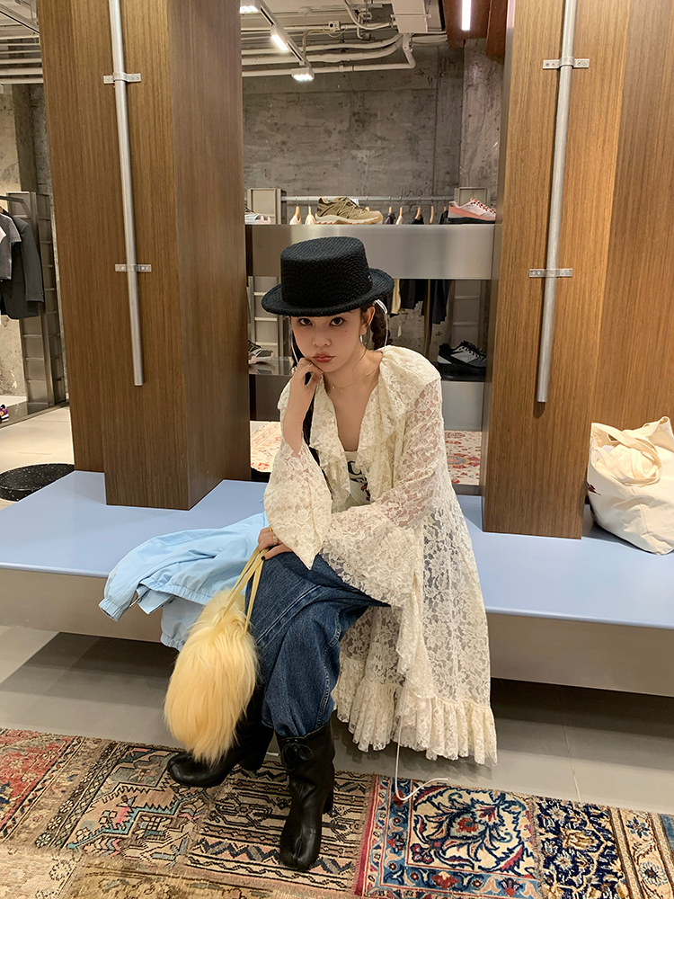 LRIB romantic lace ruffled trumpet sleeve layered shawl cardigan