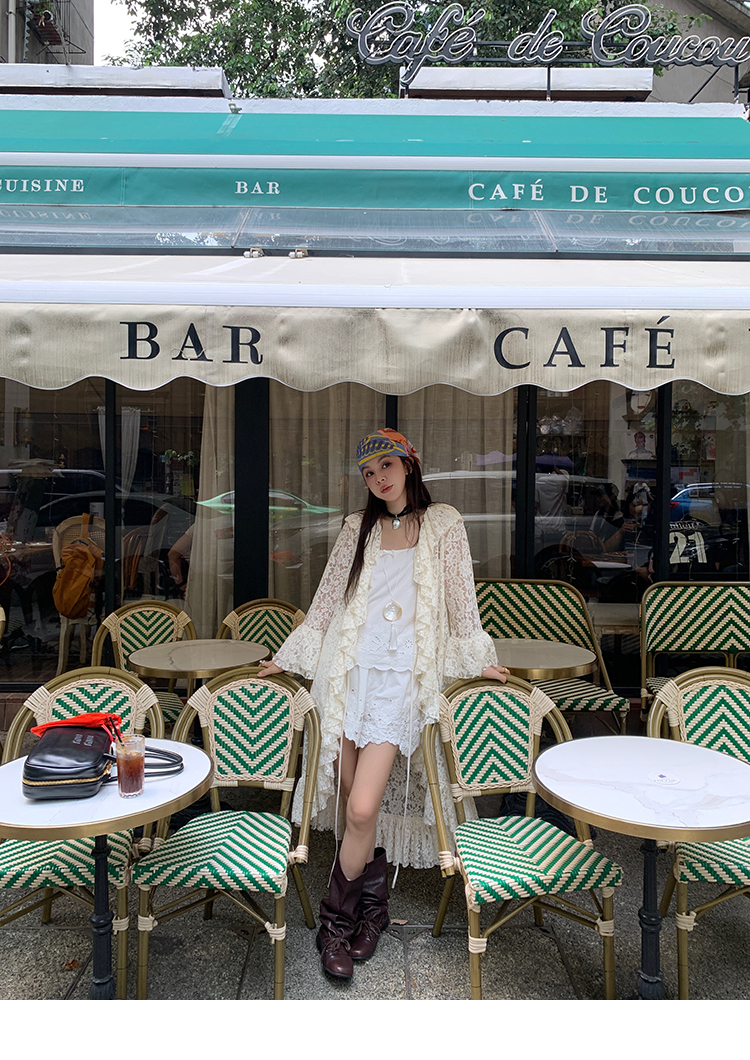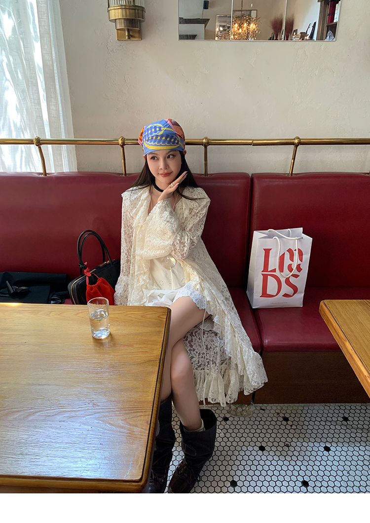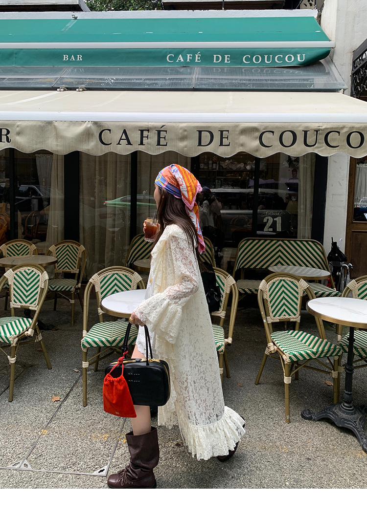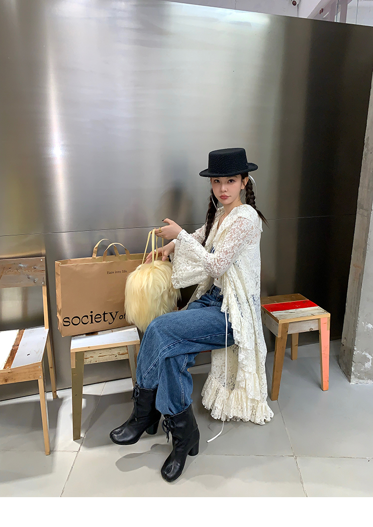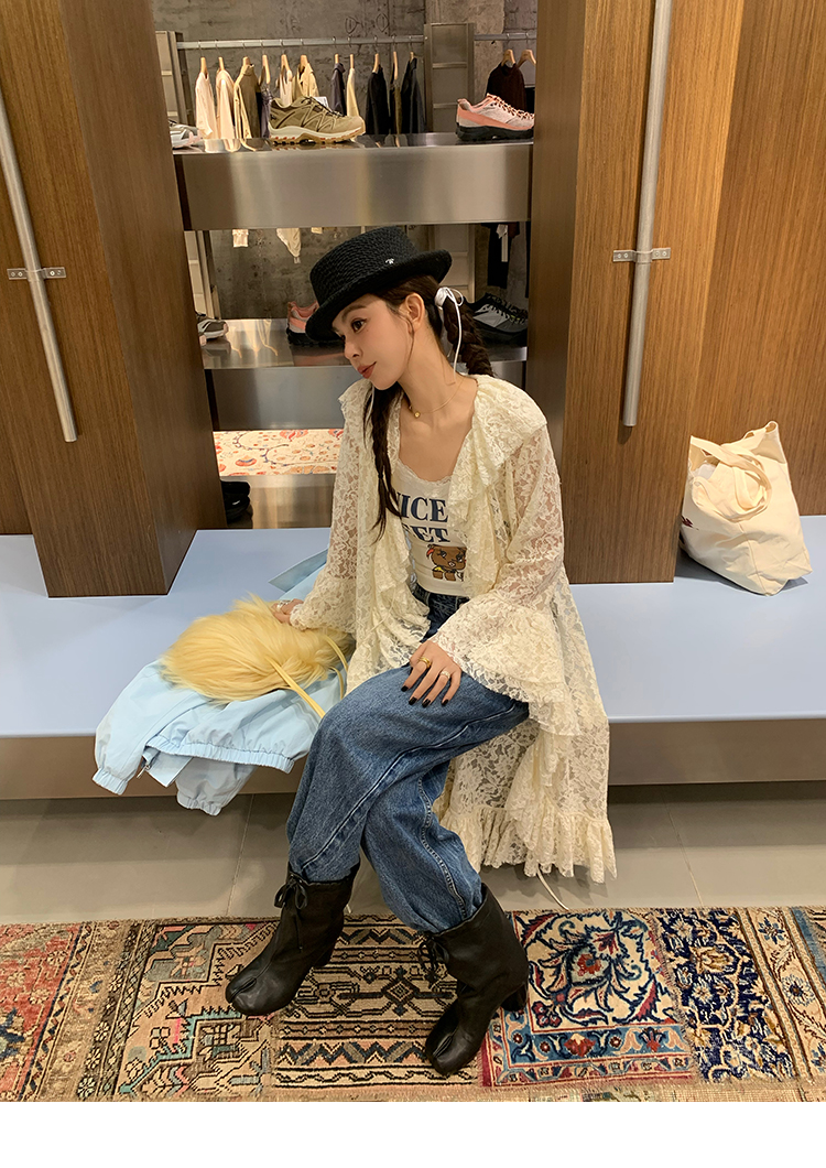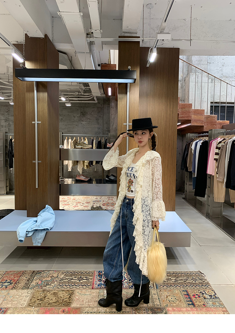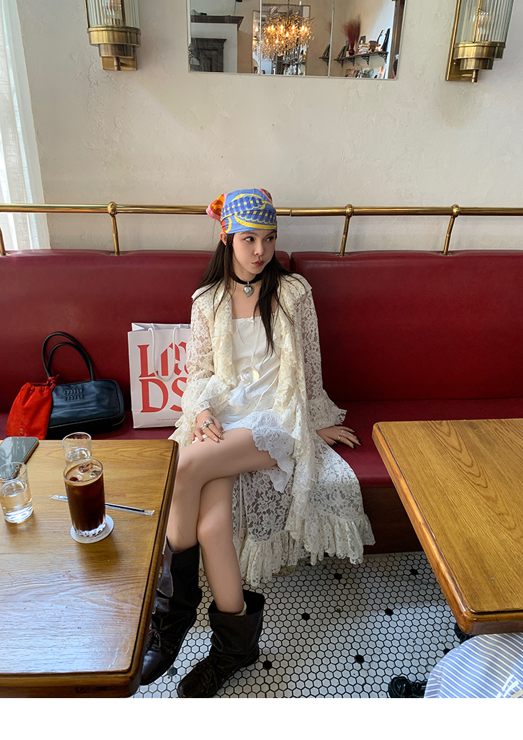 LRIB romantic lace ruffled trumpet sleeve layered shawl cardigan