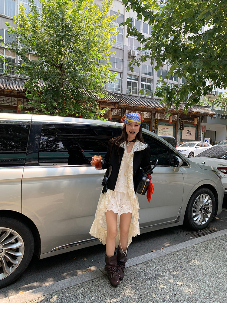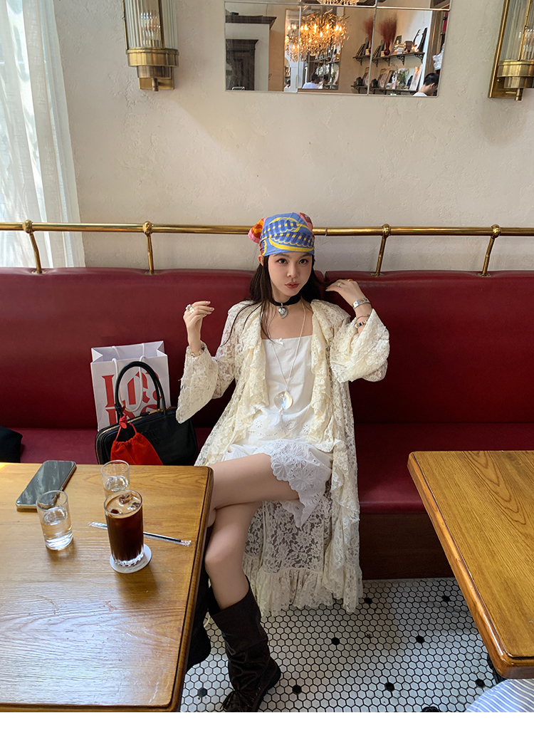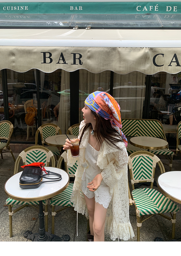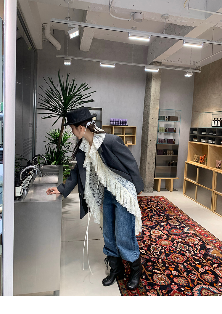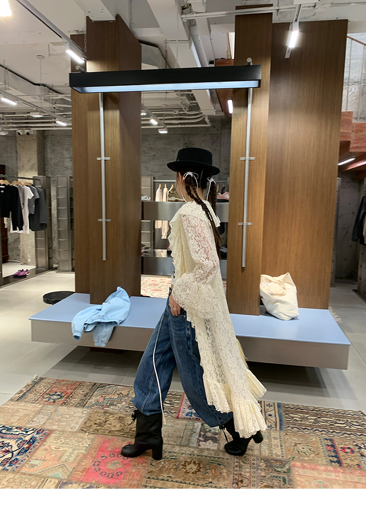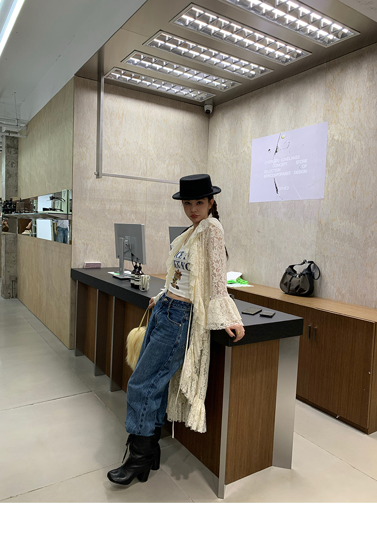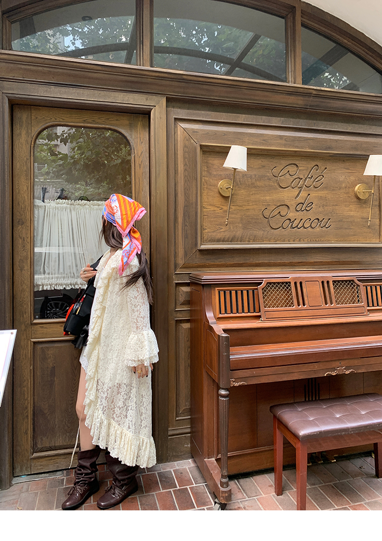 LRIB romantic lace ruffled trumpet sleeve layered shawl cardigan