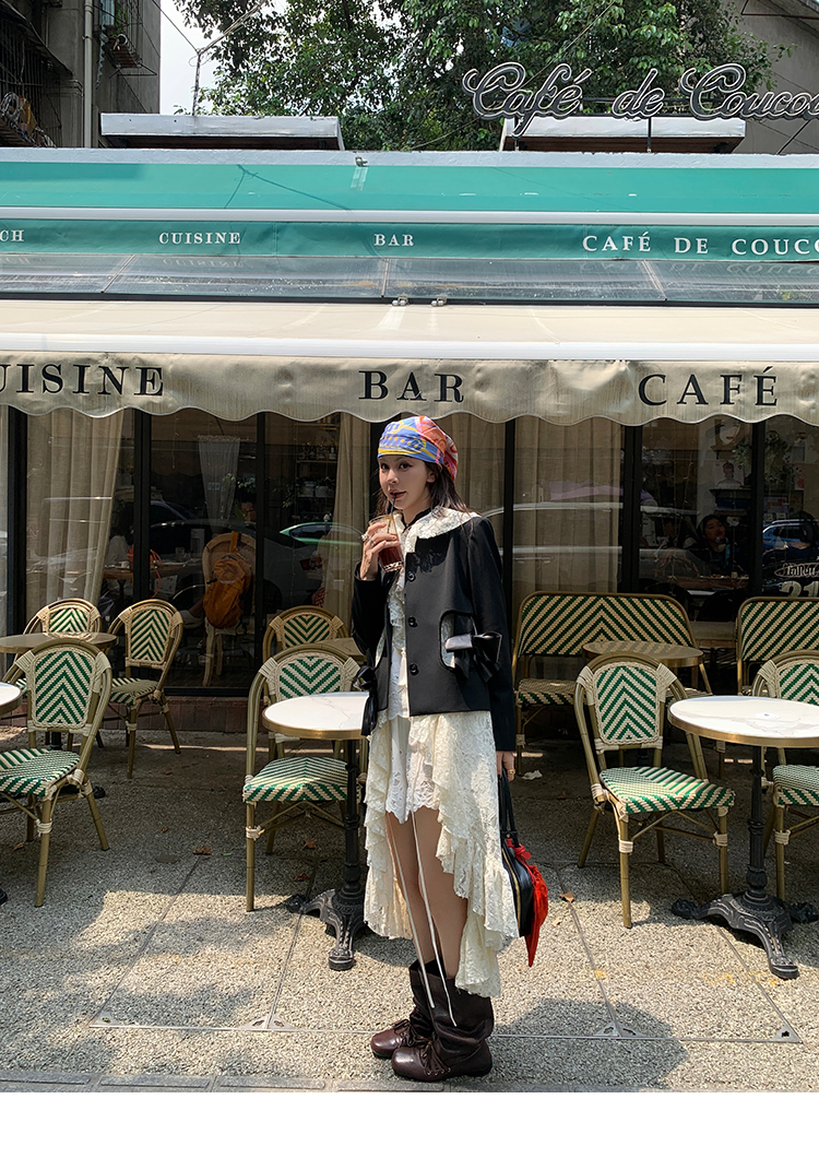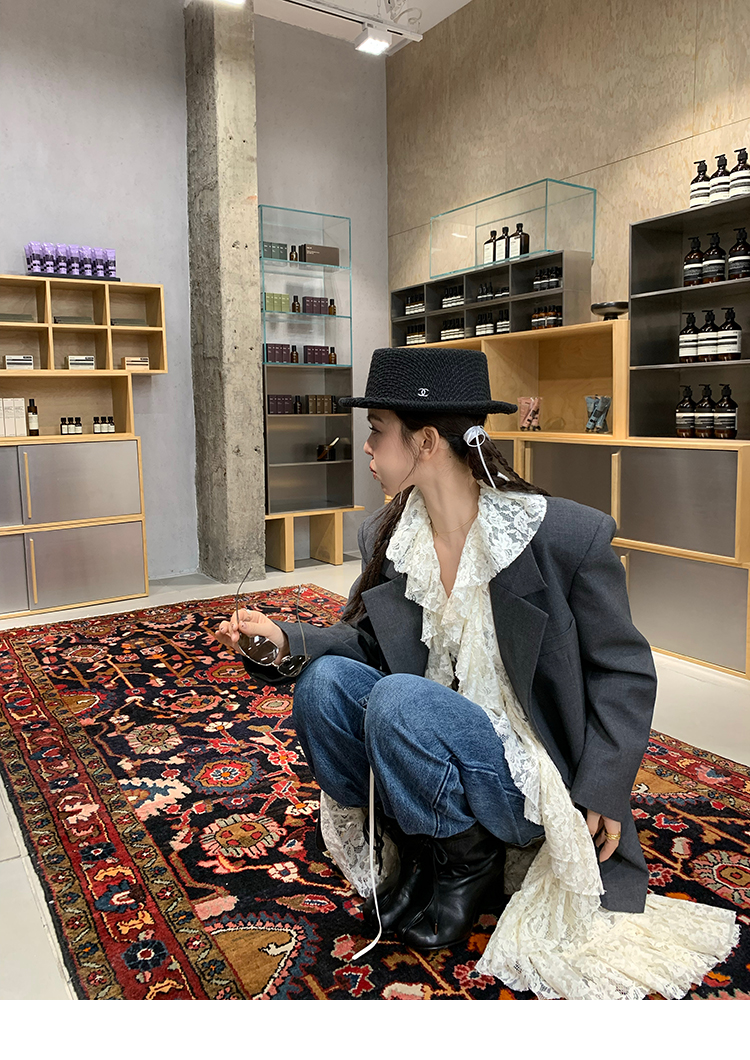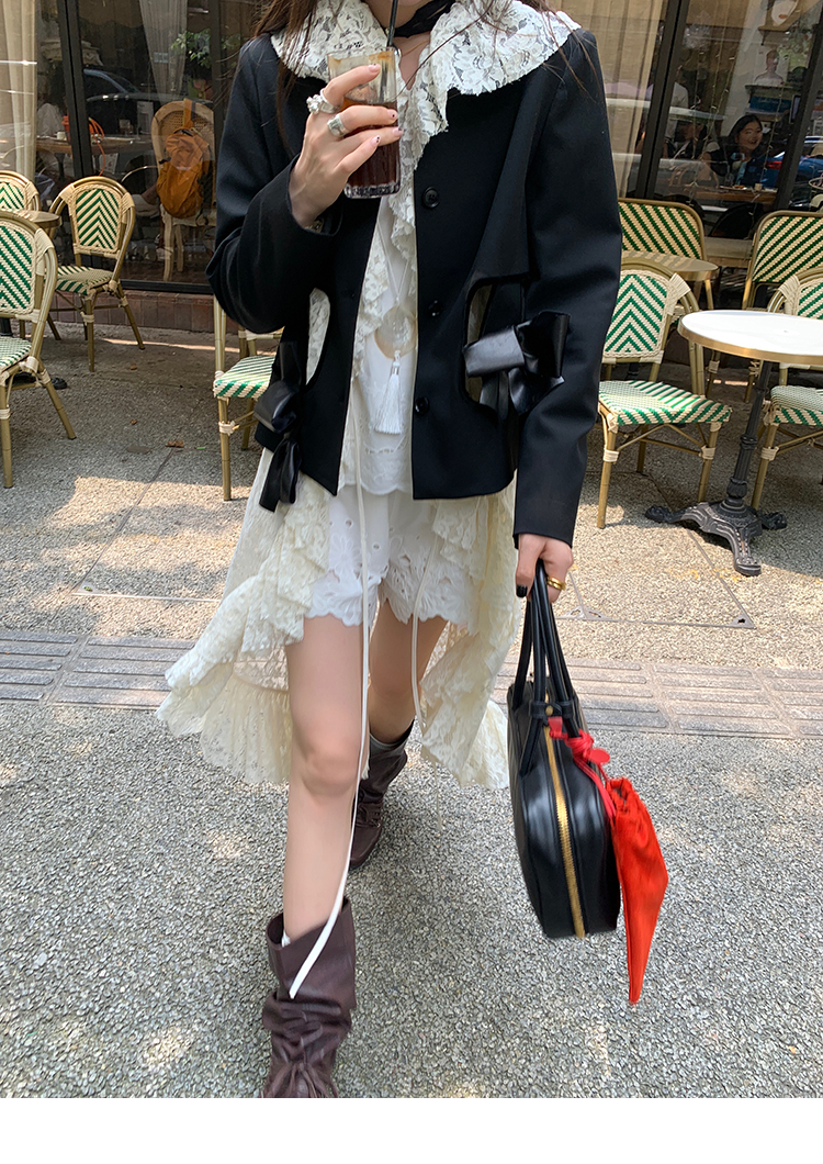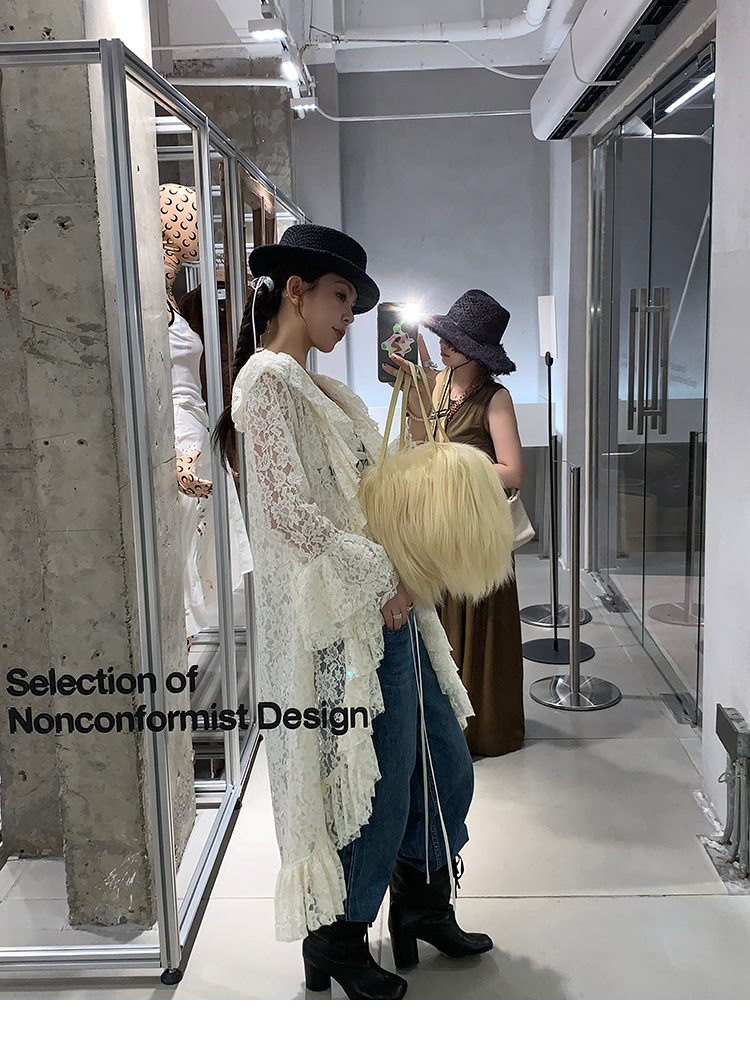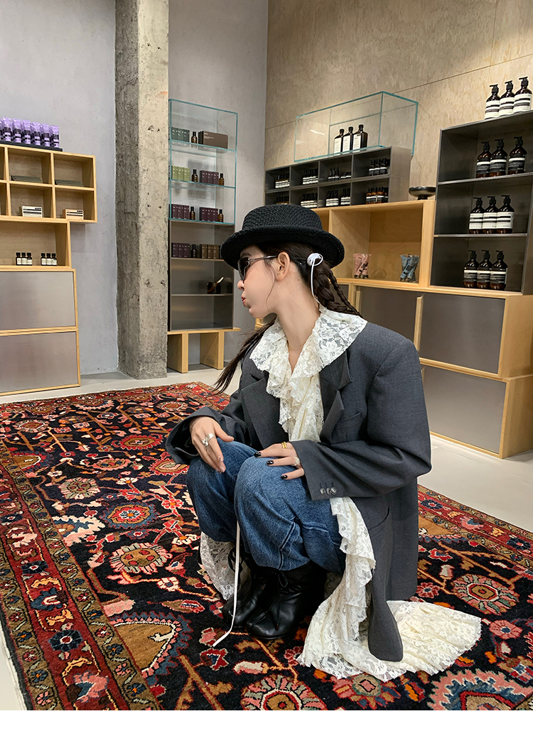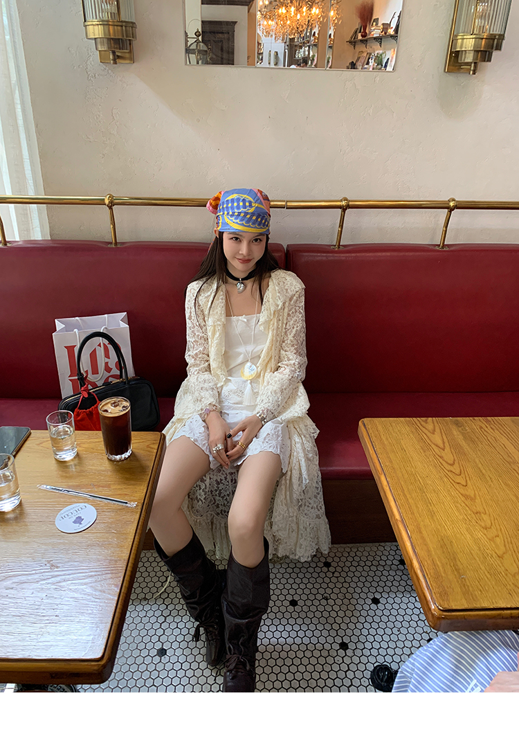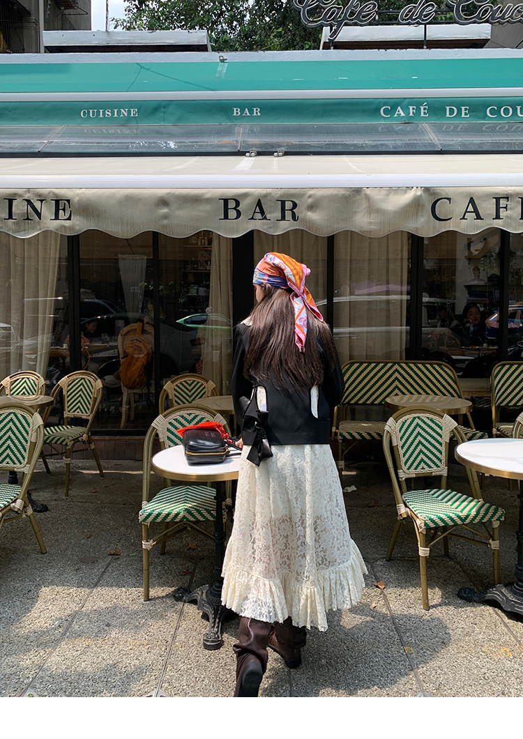 LRIB romantic lace ruffled trumpet sleeve layered shawl cardigan
