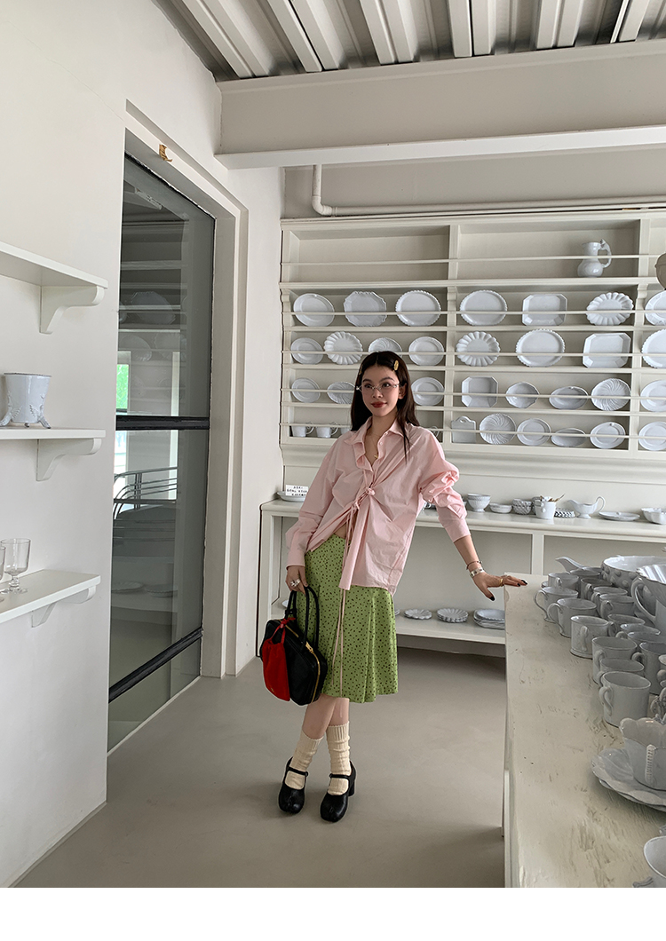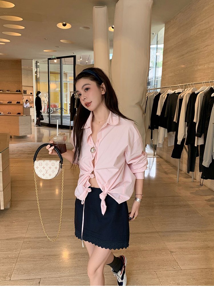 LRIB twisted lapel free knotted pink shirt
