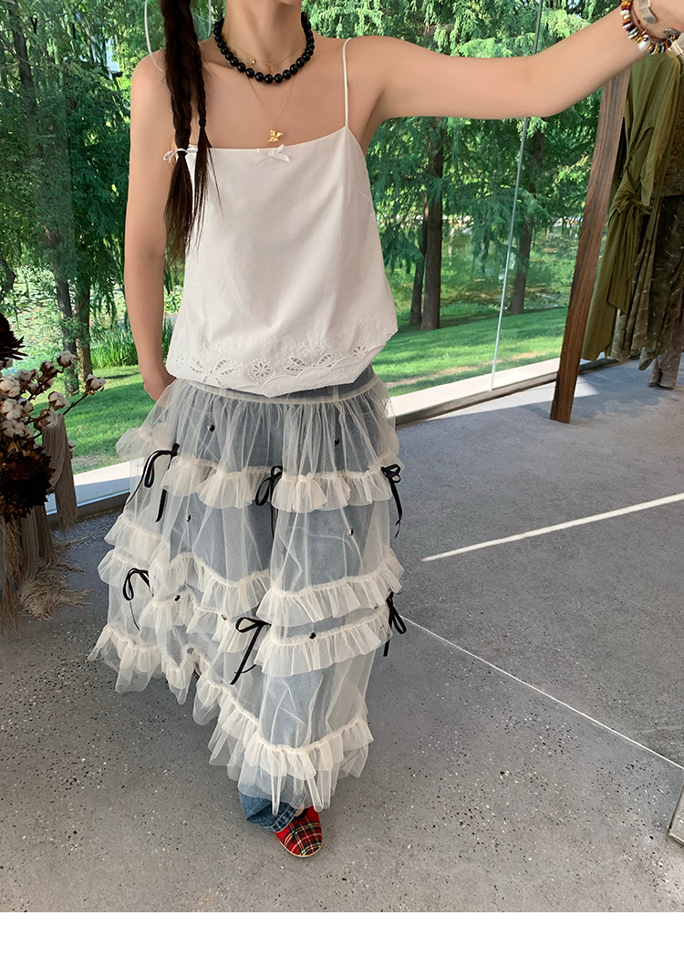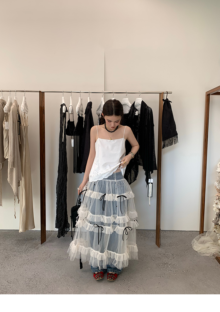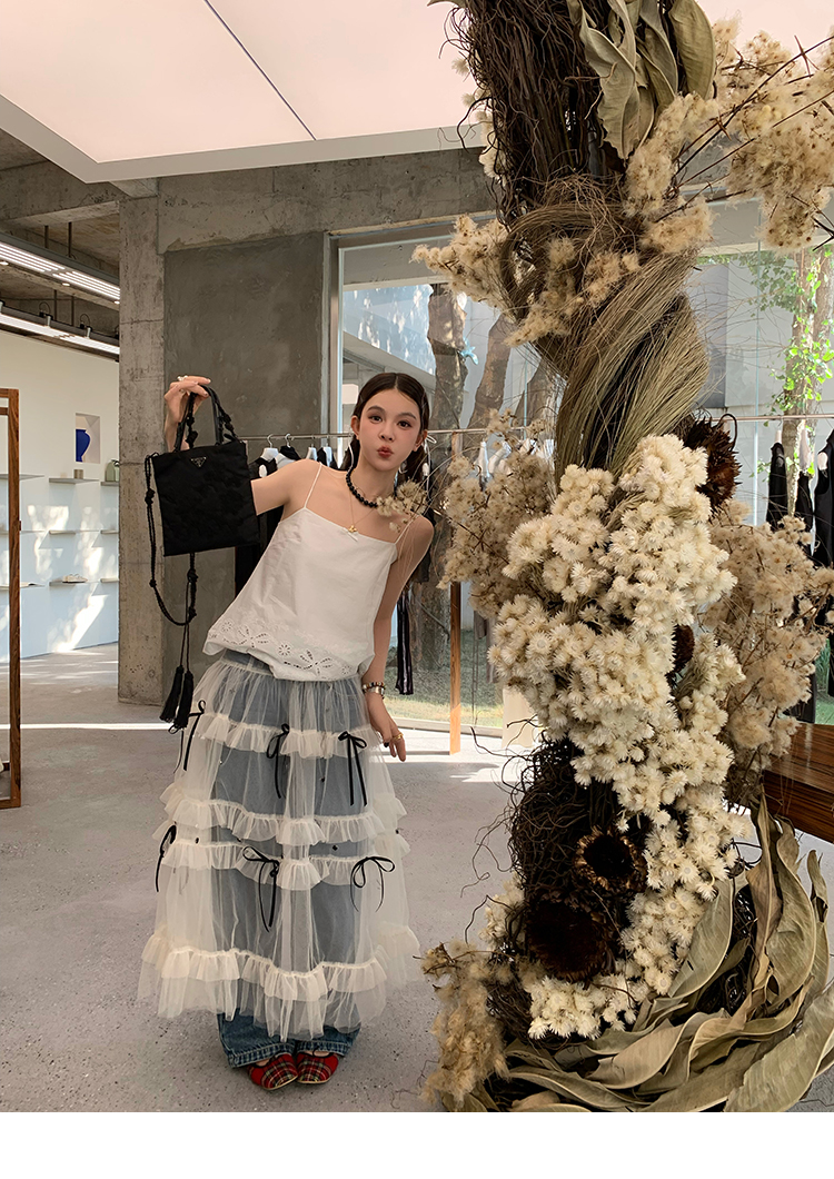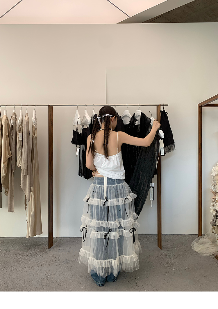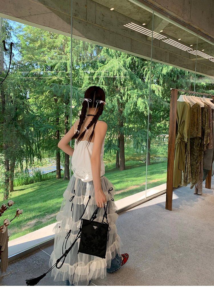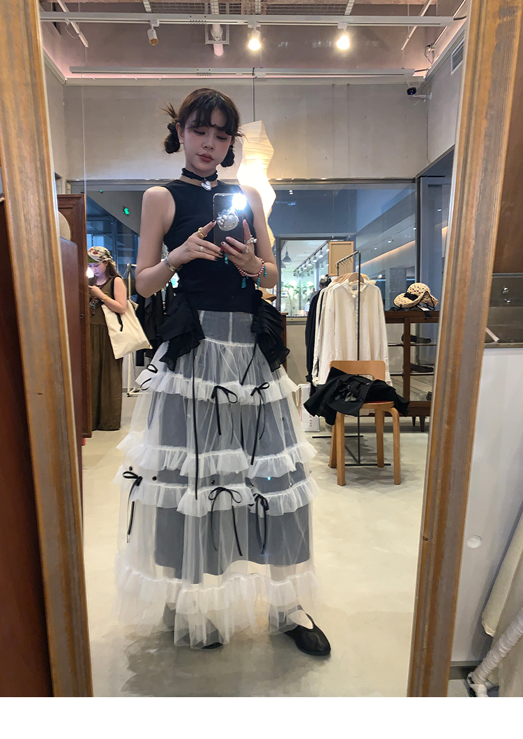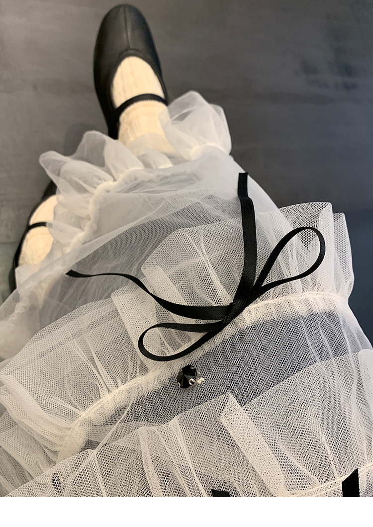 LRIB fantasy mesh ruffle bow nail diamond layered two-piece skirt