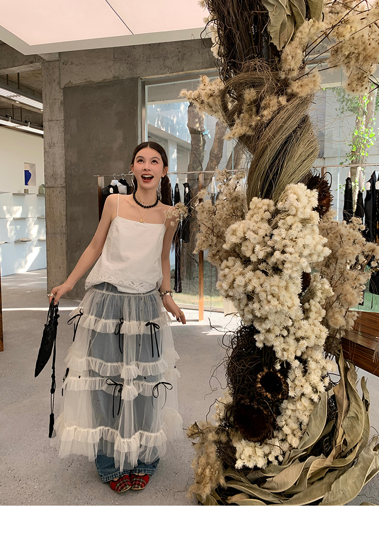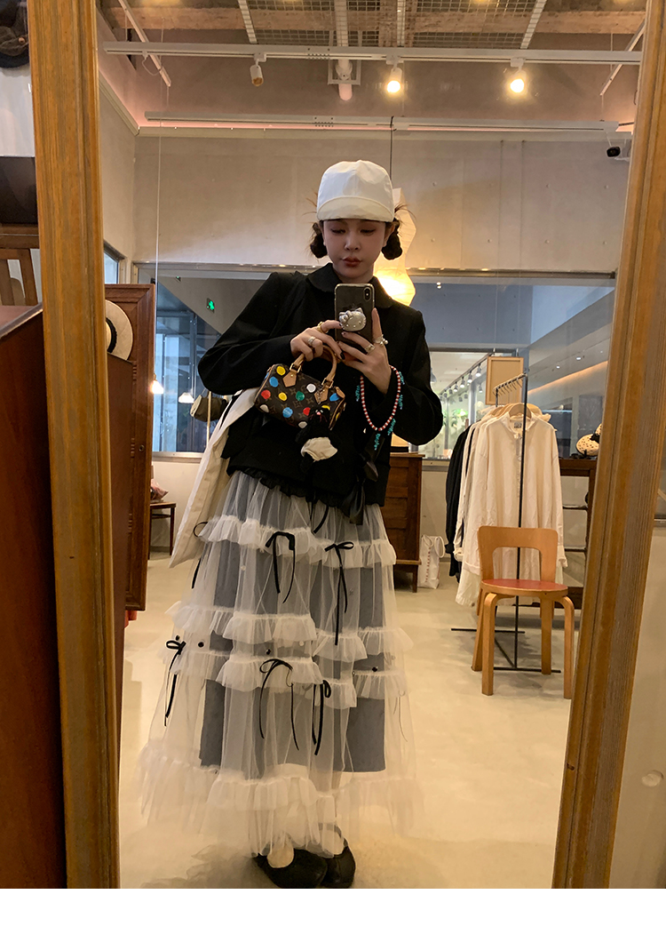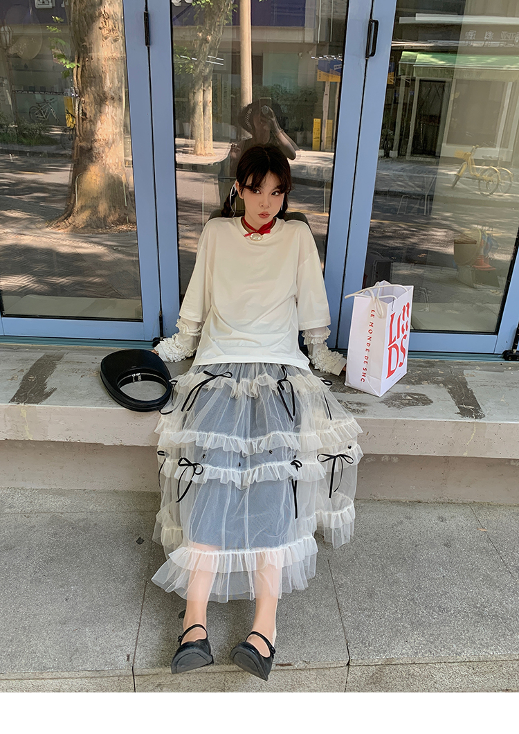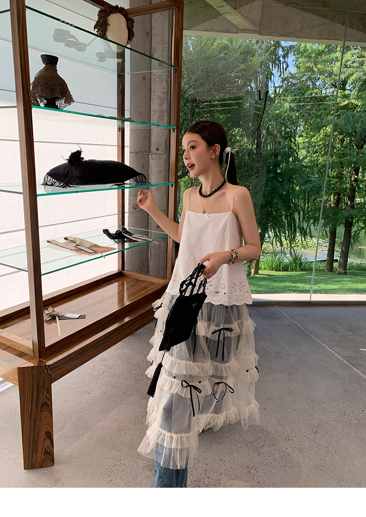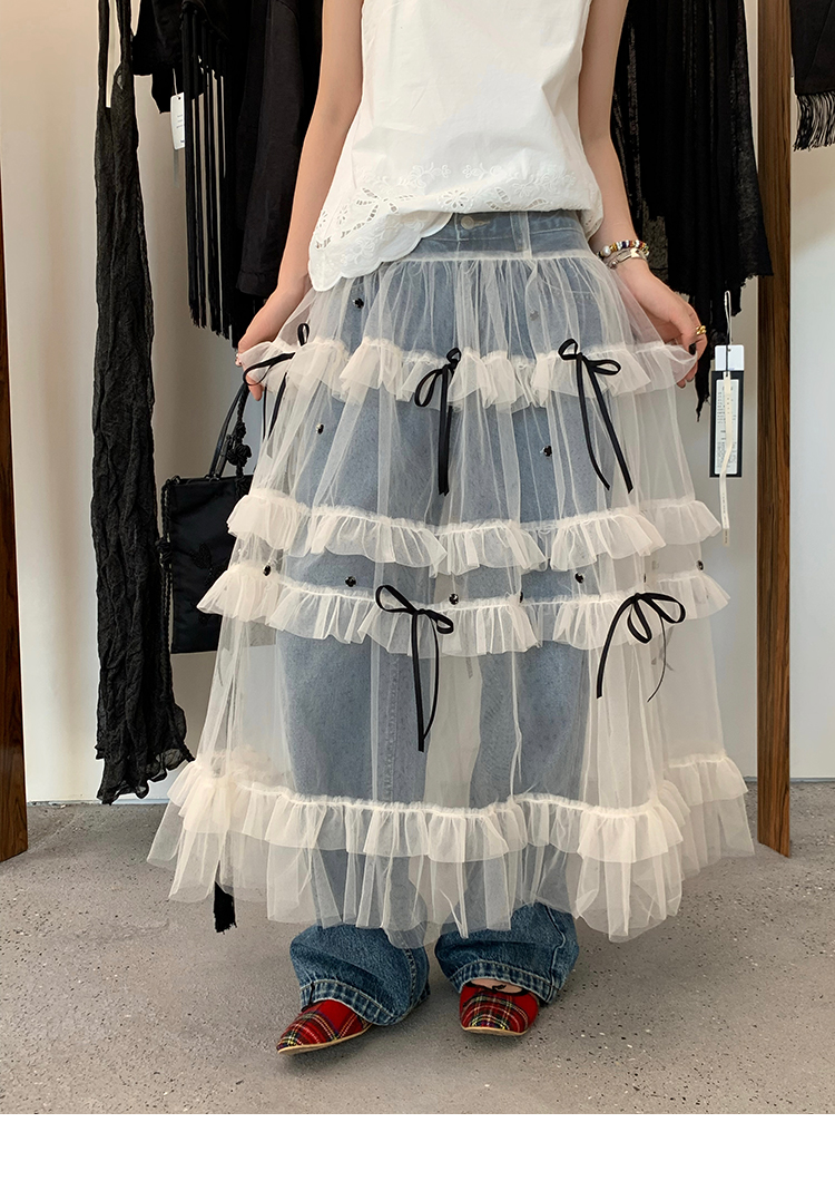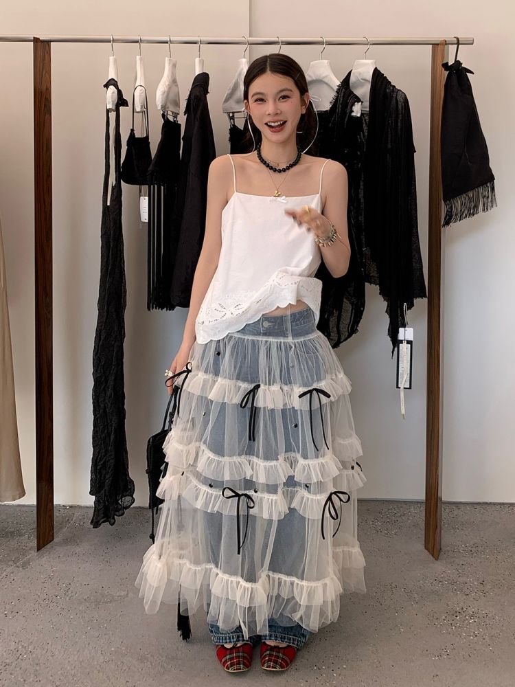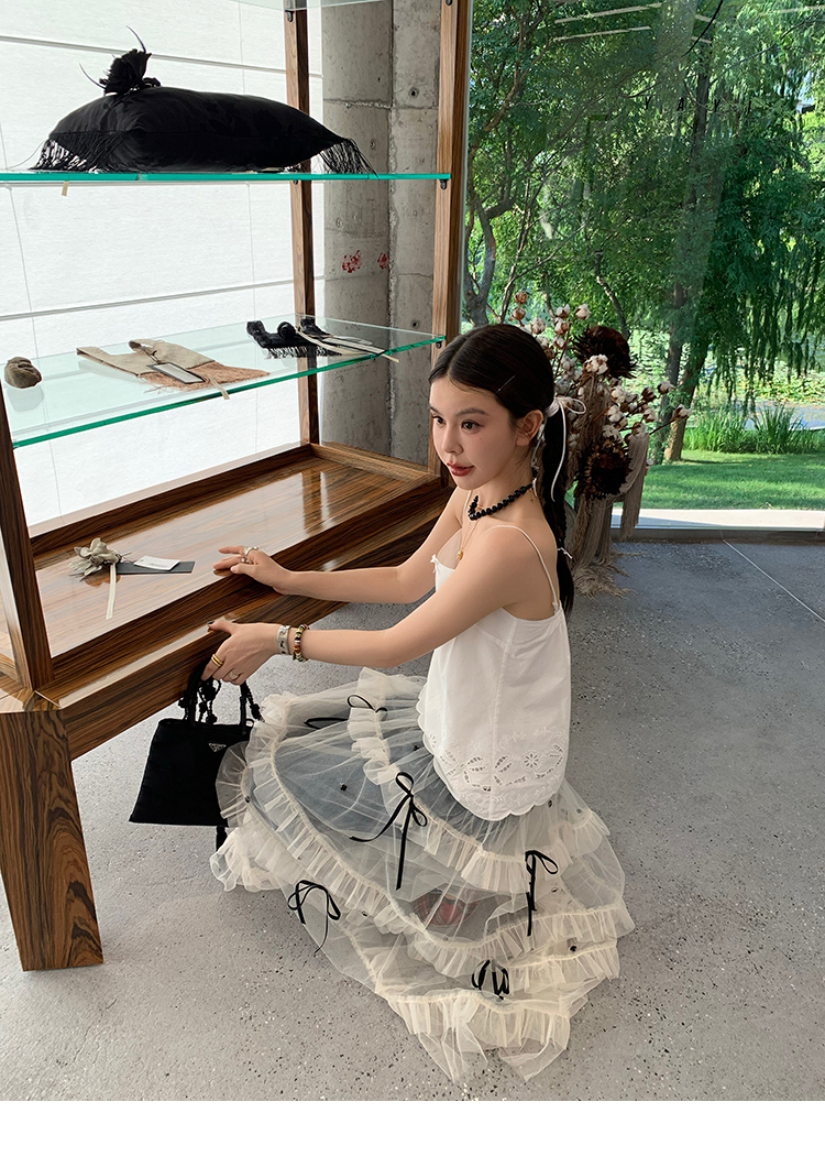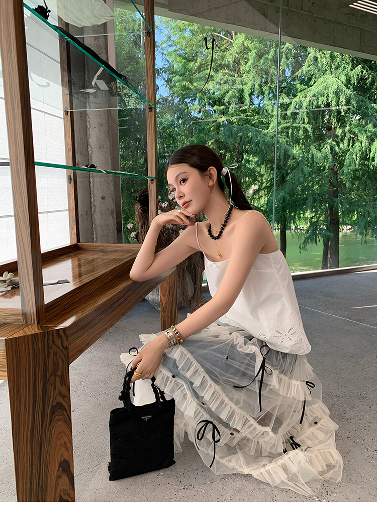 LRIB fantasy mesh ruffle bow nail diamond layered two-piece skirt