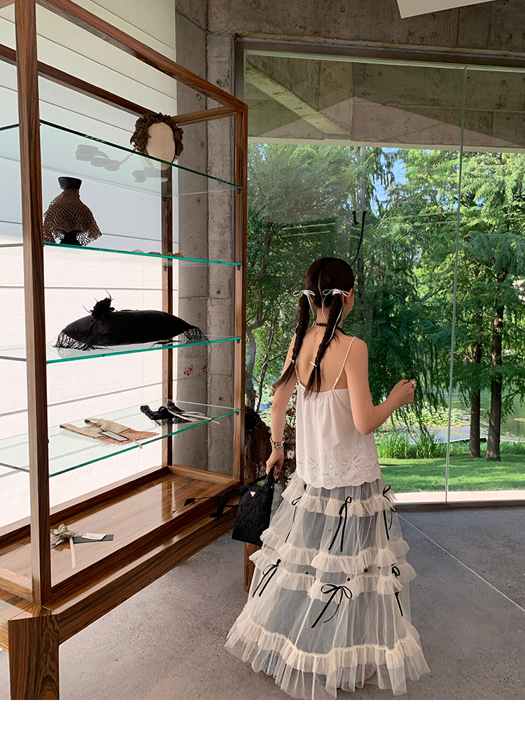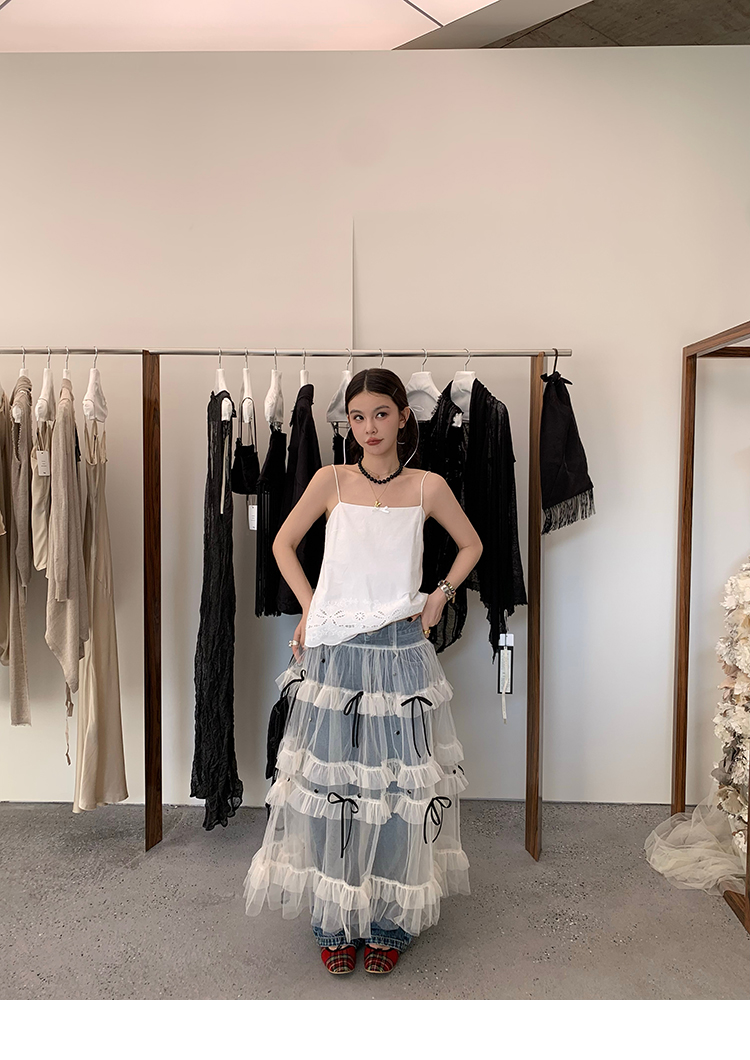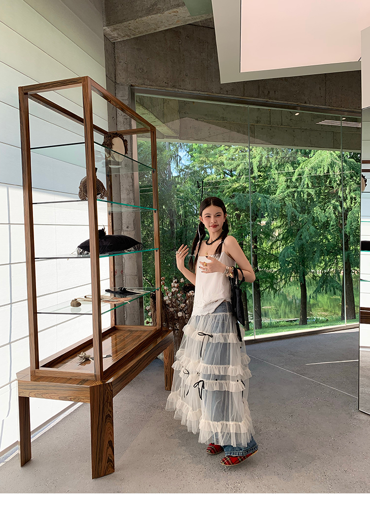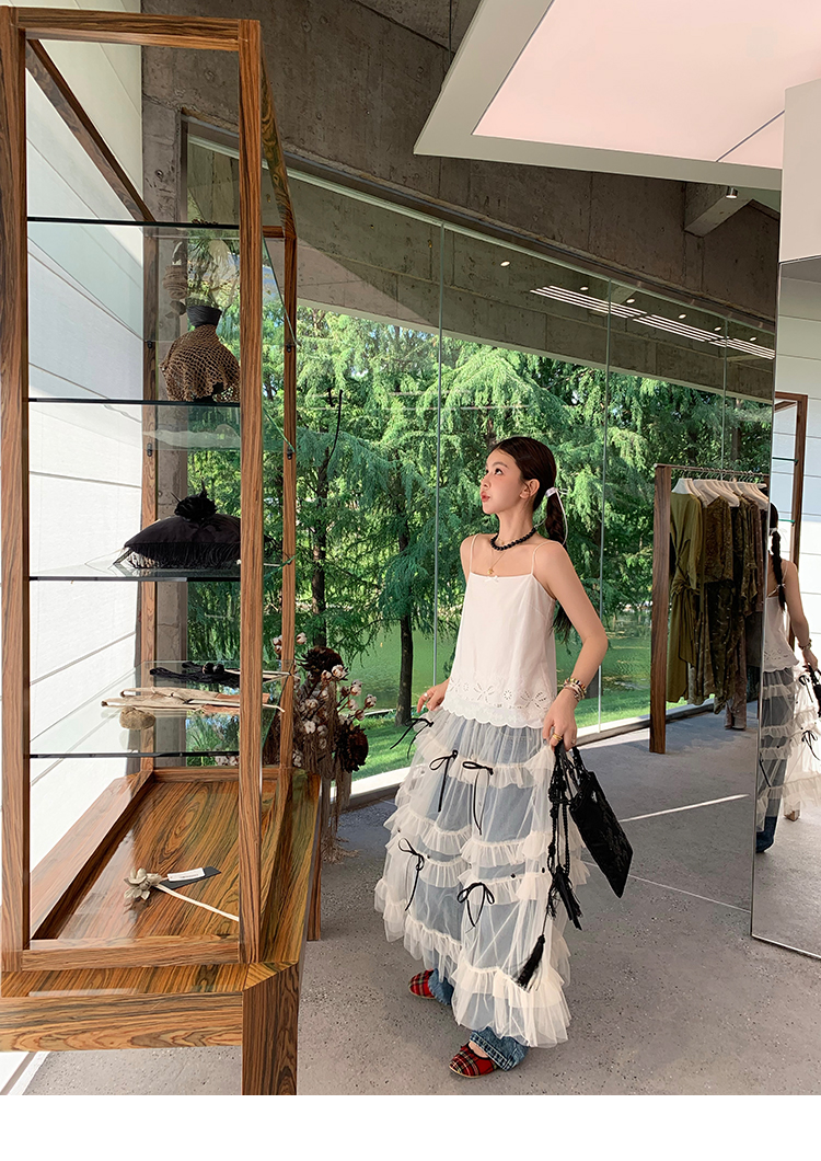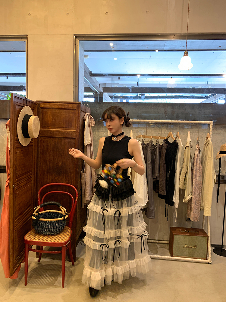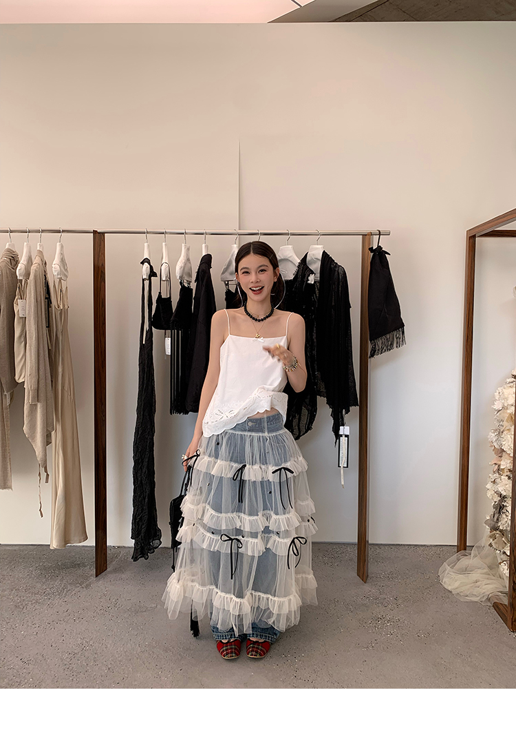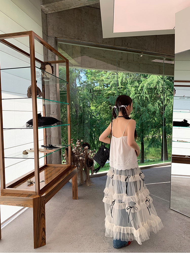 LRIB fantasy mesh ruffle bow nail diamond layered two-piece skirt