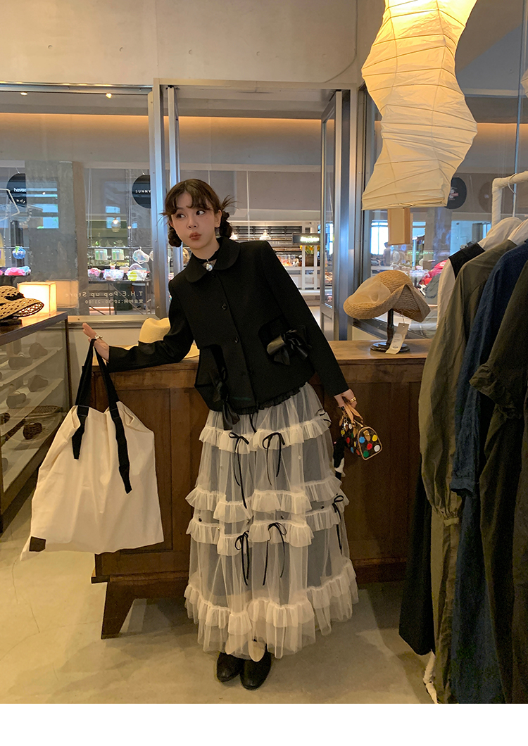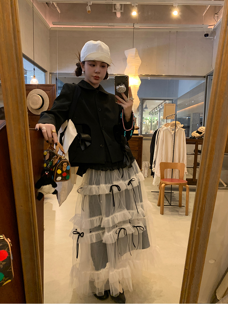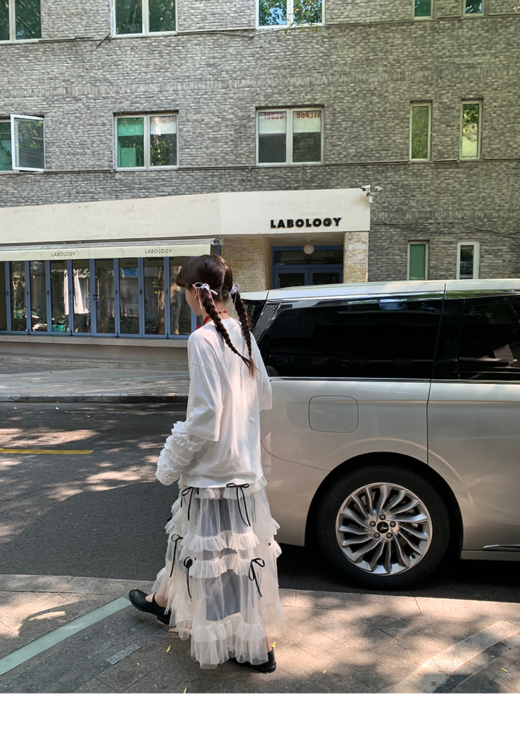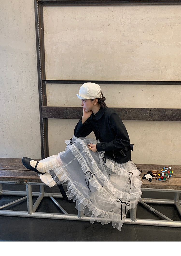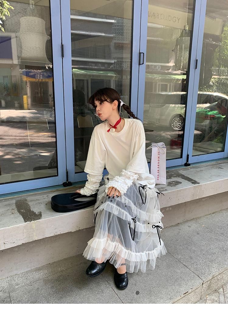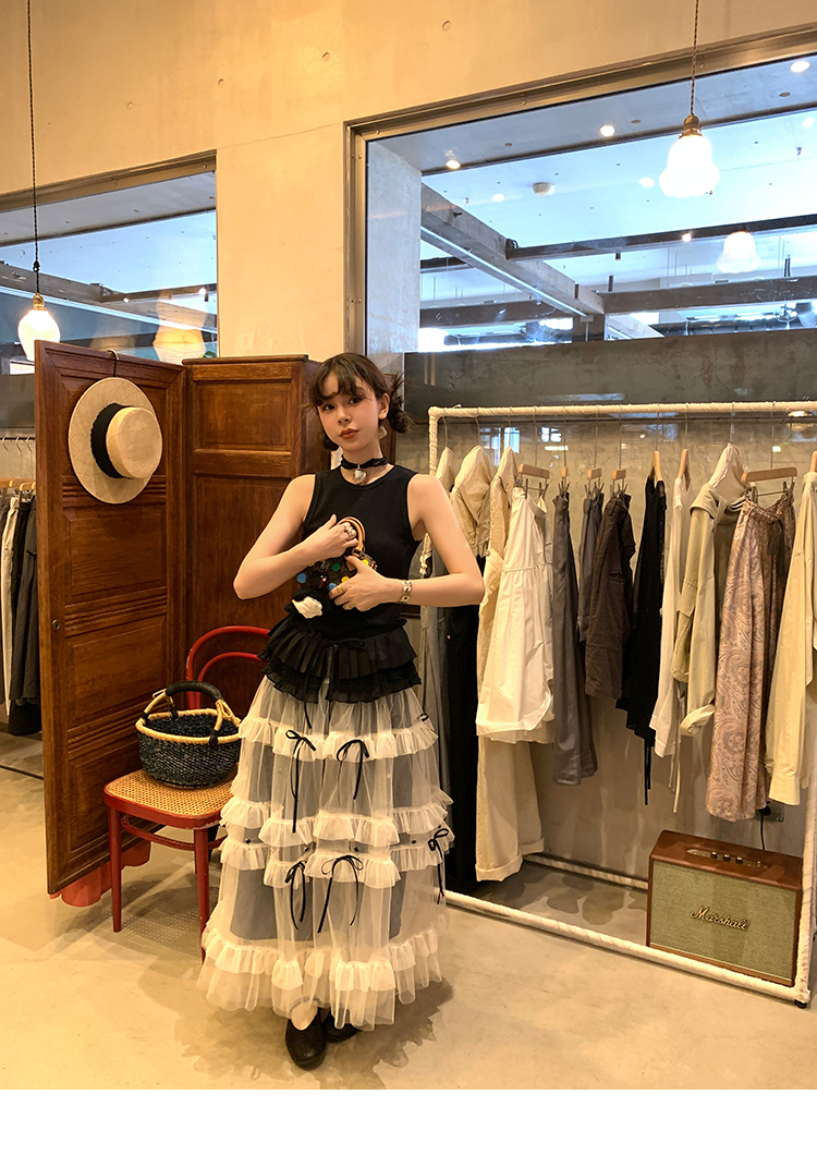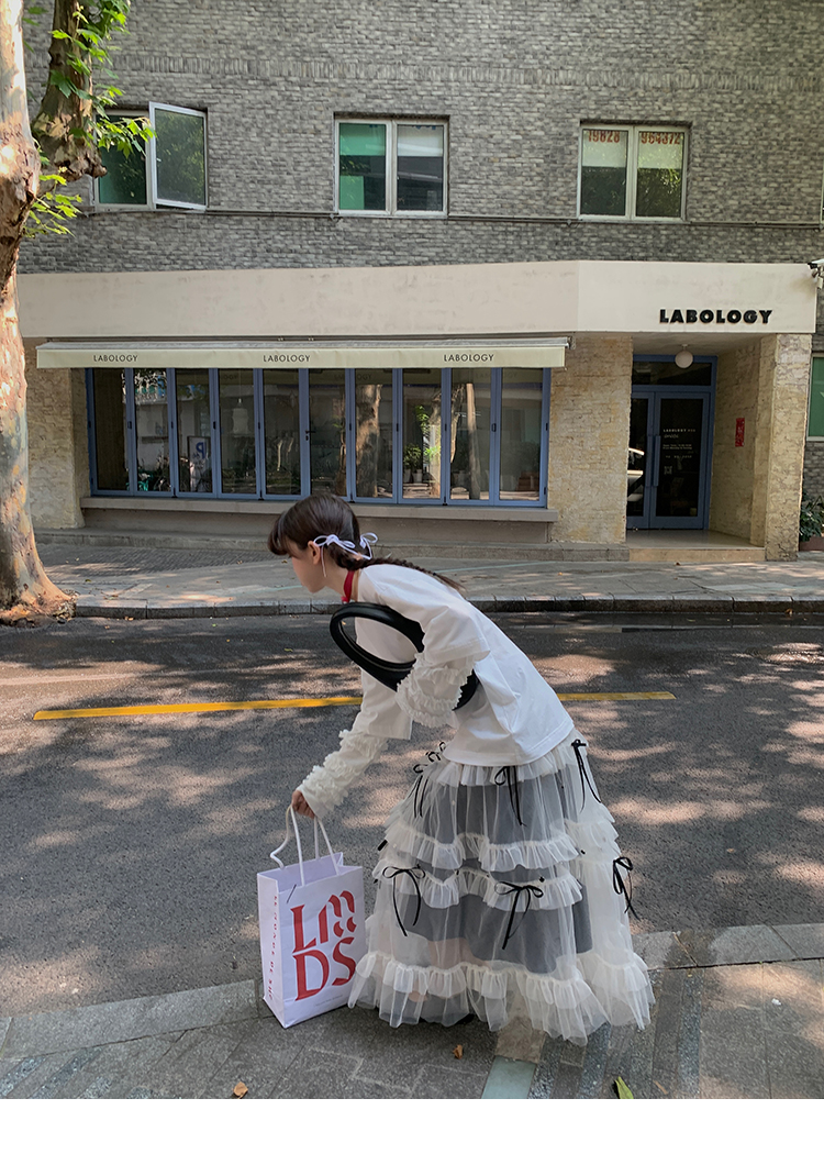 LRIB fantasy mesh ruffle bow nail diamond layered two-piece skirt