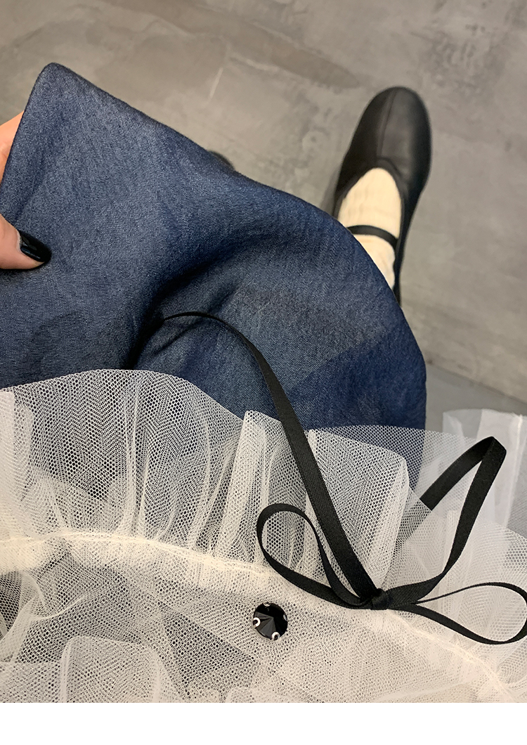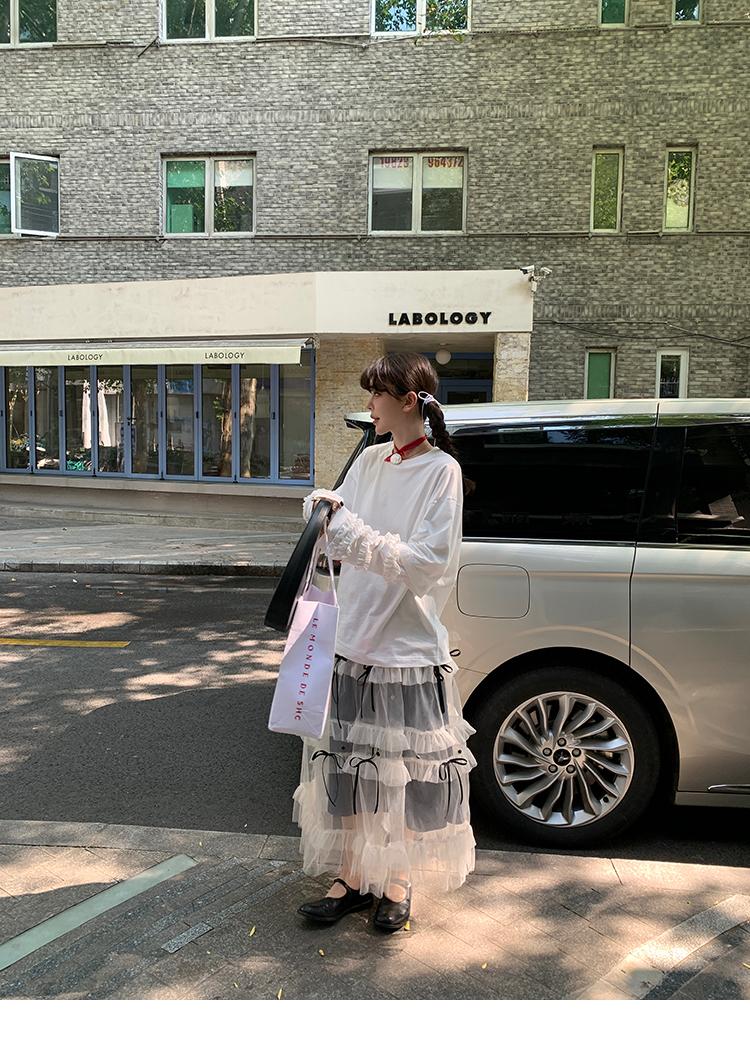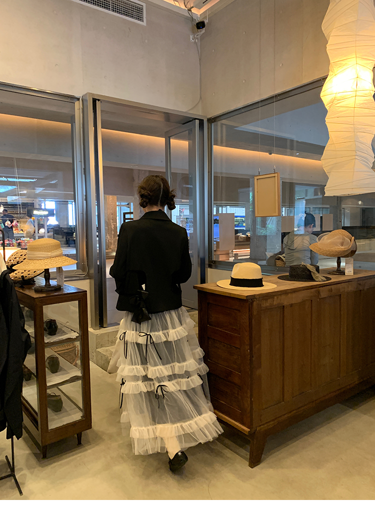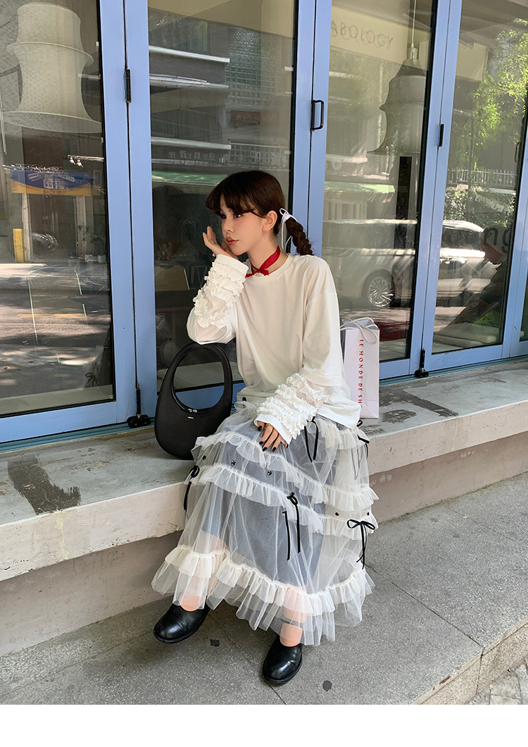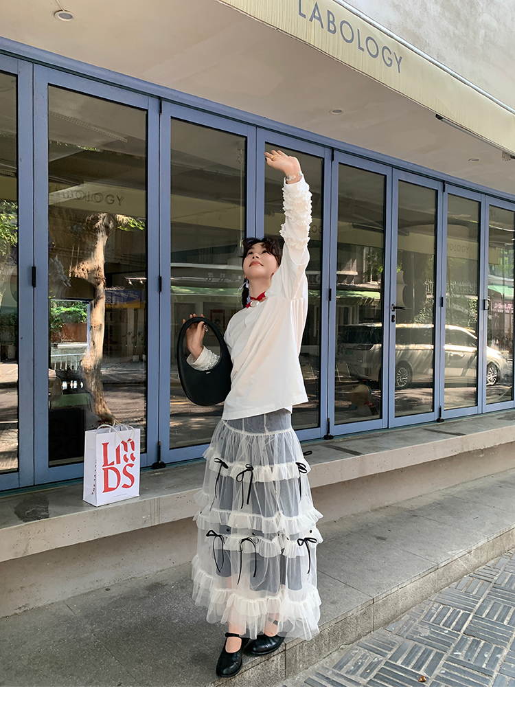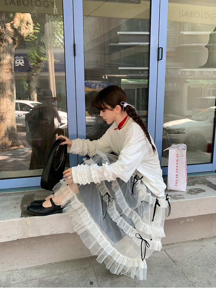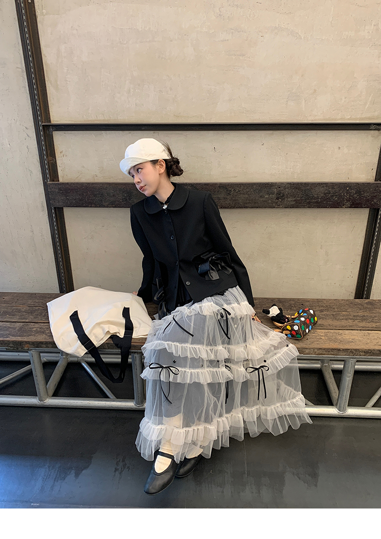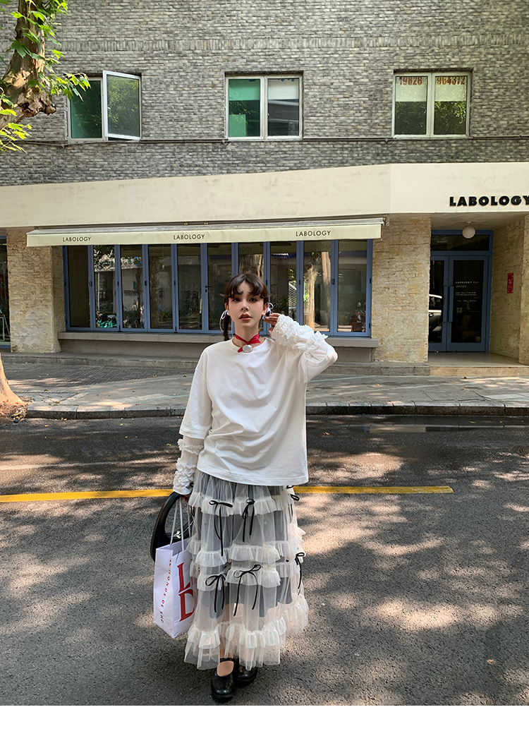 LRIB fantasy mesh ruffle bow nail diamond layered two-piece skirt