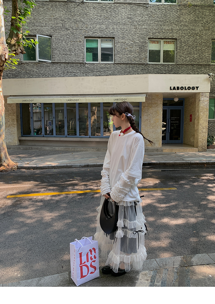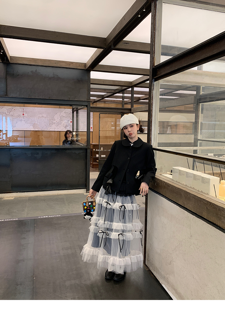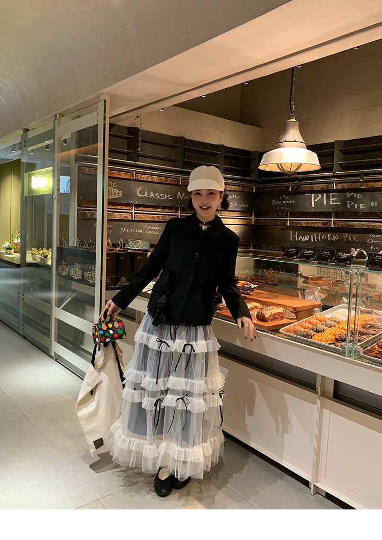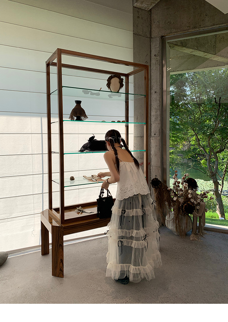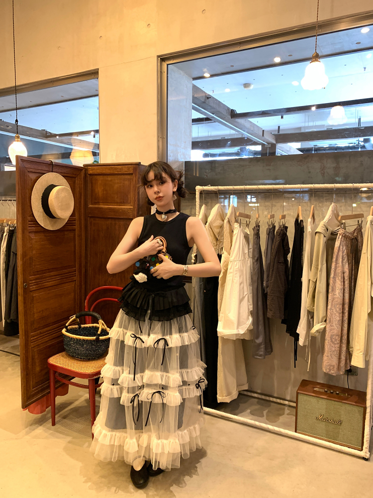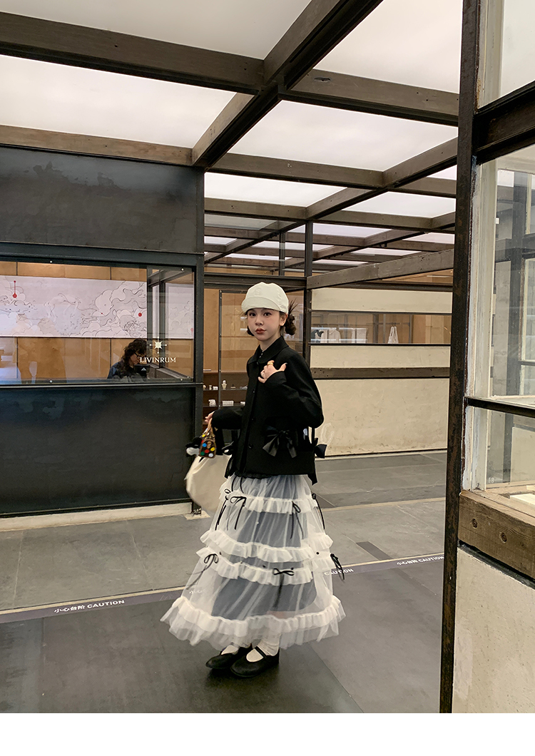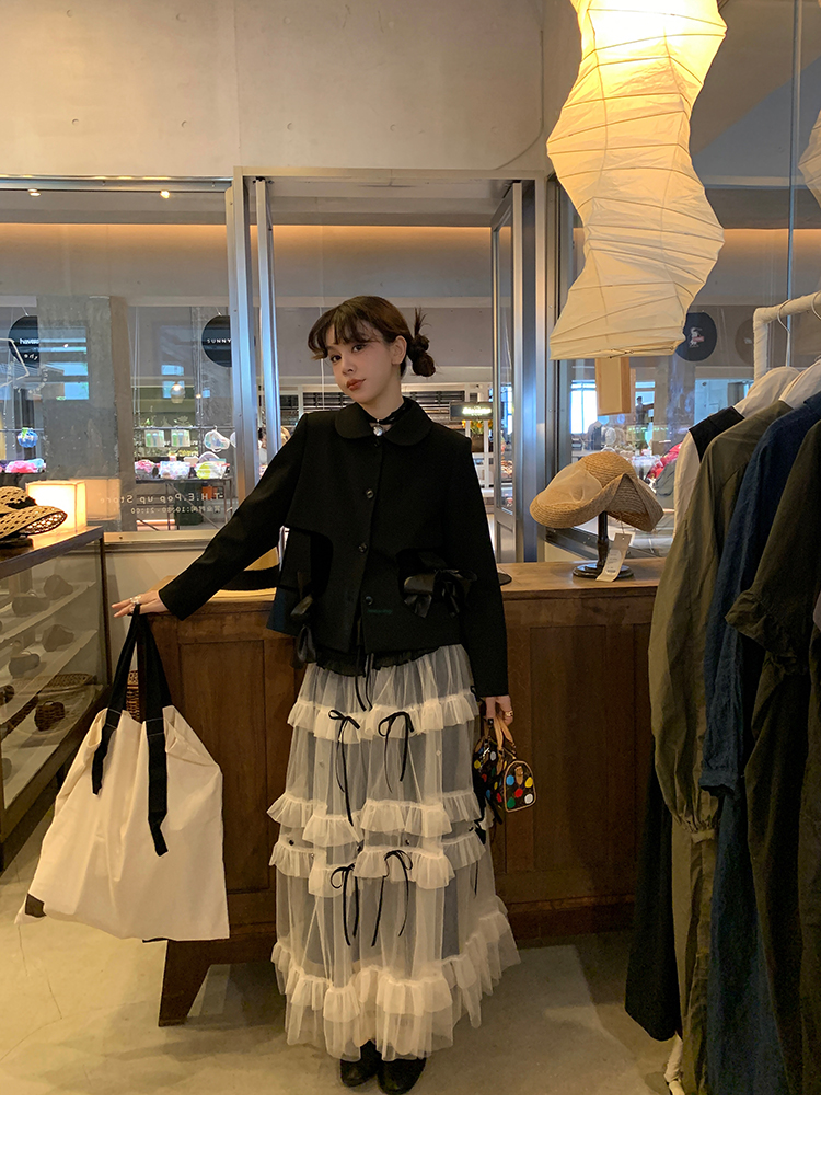 LRIB fantasy mesh ruffle bow nail diamond layered two-piece skirt