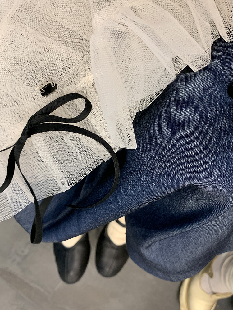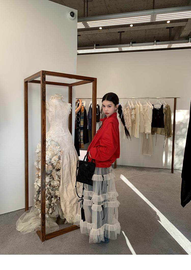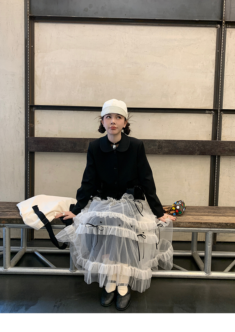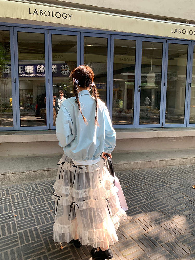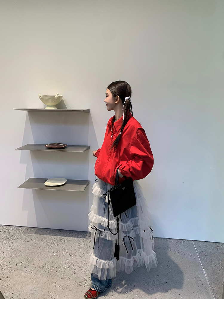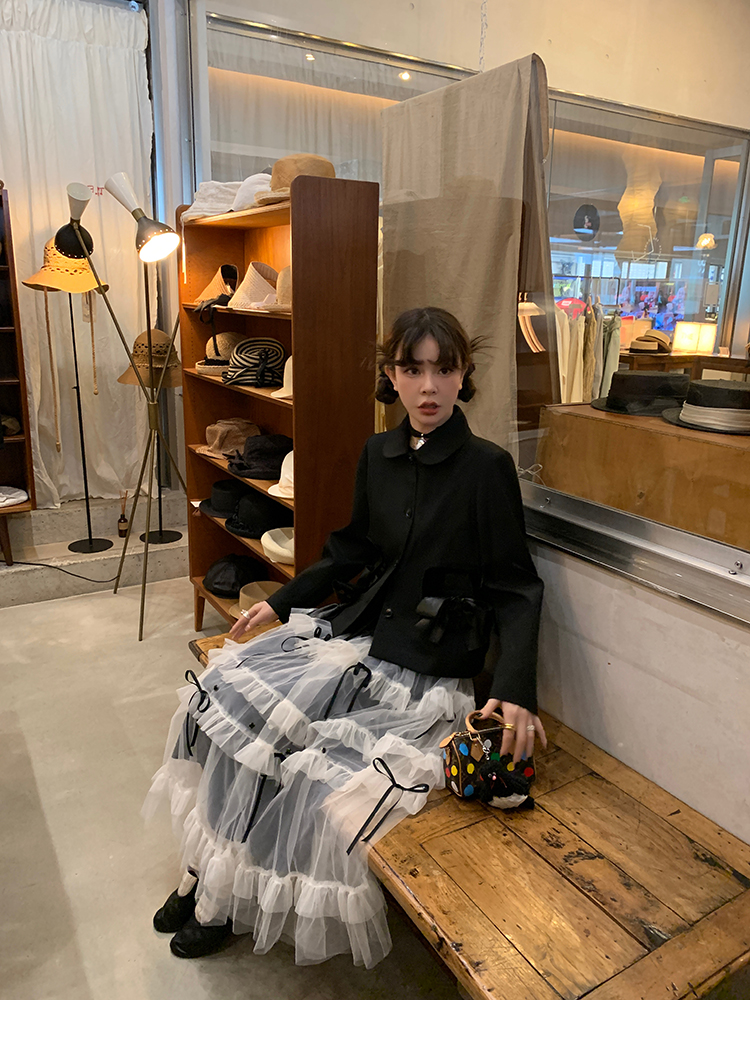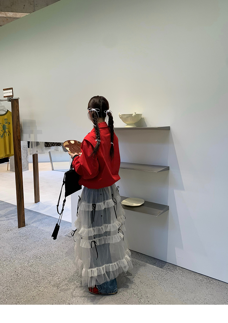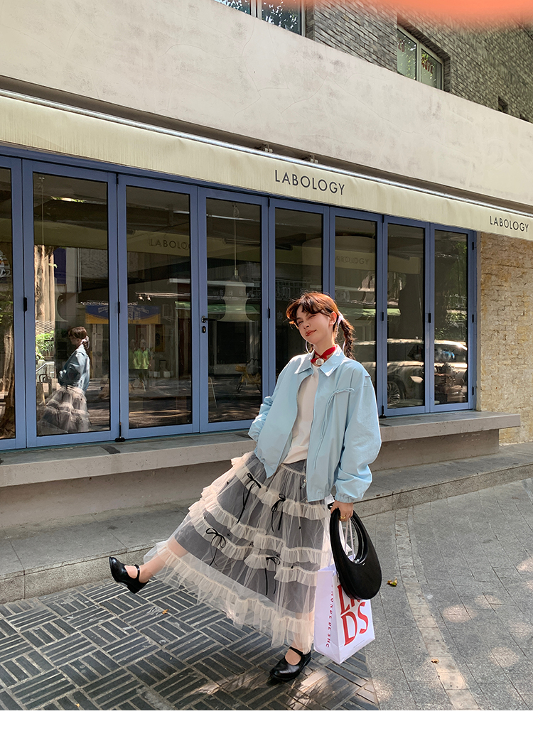 LRIB fantasy mesh ruffle bow nail diamond layered two-piece skirt