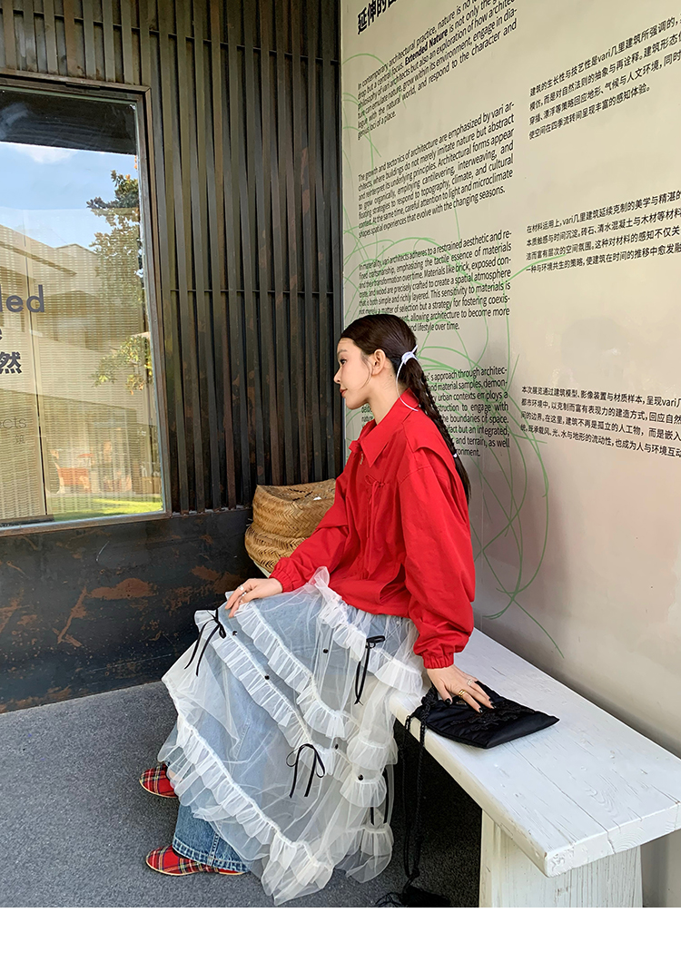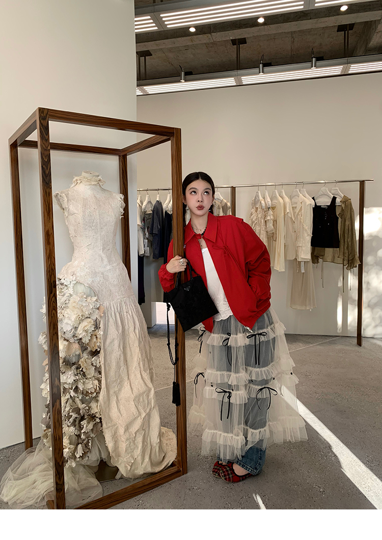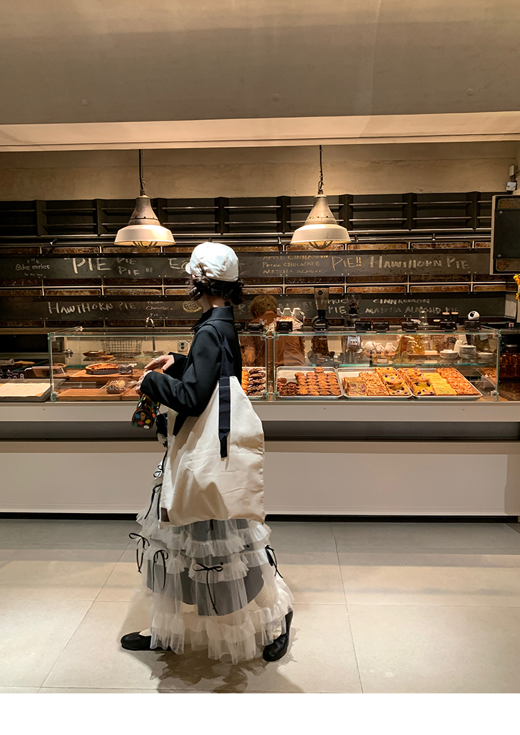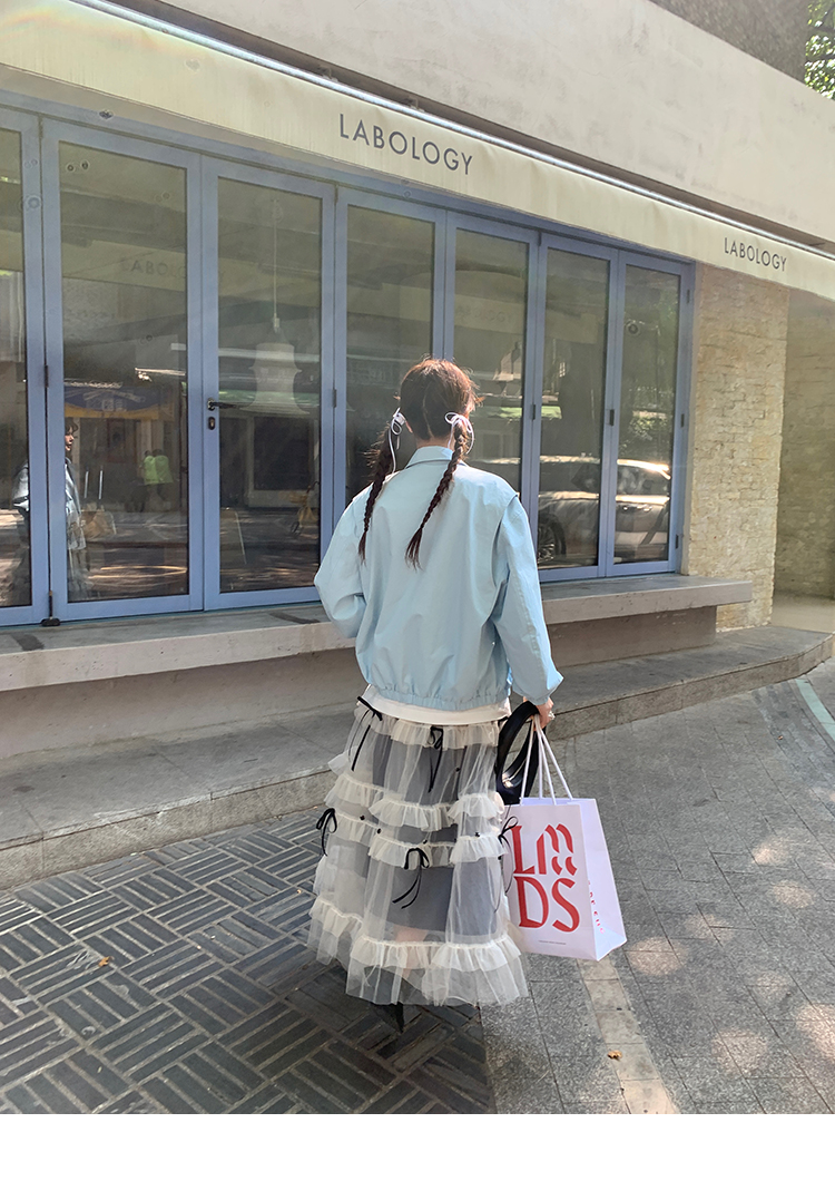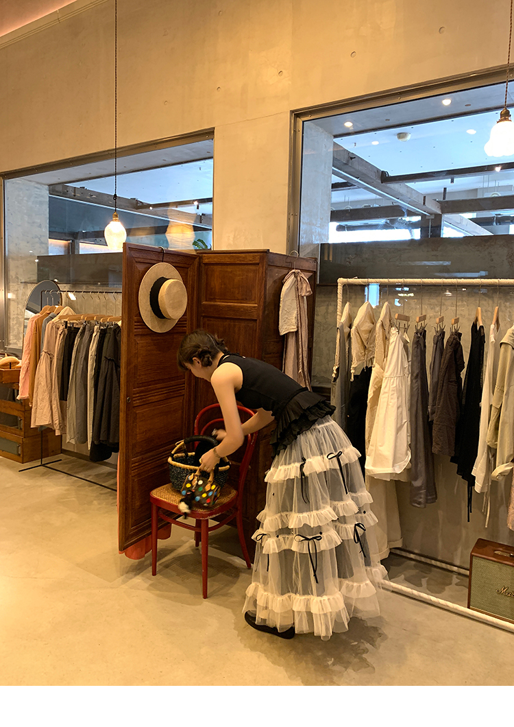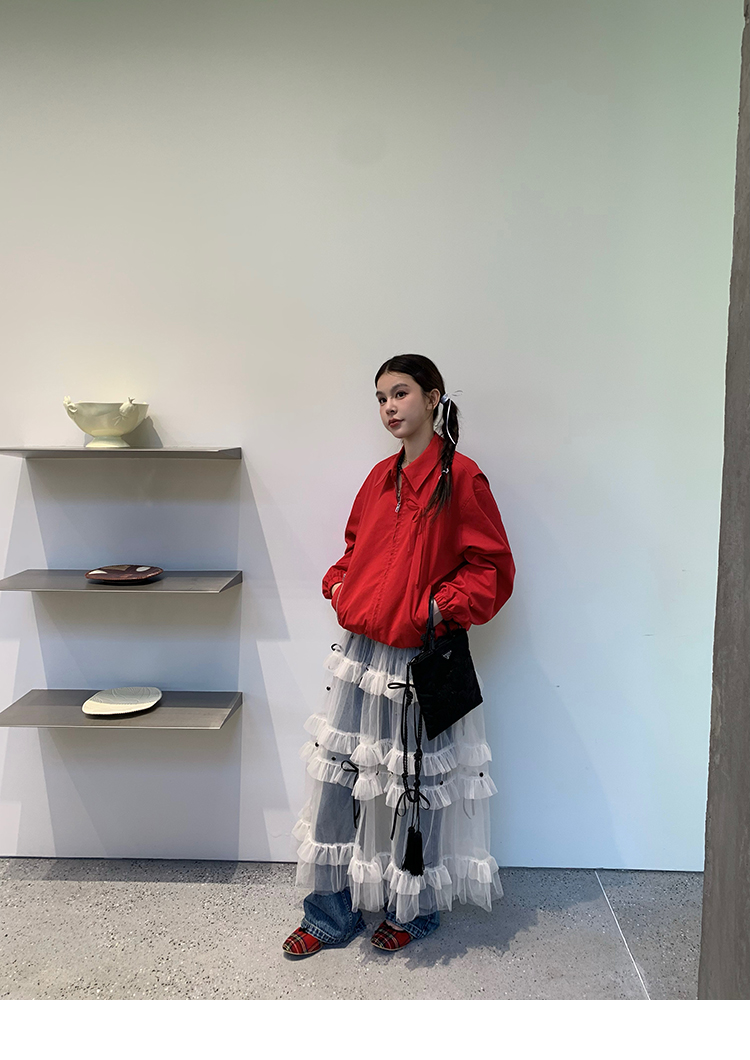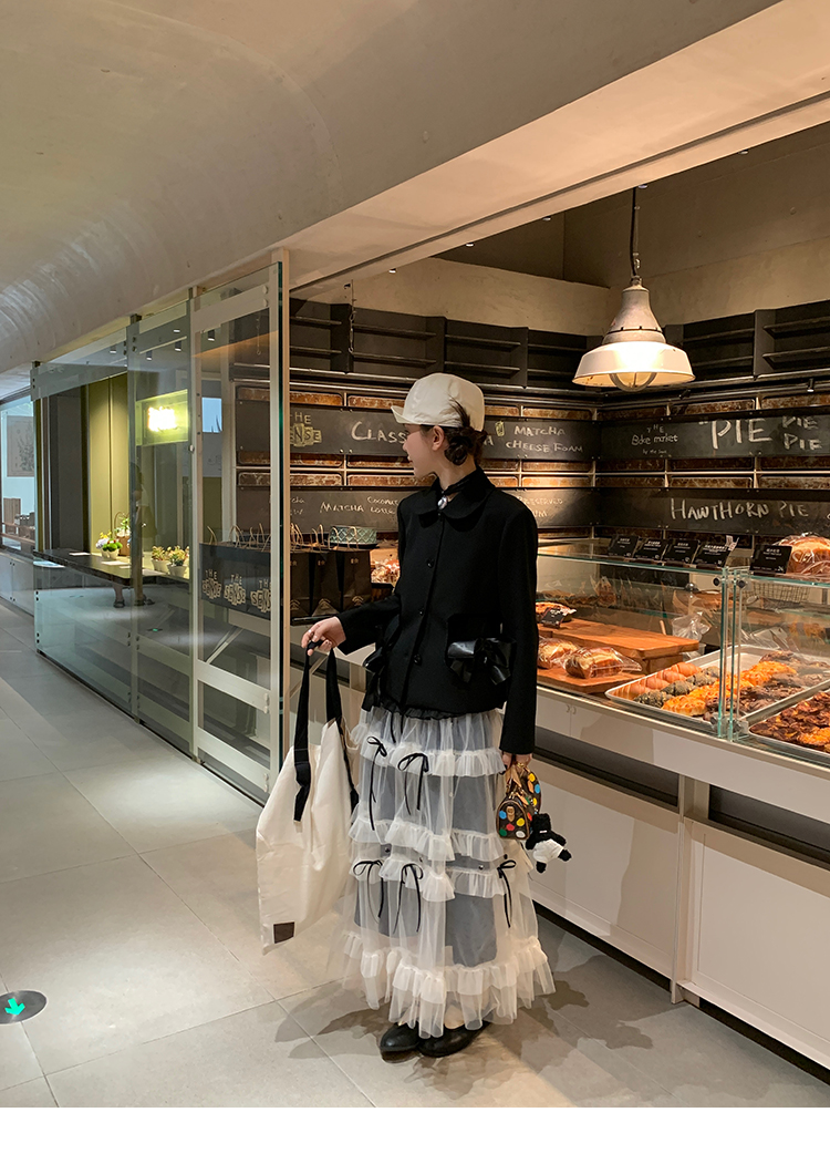 LRIB fantasy mesh ruffle bow nail diamond layered two-piece skirt