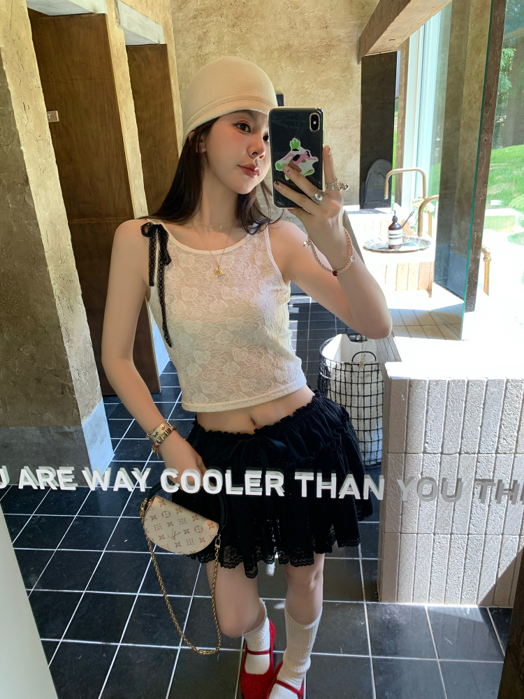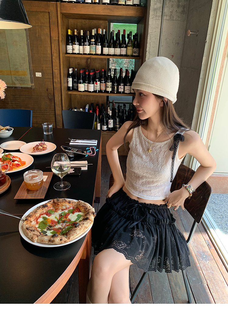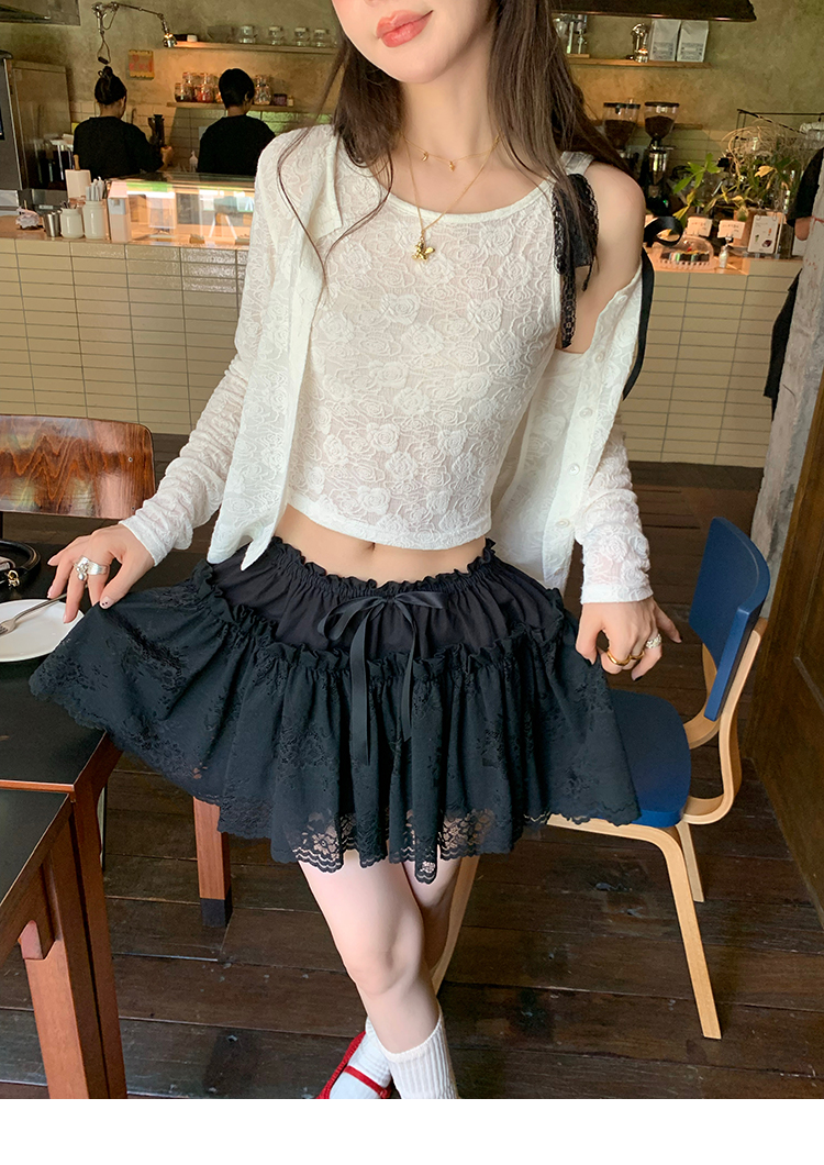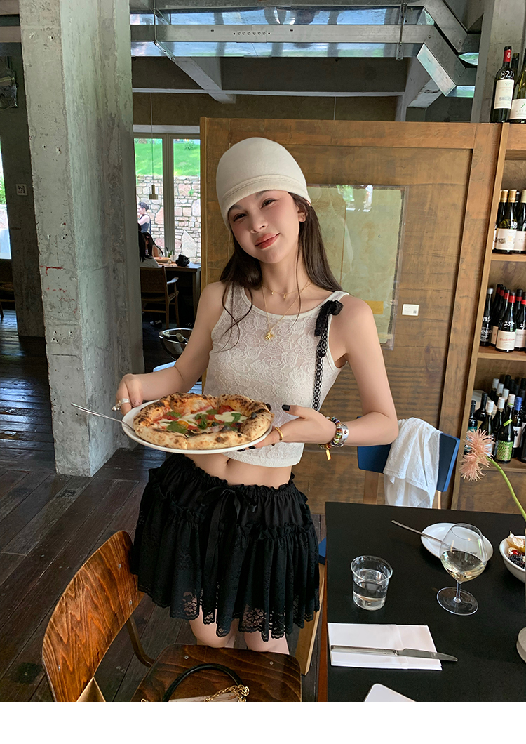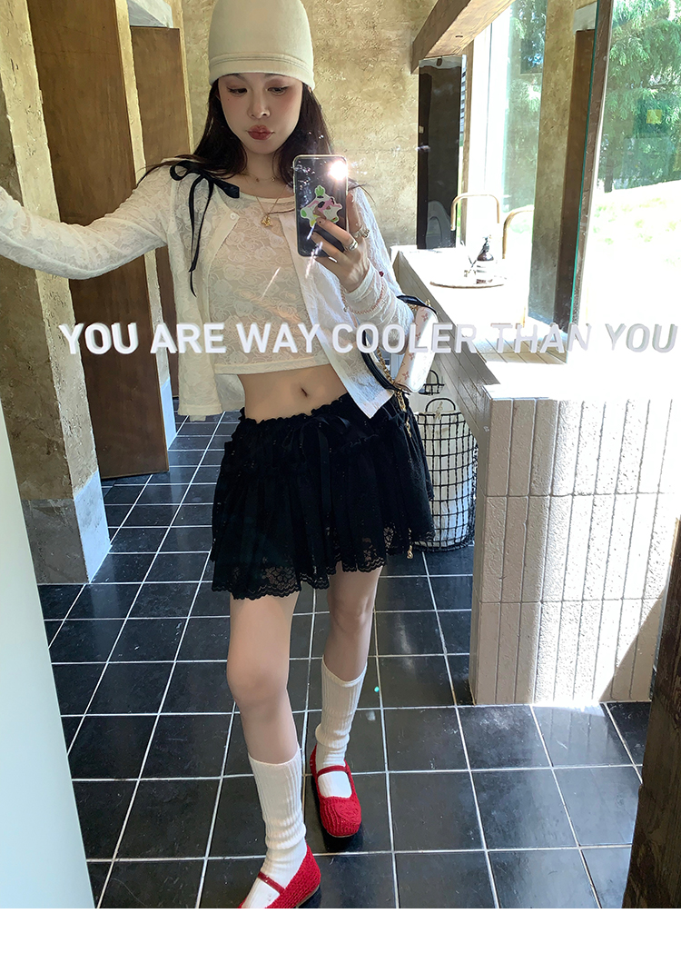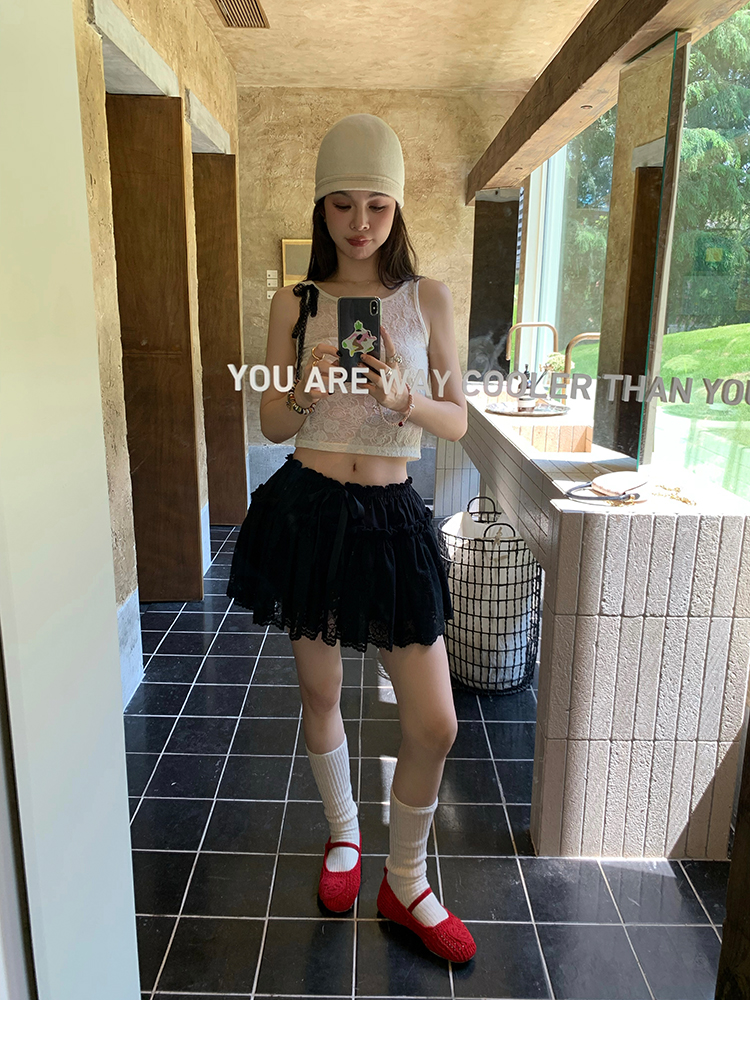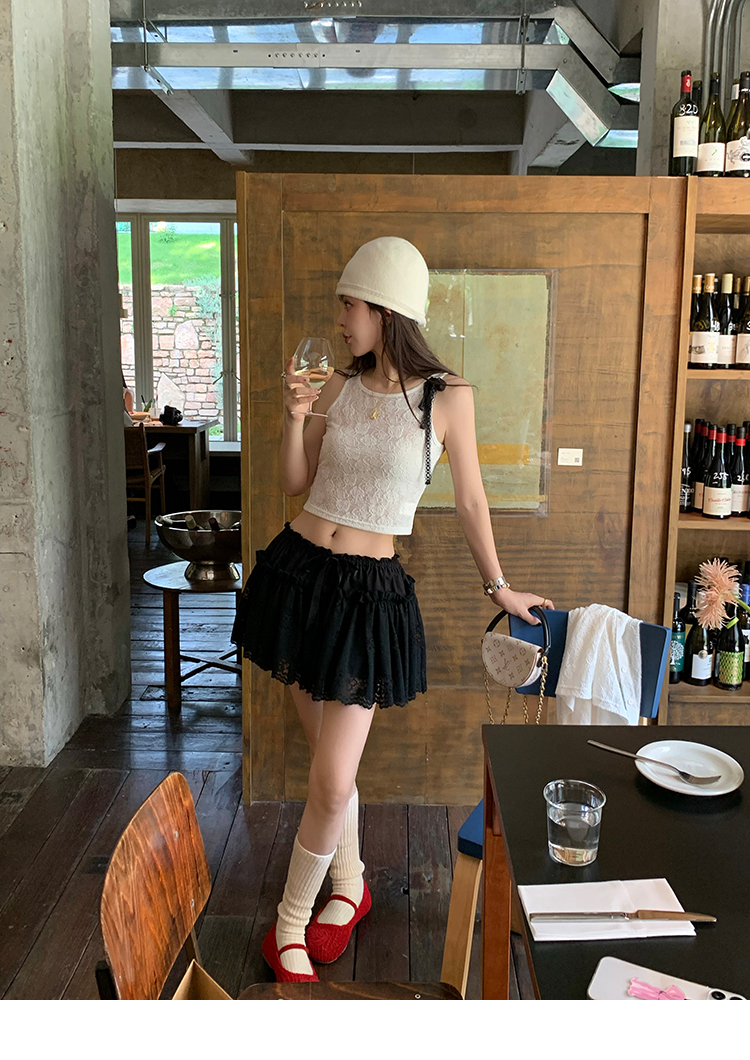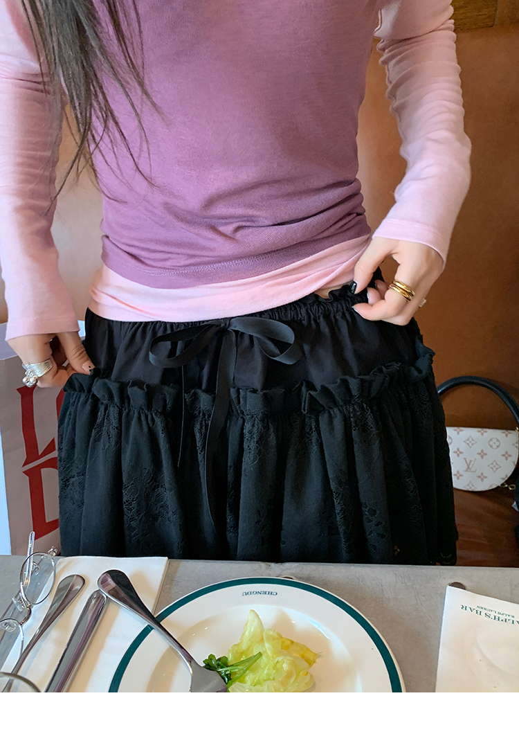 LRIB lace fantasy black pleated splicing hollow yarn elastic skirt