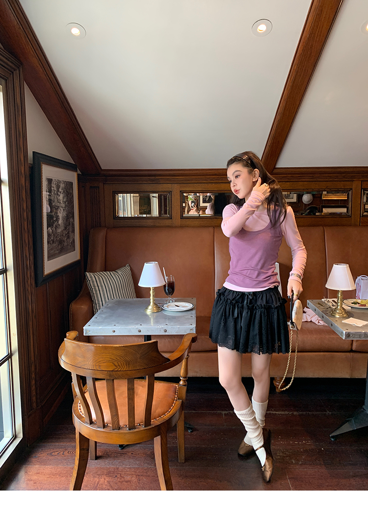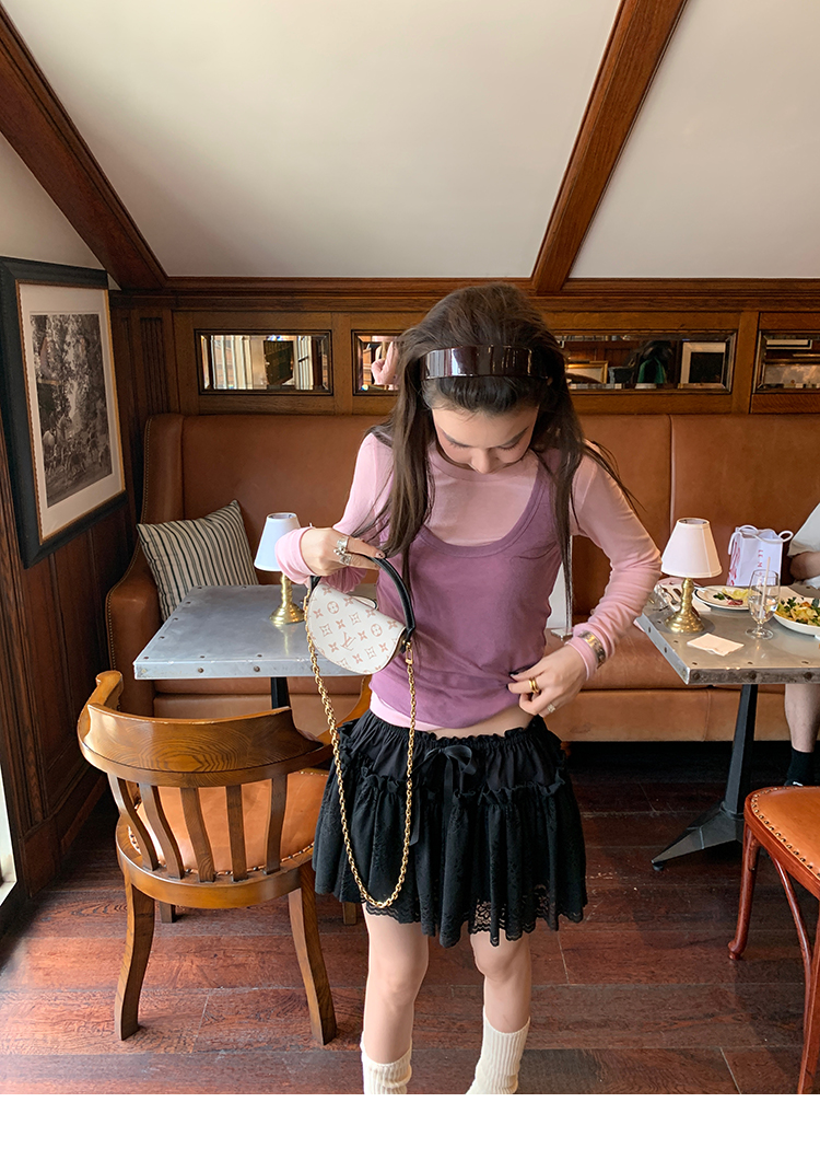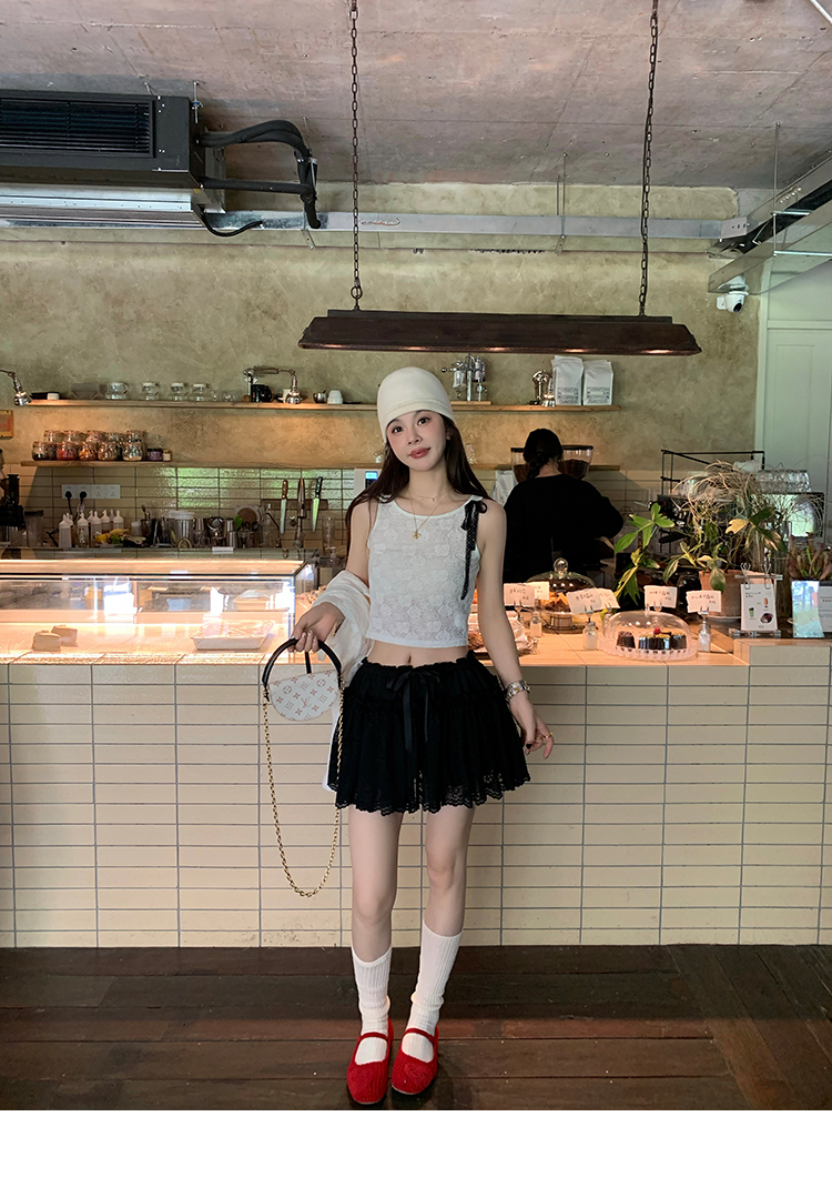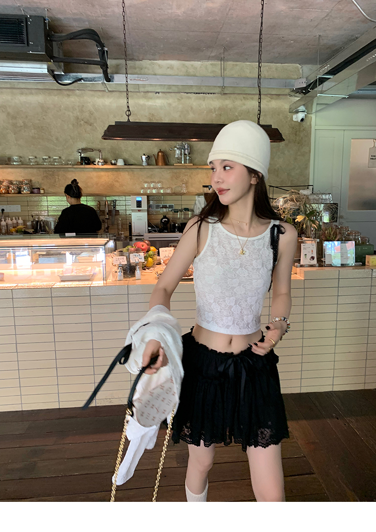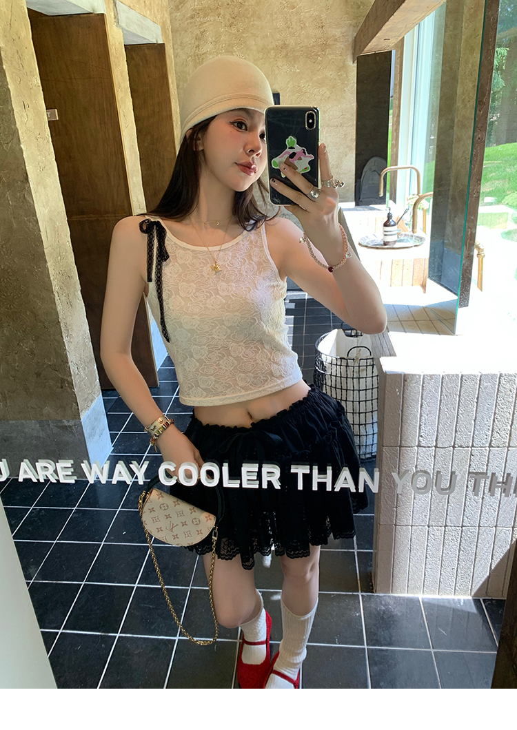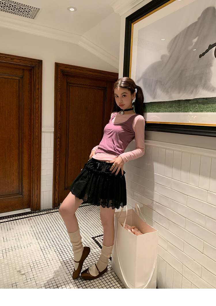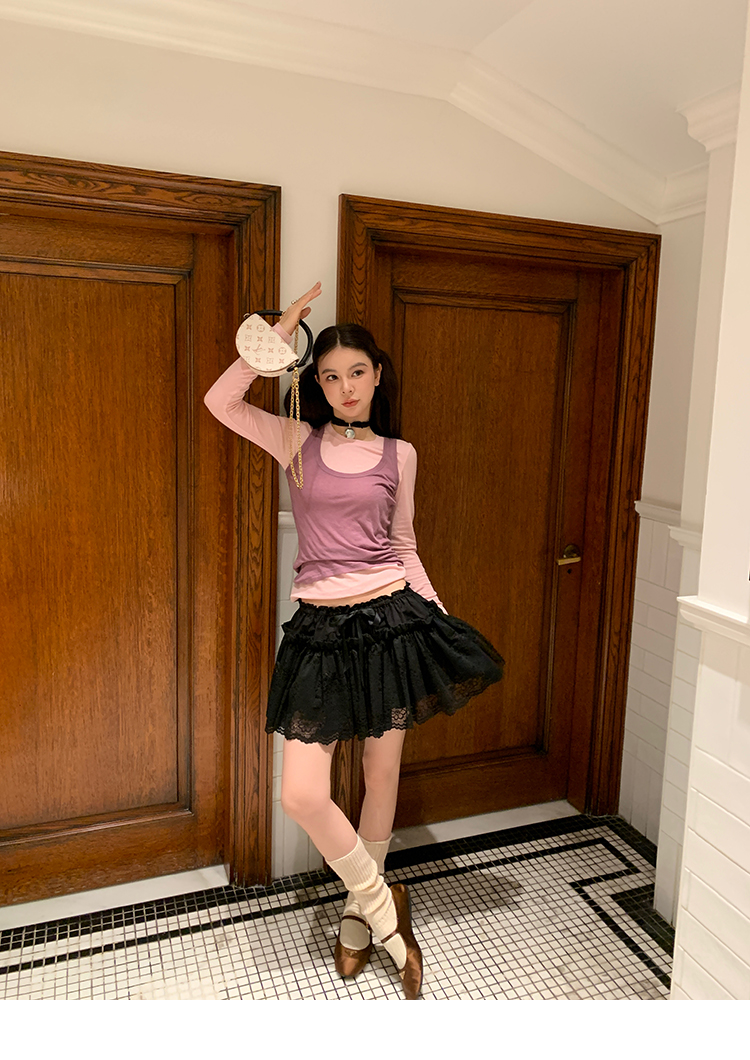 LRIB lace fantasy black pleated splicing hollow yarn elastic skirt