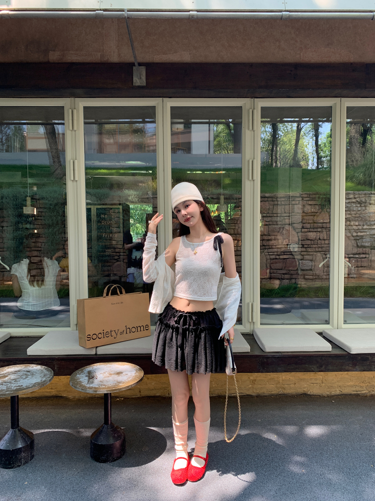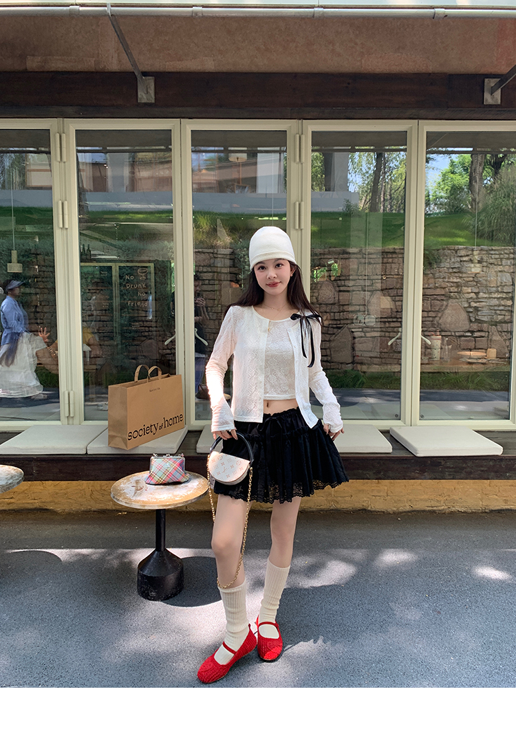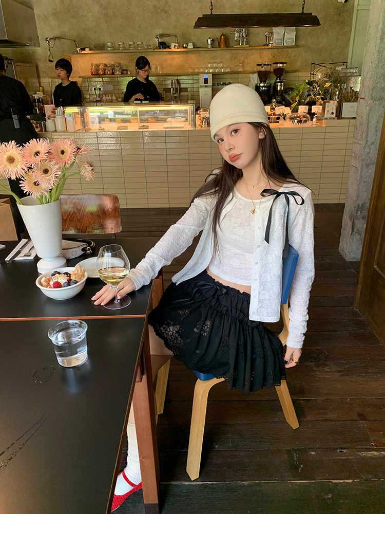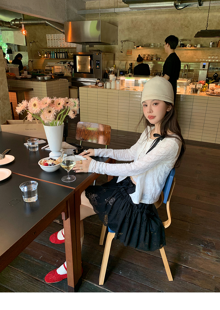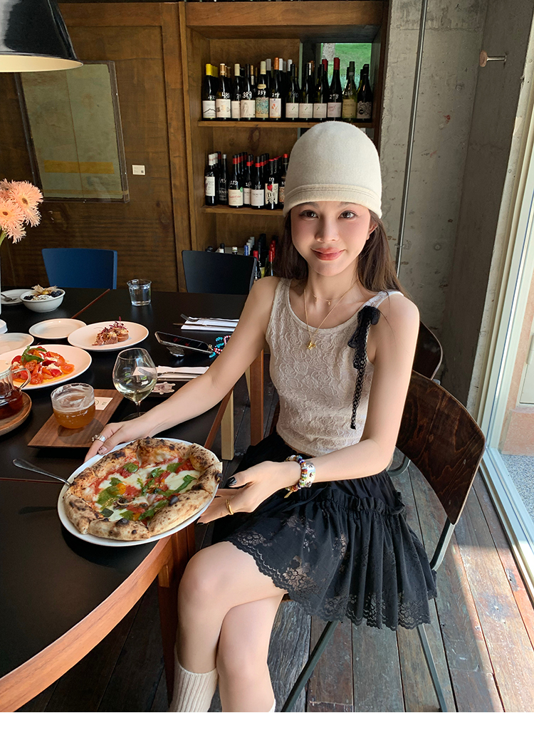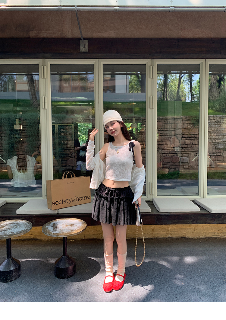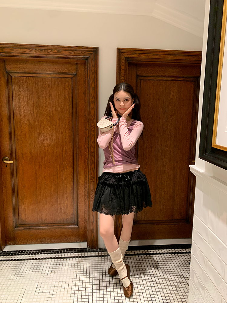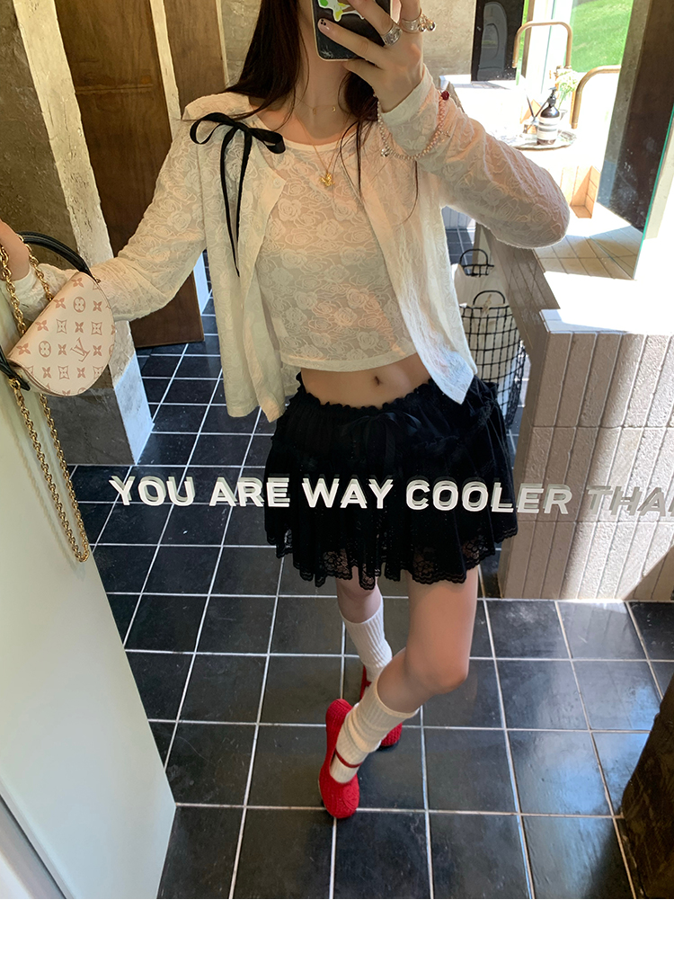 LRIB lace fantasy black pleated splicing hollow yarn elastic skirt