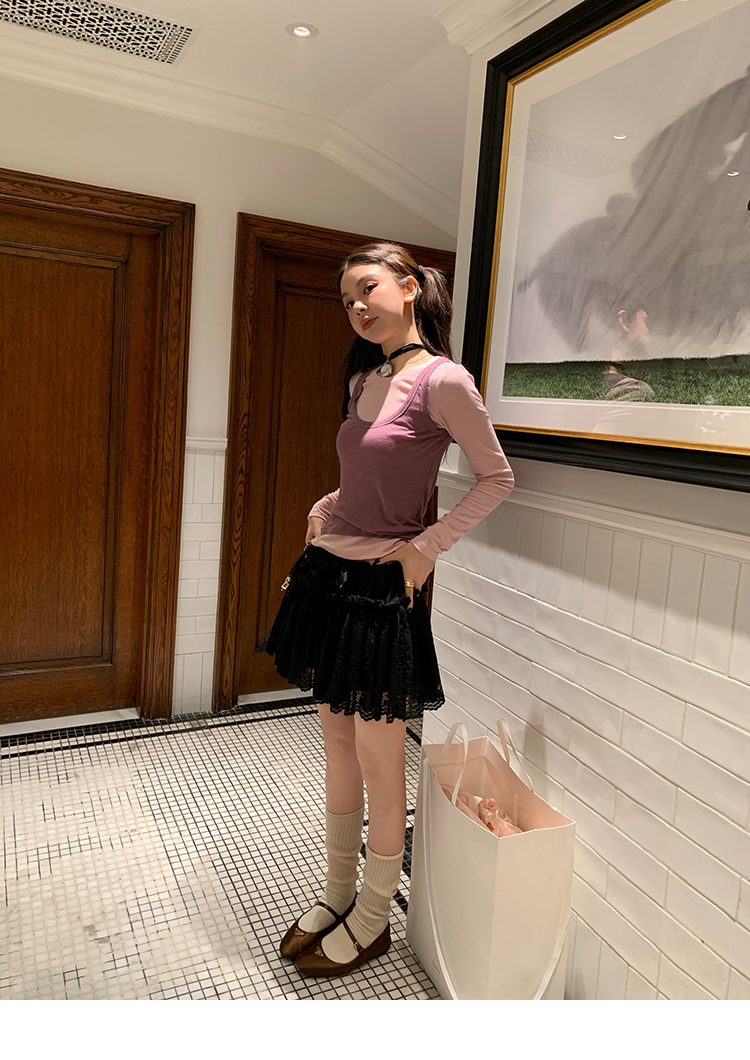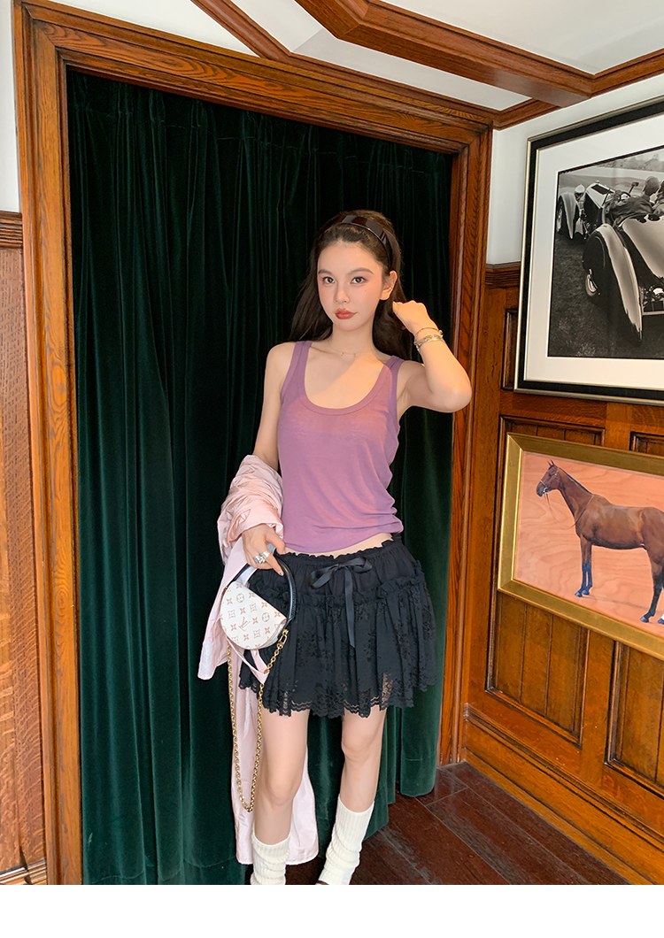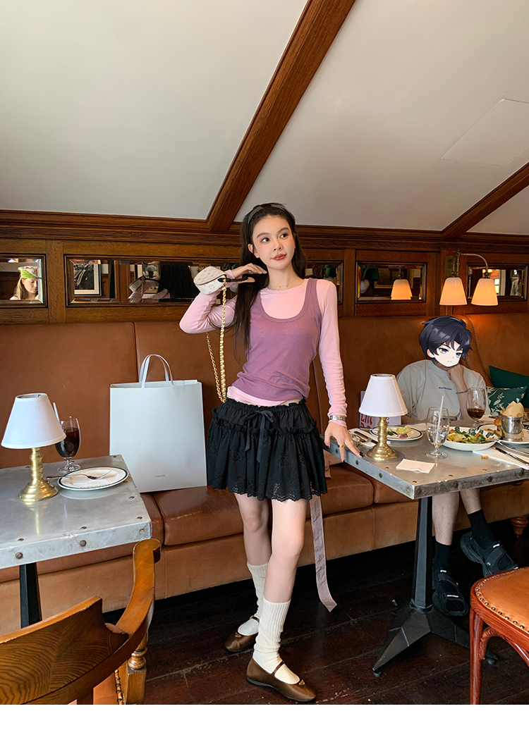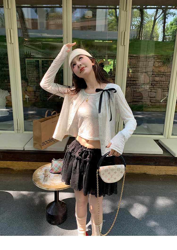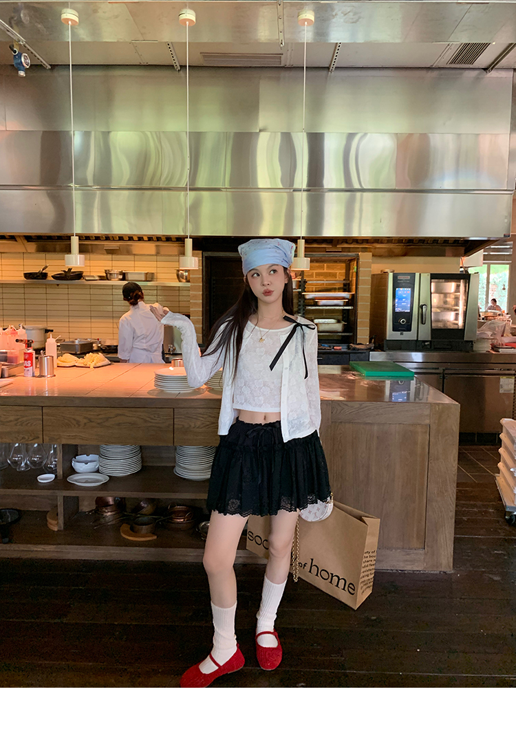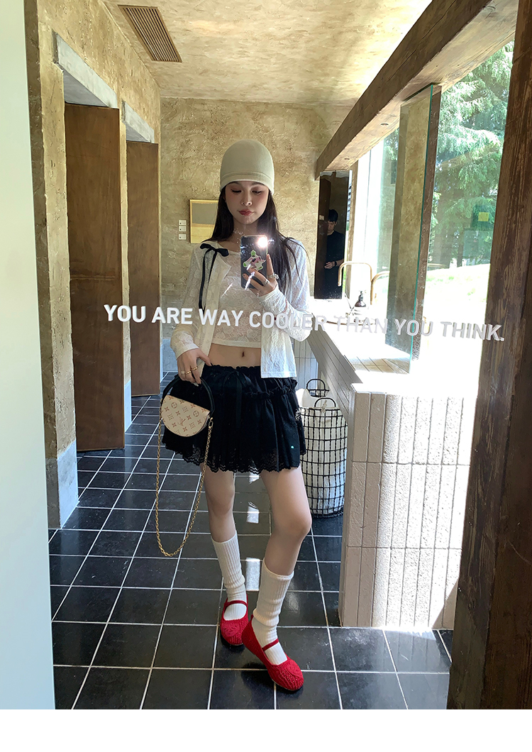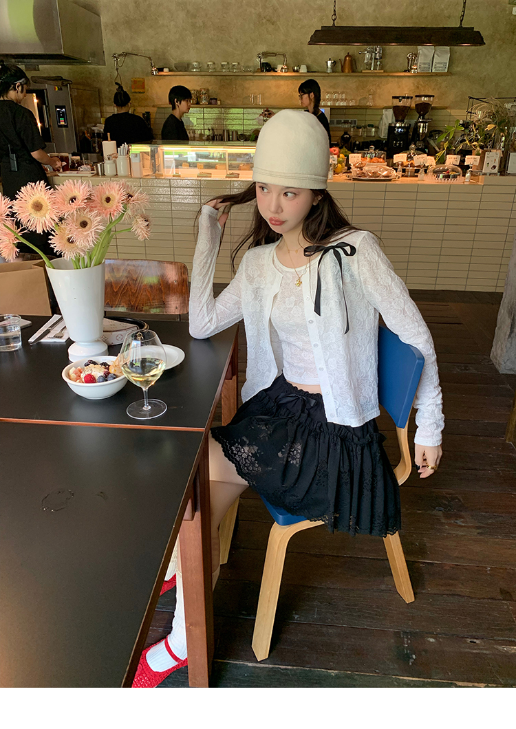 LRIB lace fantasy black pleated splicing hollow yarn elastic skirt
