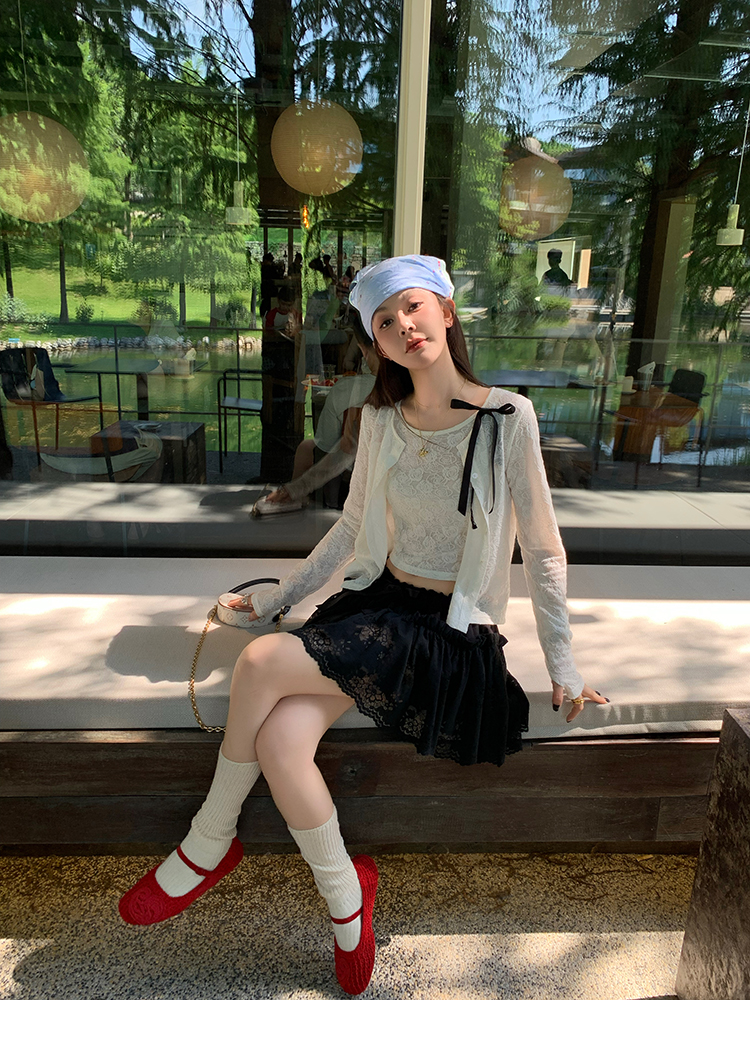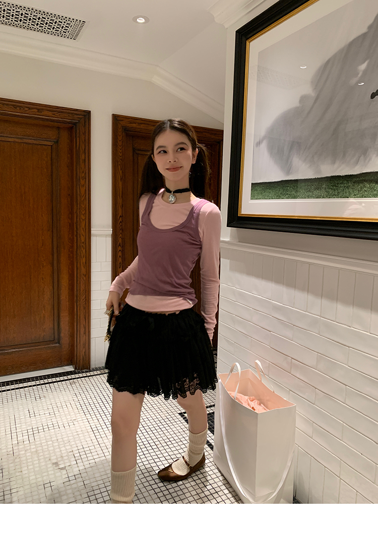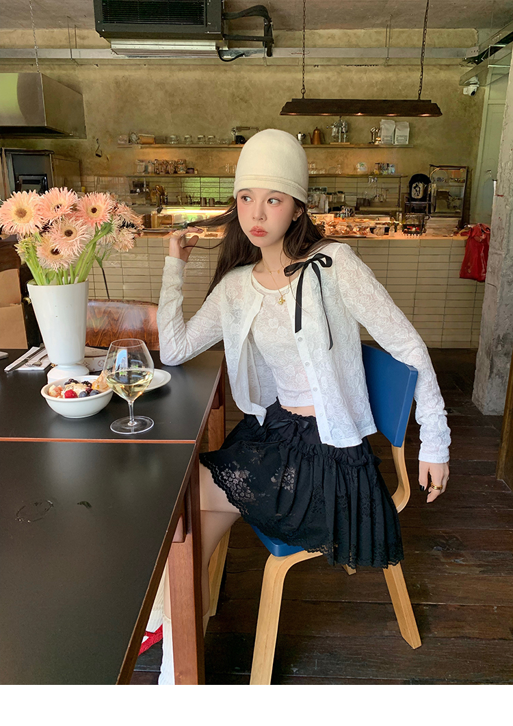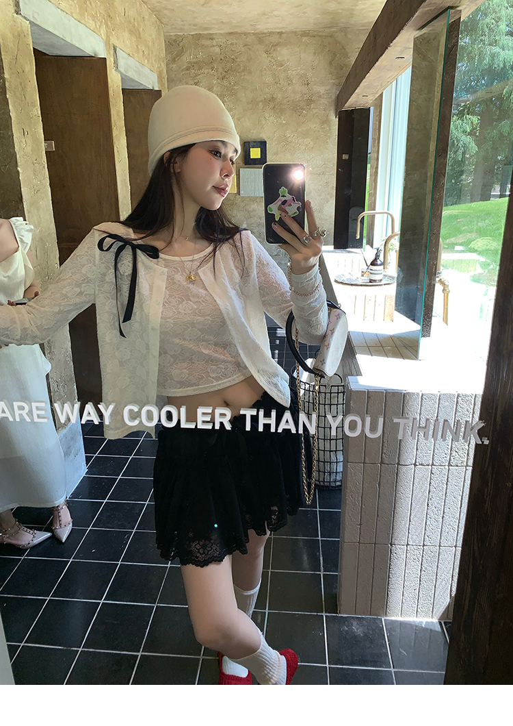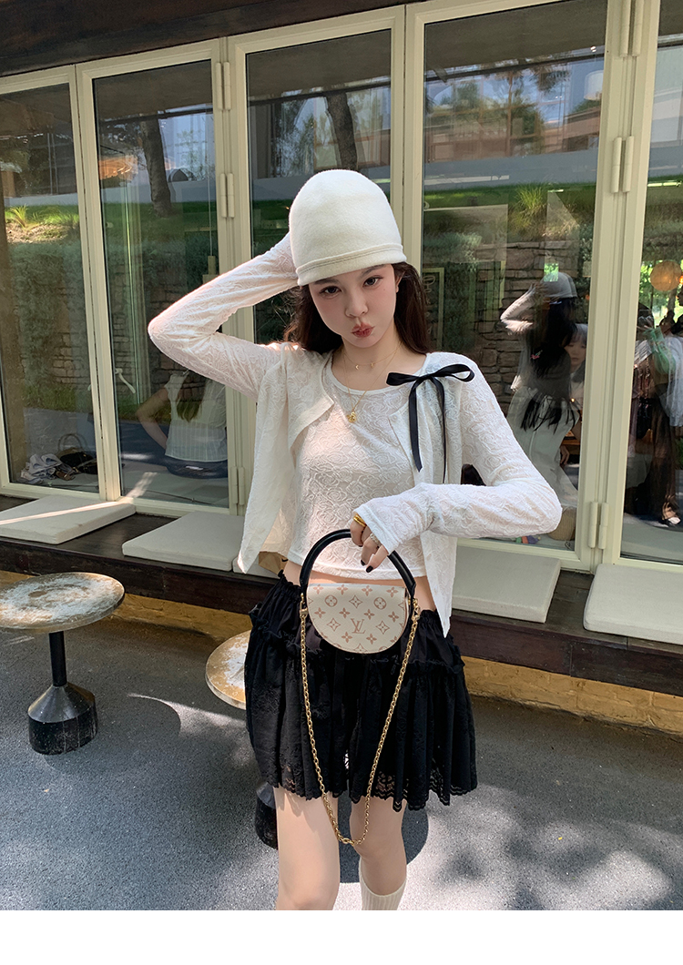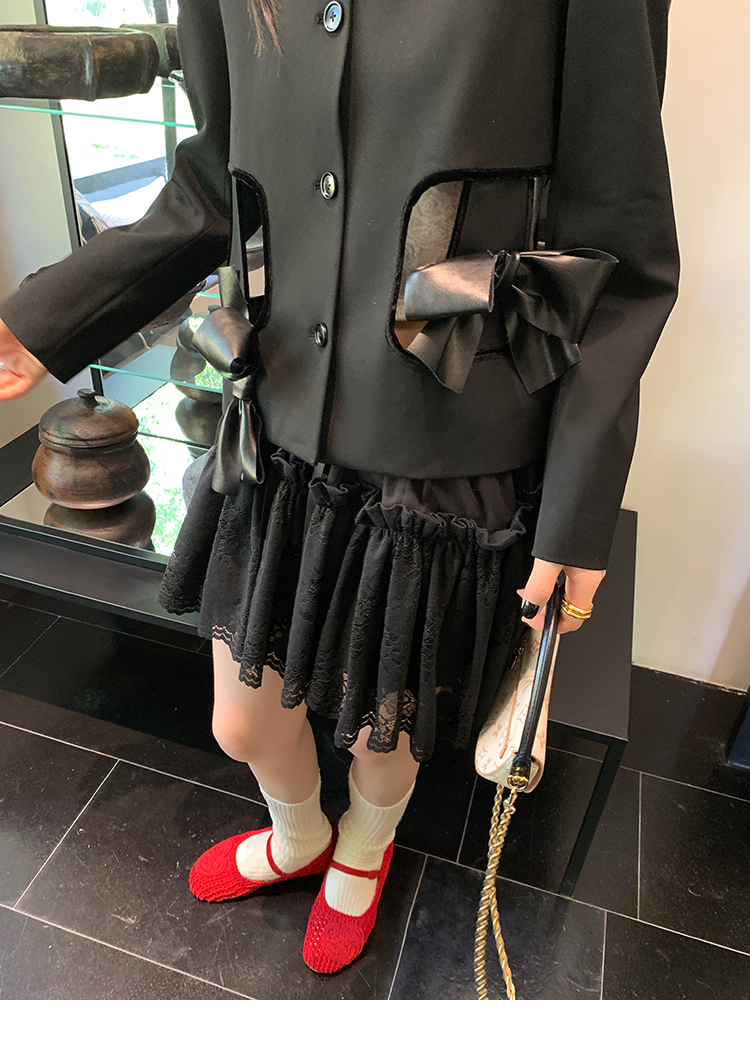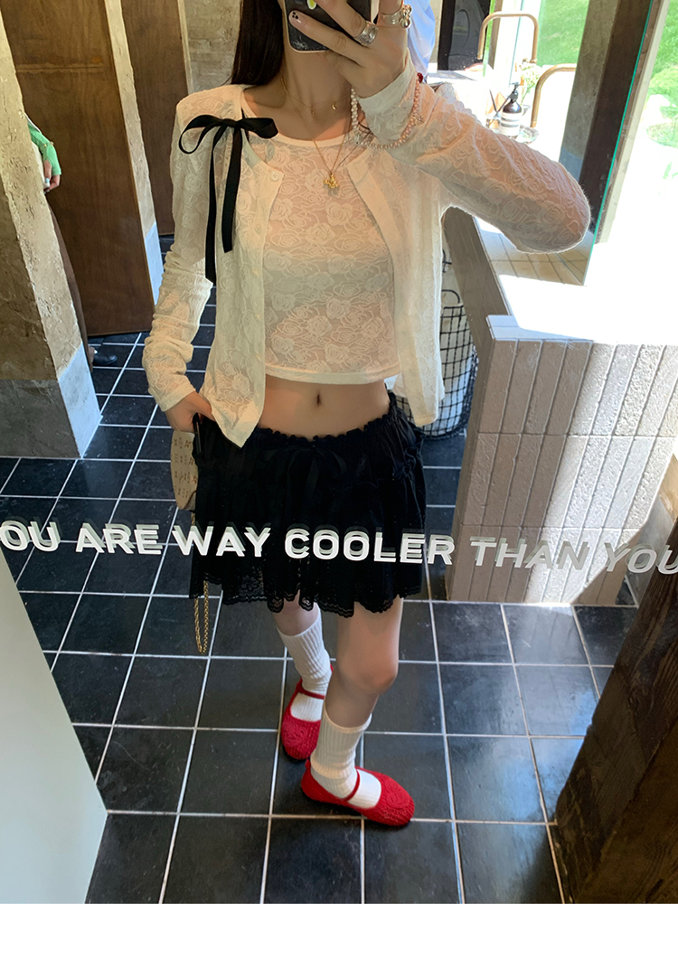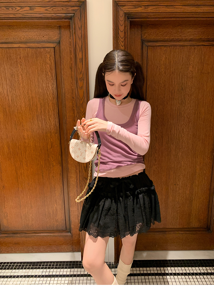 LRIB lace fantasy black pleated splicing hollow yarn elastic skirt