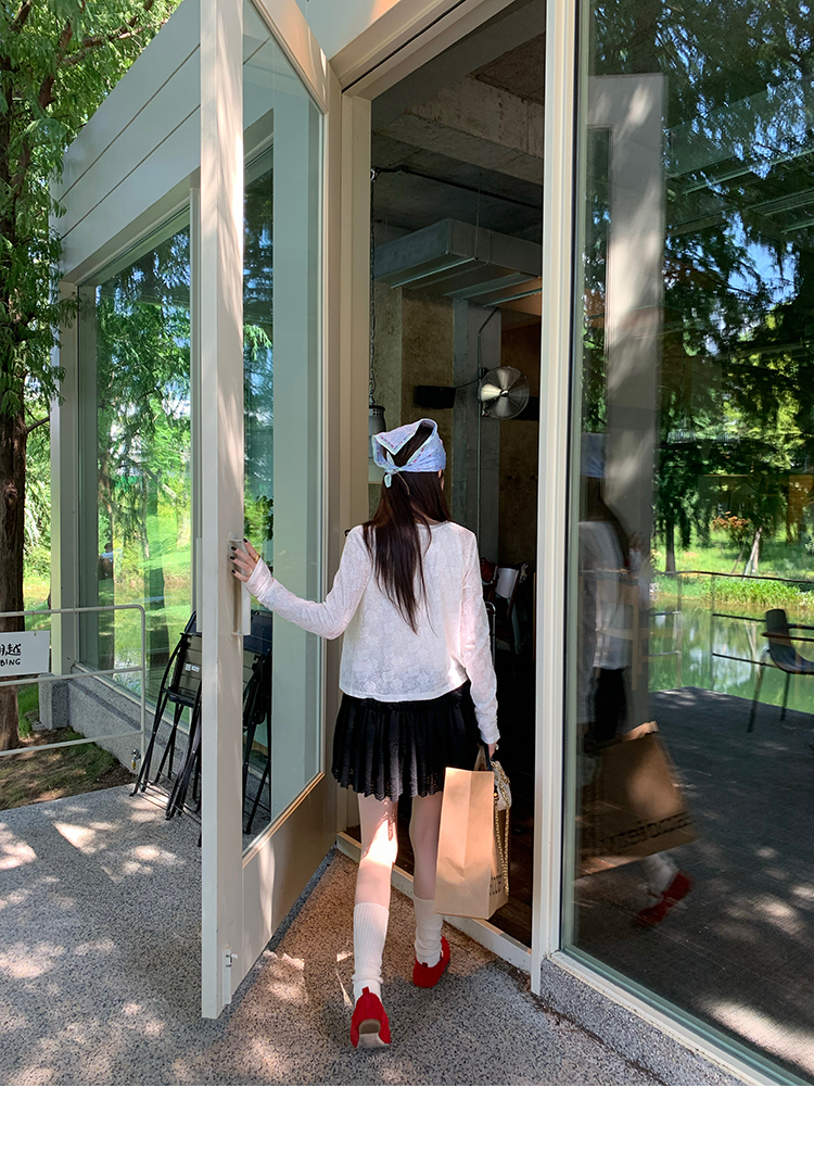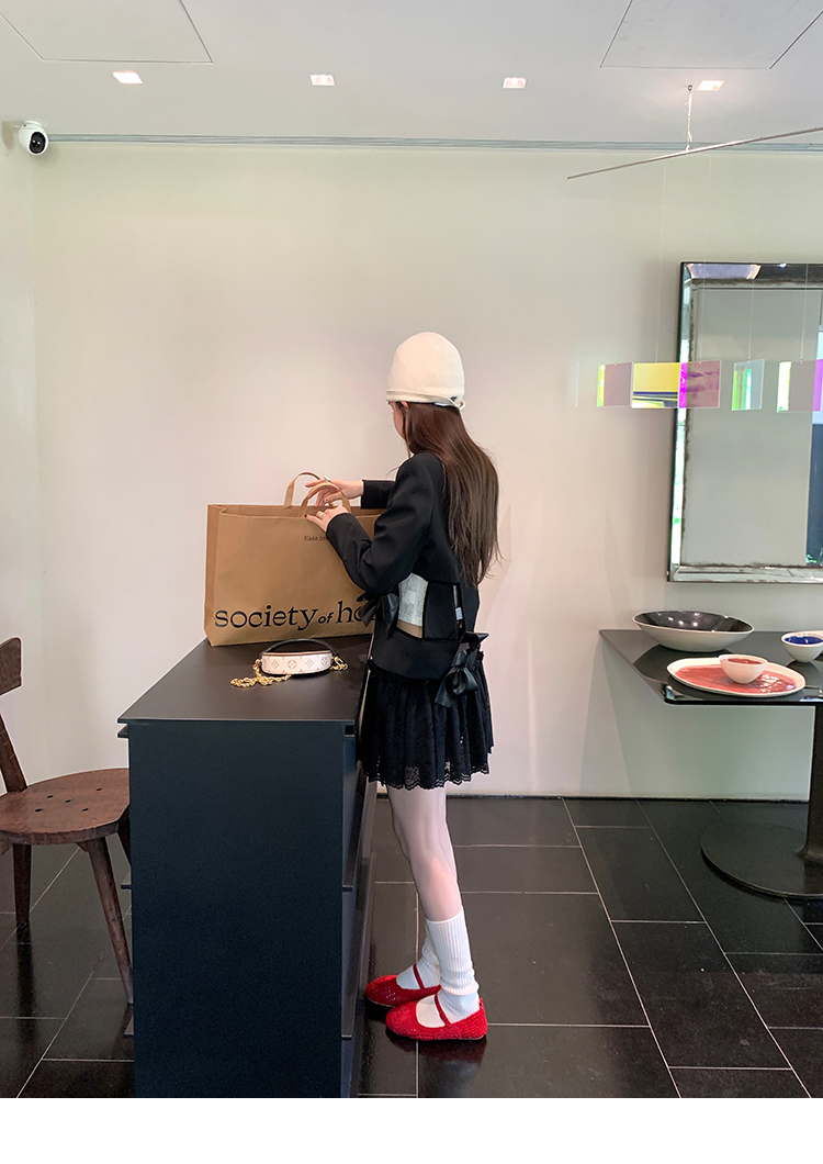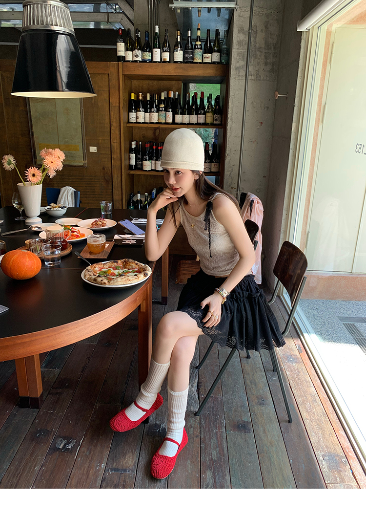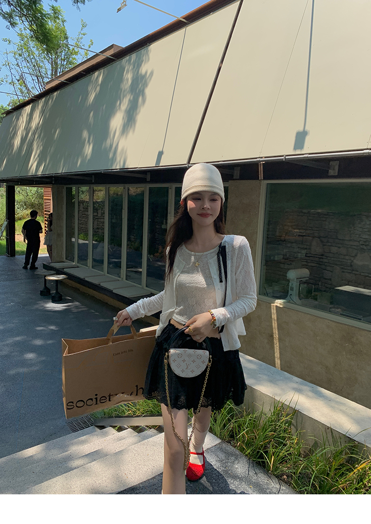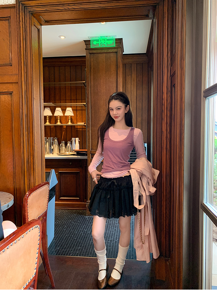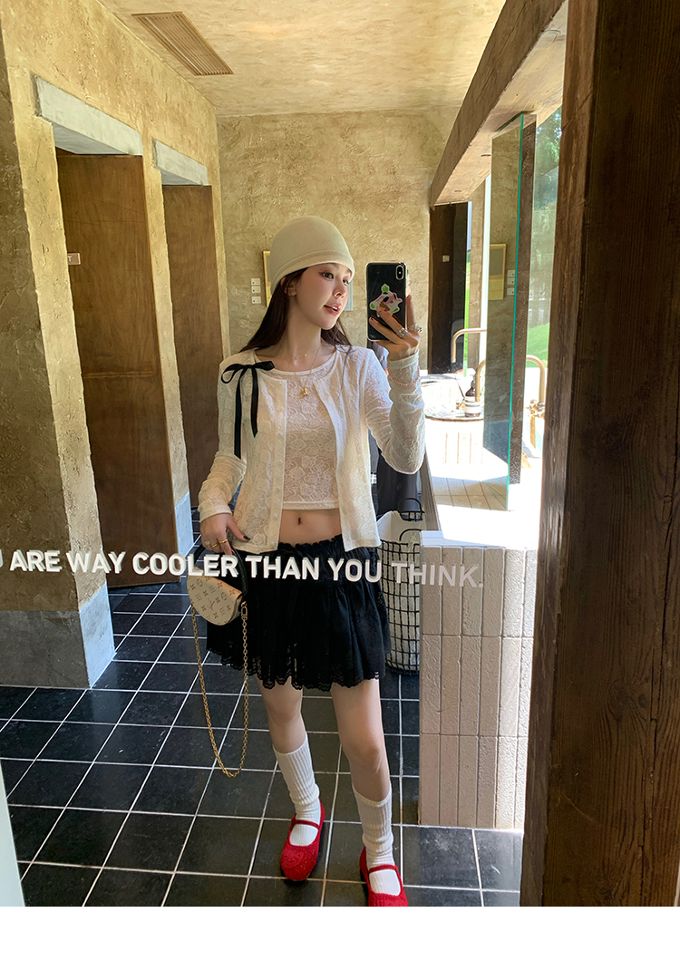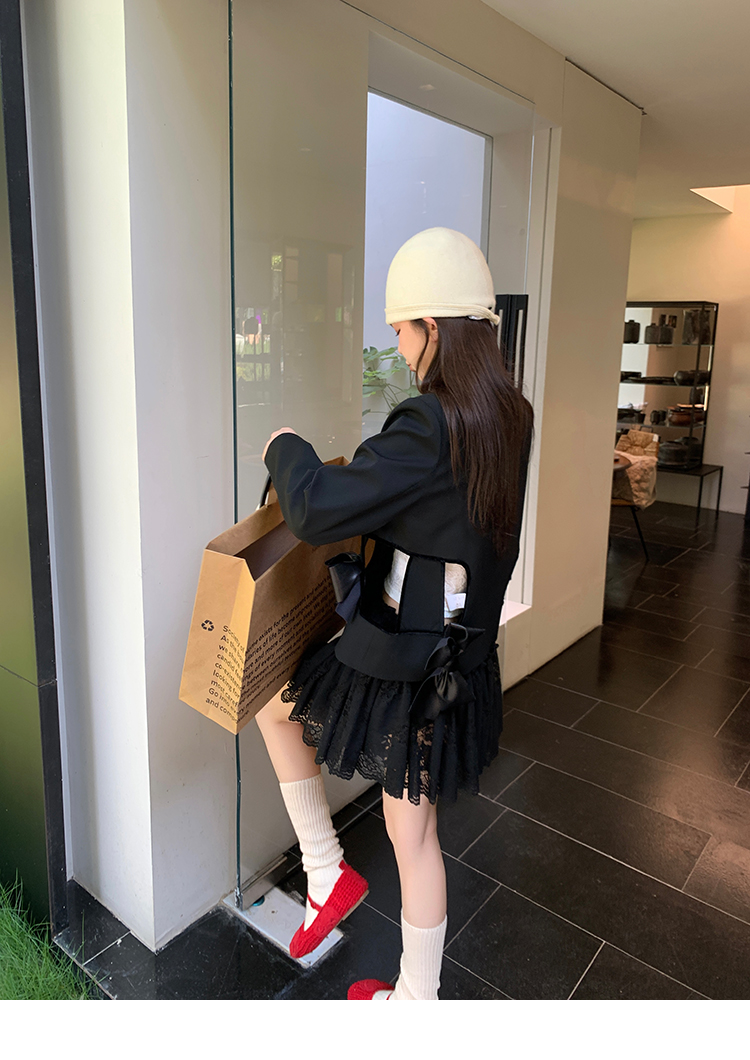 LRIB lace fantasy black pleated splicing hollow yarn elastic skirt