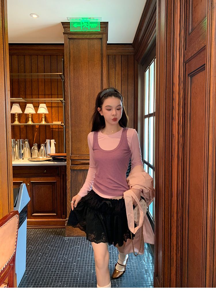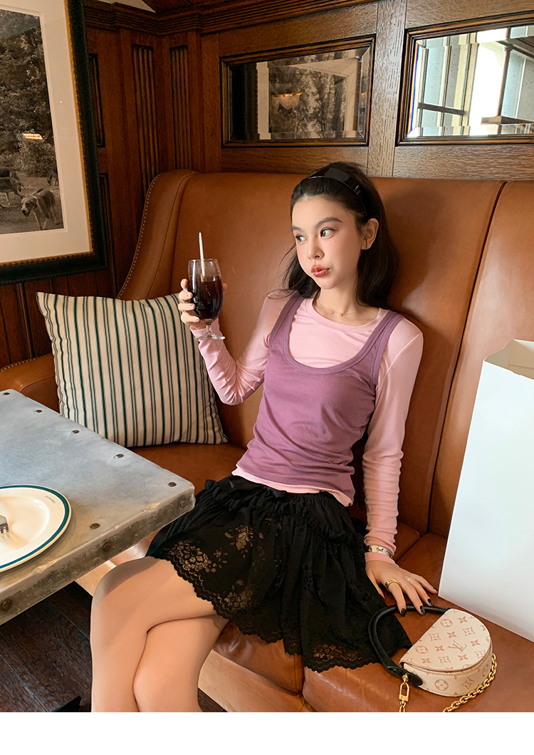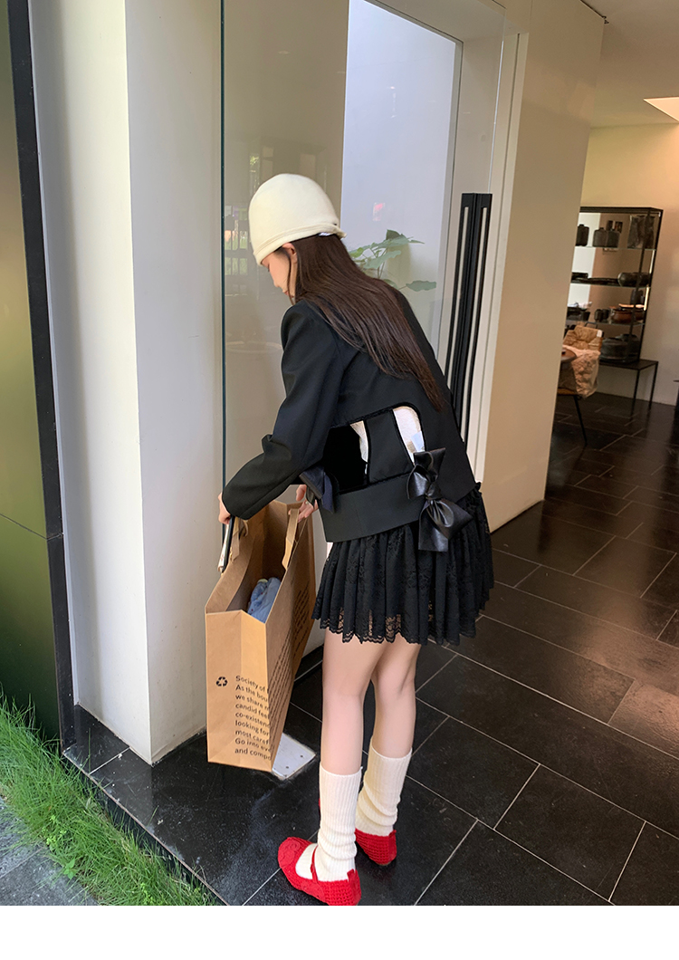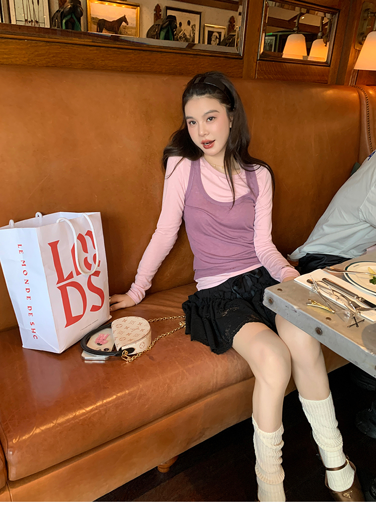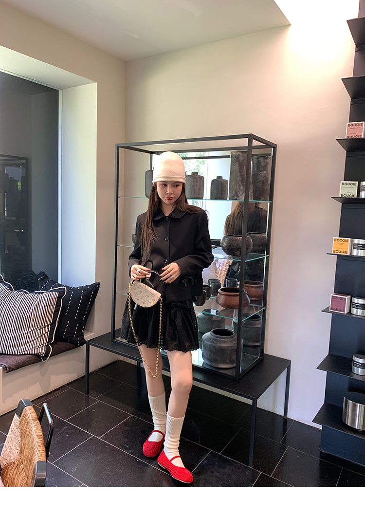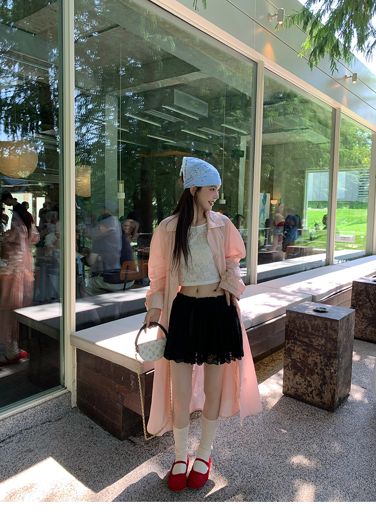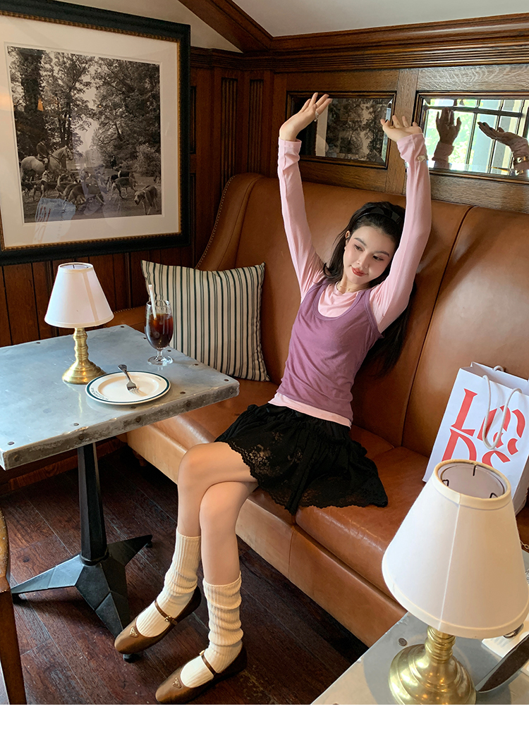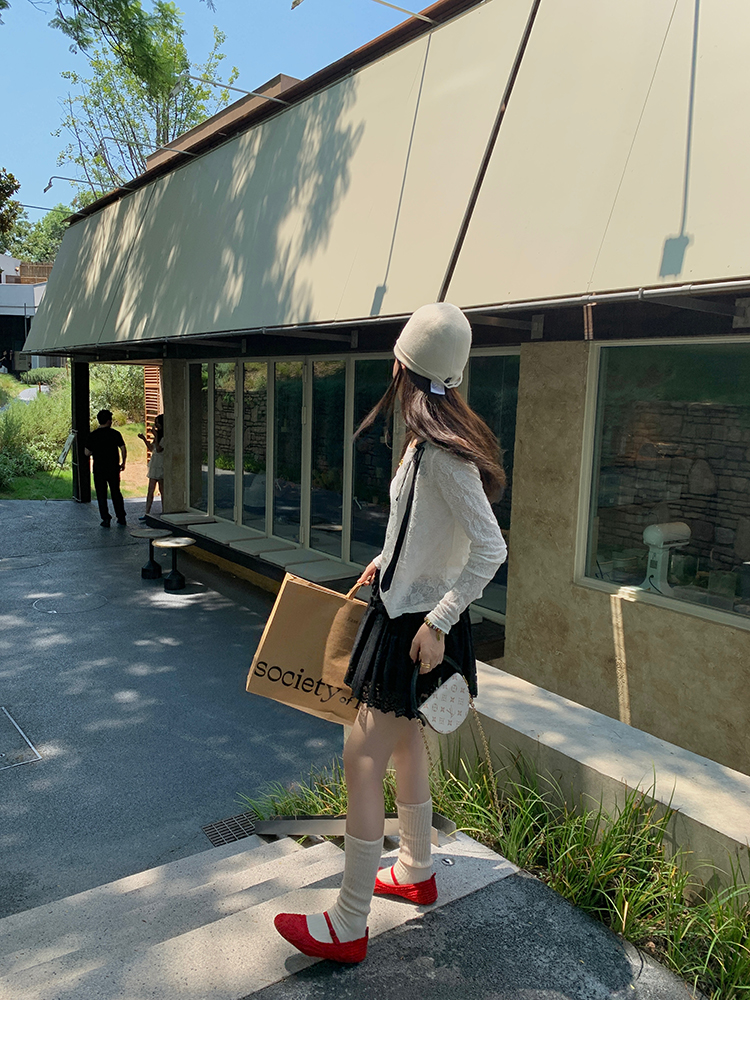 LRIB lace fantasy black pleated splicing hollow yarn elastic skirt