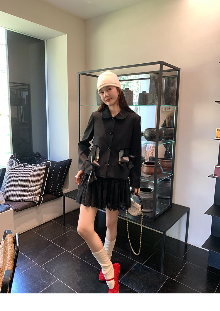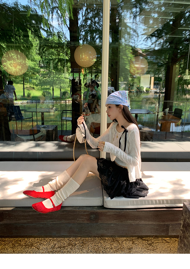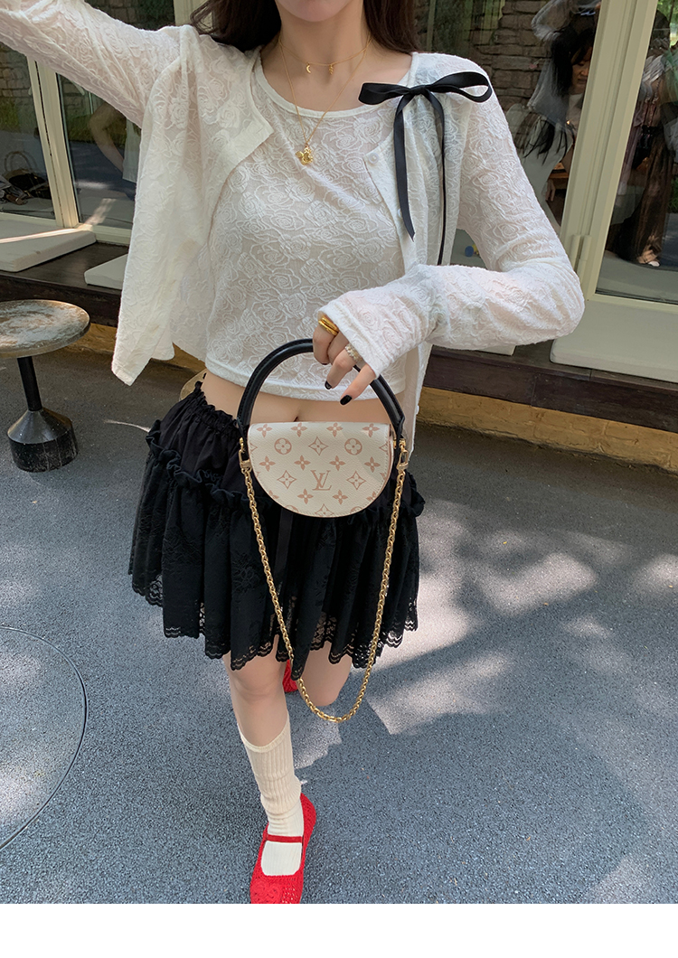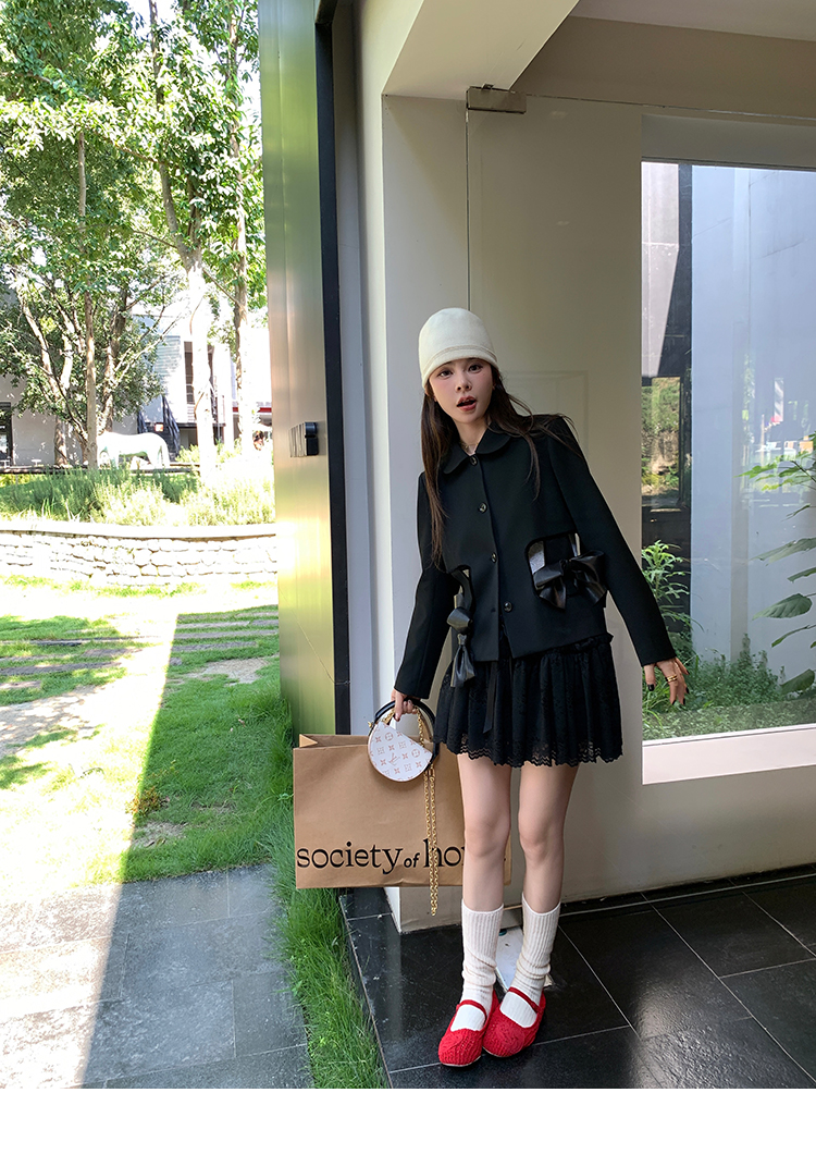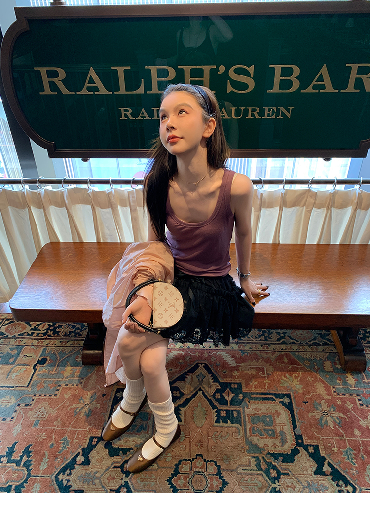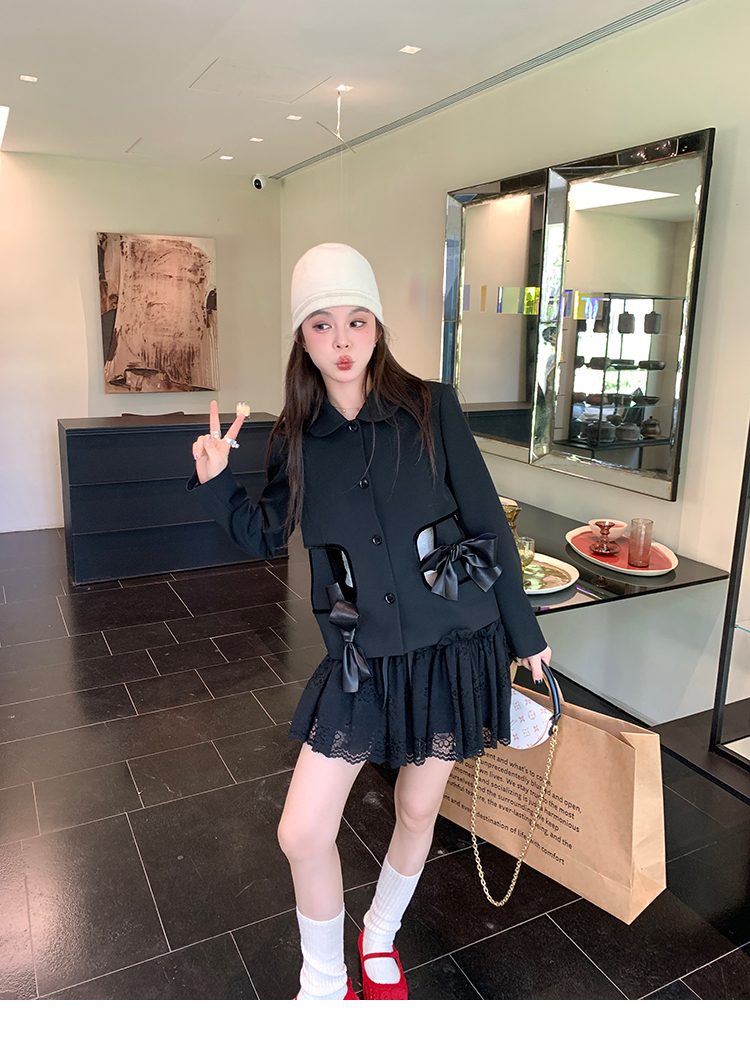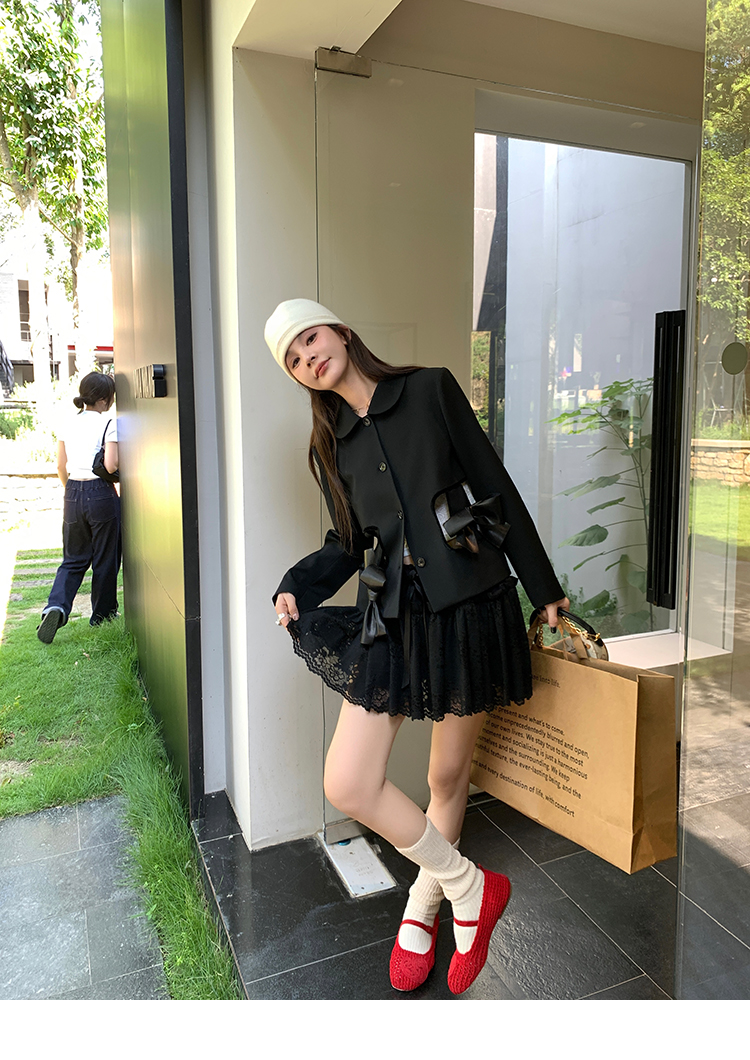 LRIB lace fantasy black pleated splicing hollow yarn elastic skirt