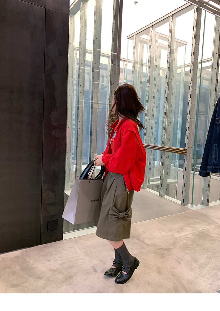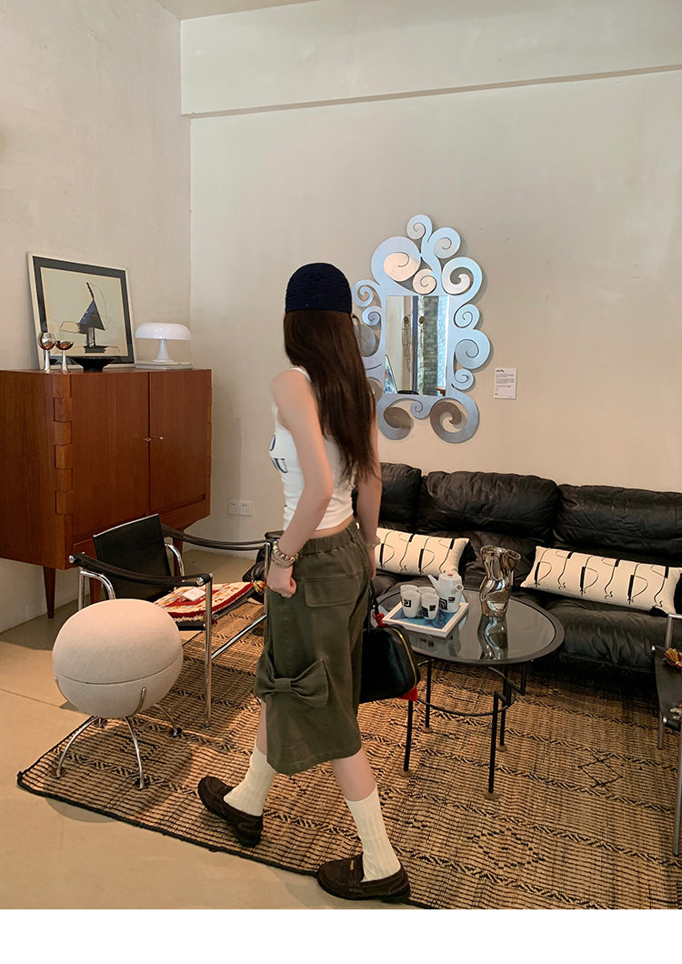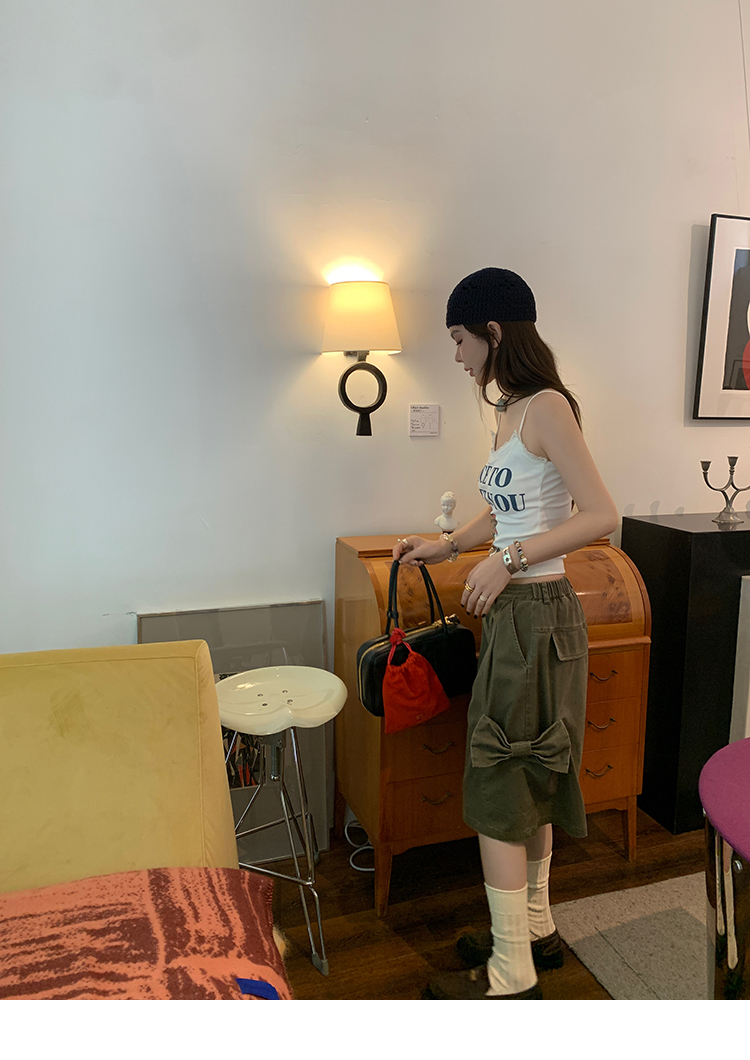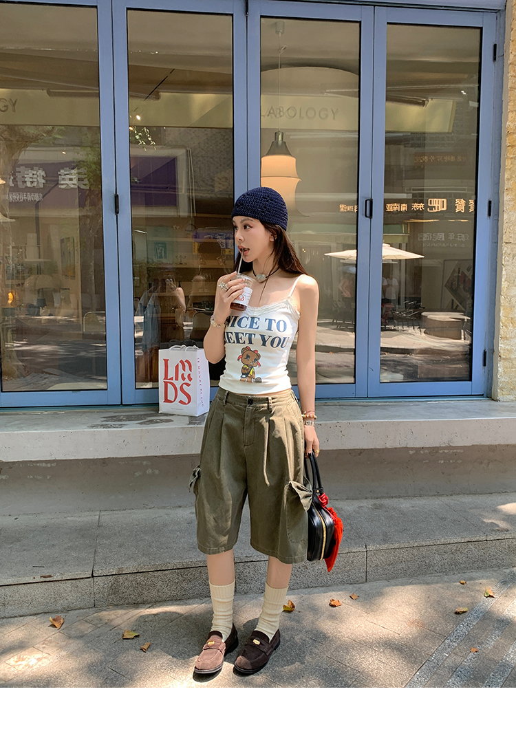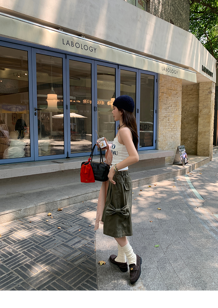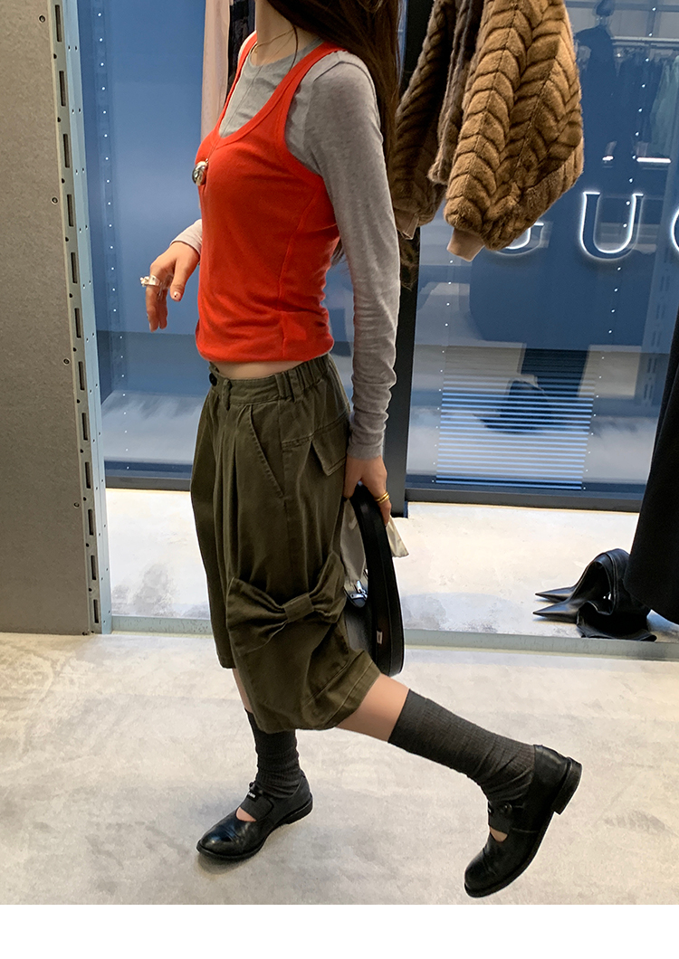 LRIB blogger distressed washed army green bow pocket wide-leg pants