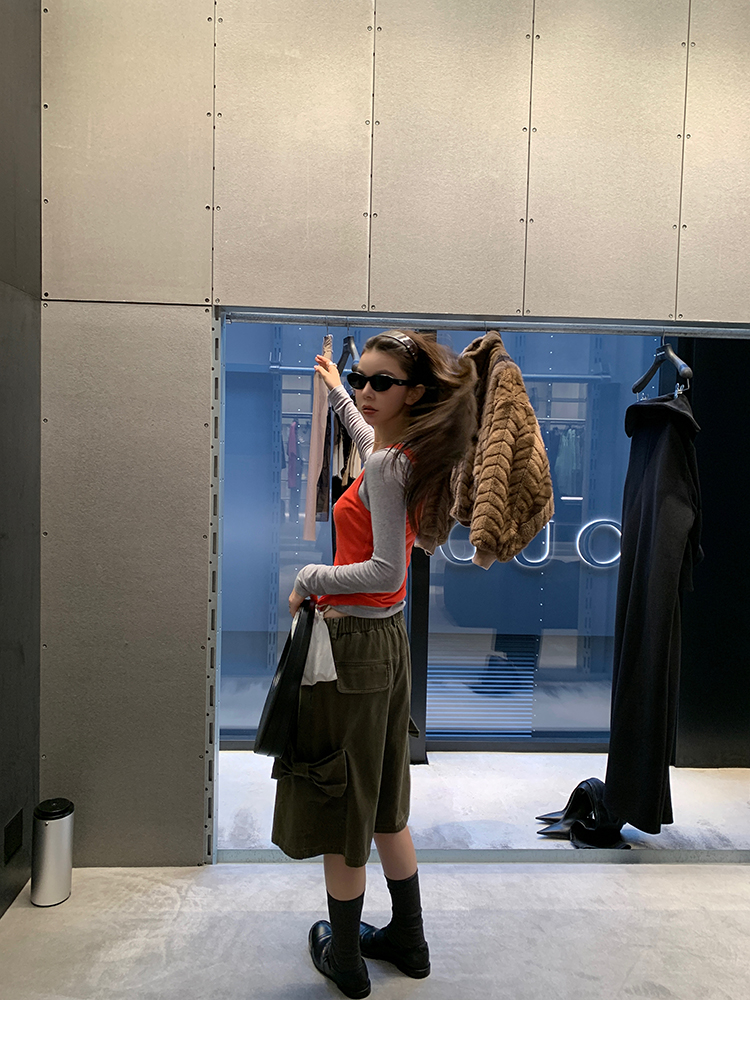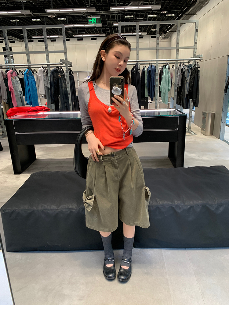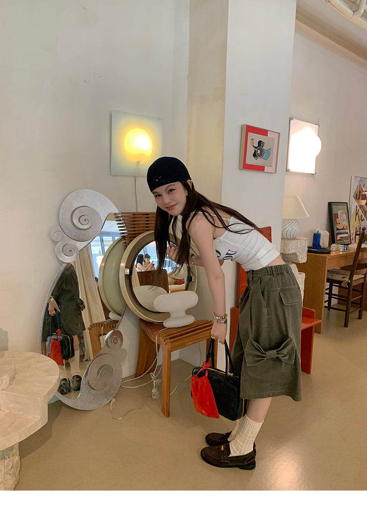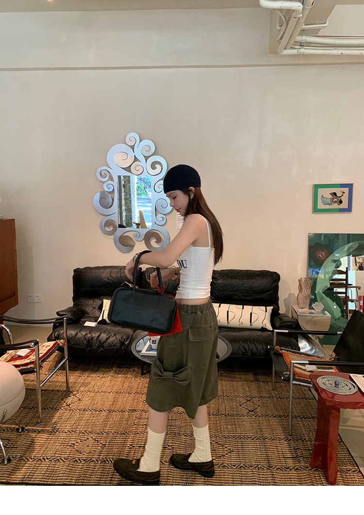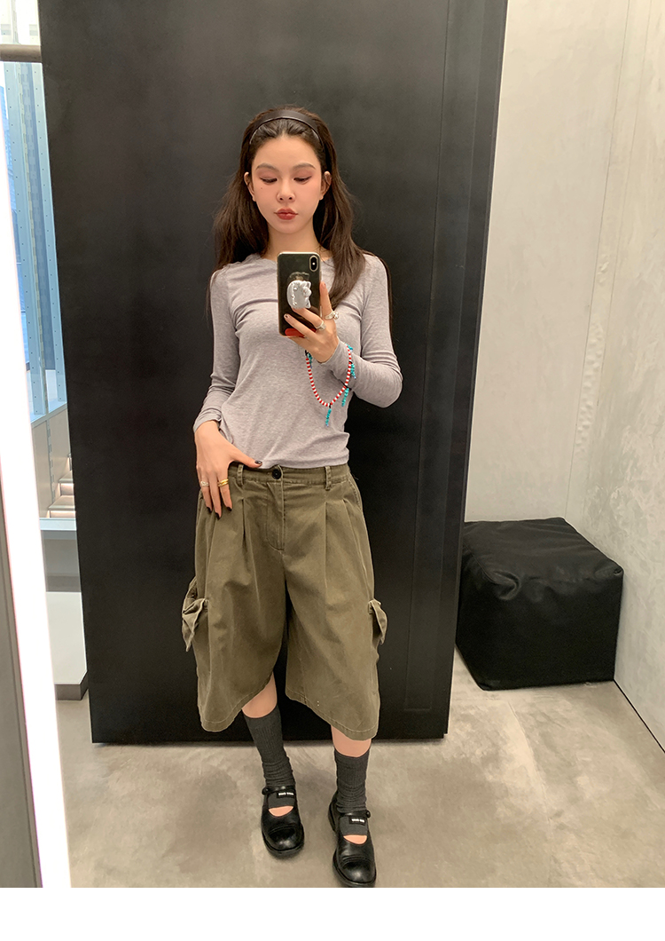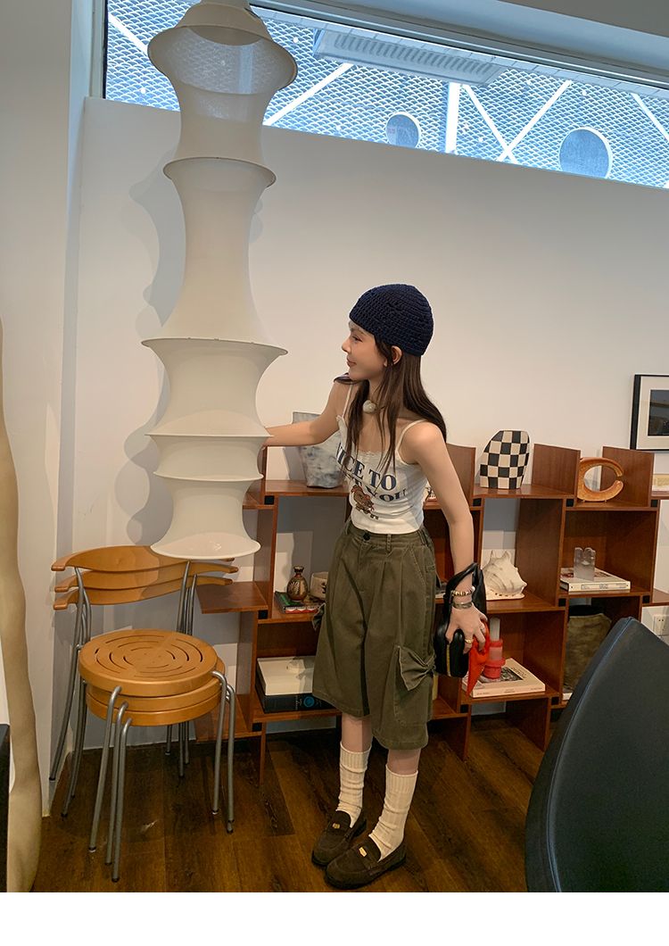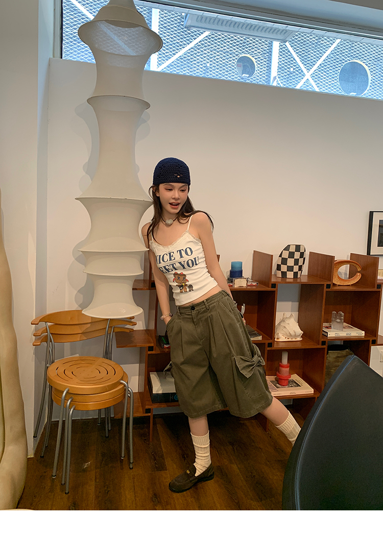 LRIB blogger distressed washed army green bow pocket wide-leg pants
