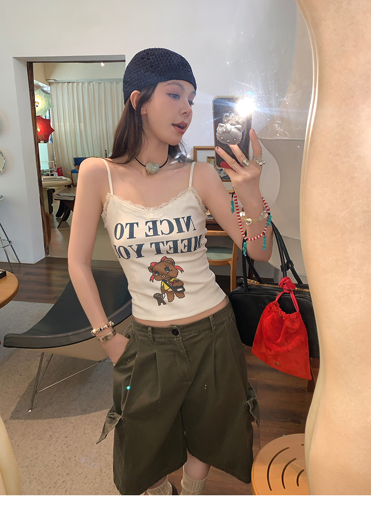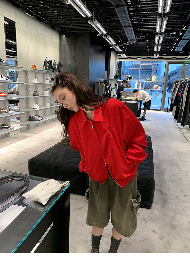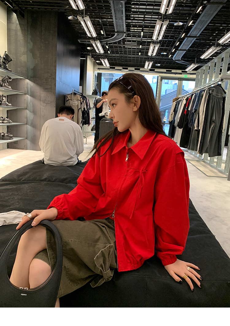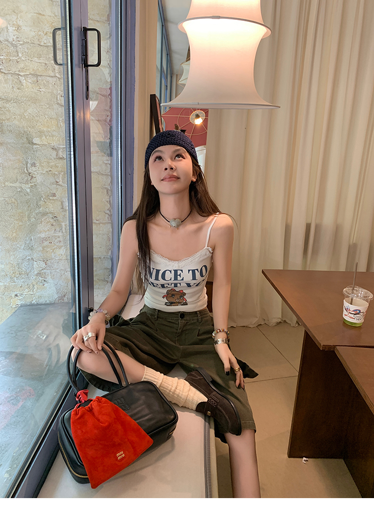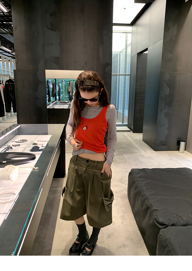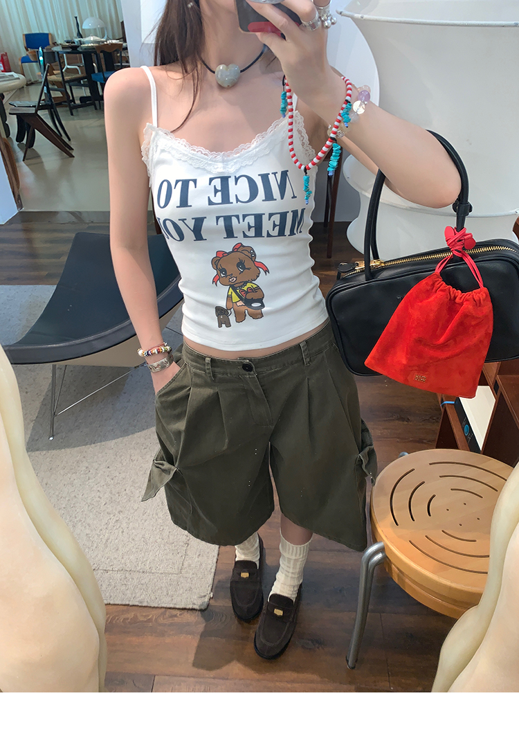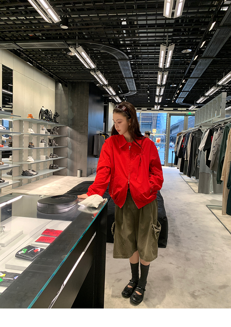 LRIB blogger distressed washed army green bow pocket wide-leg pants
