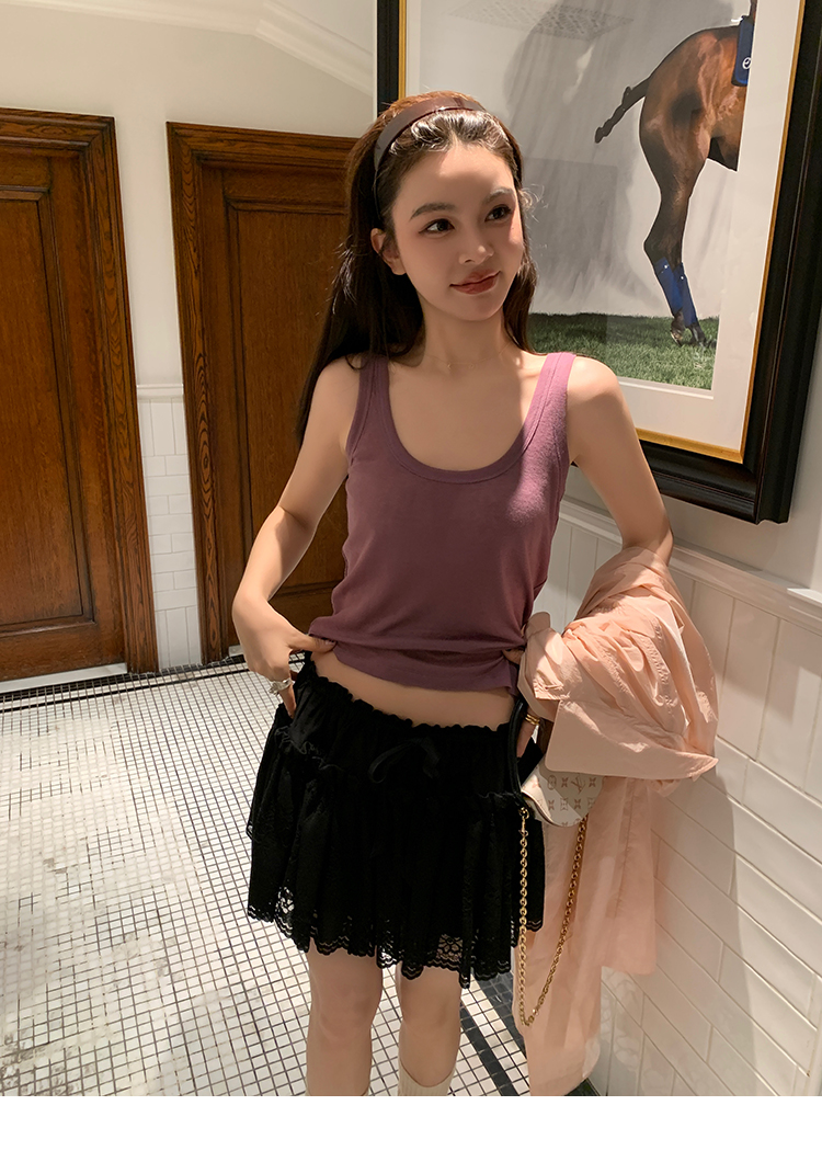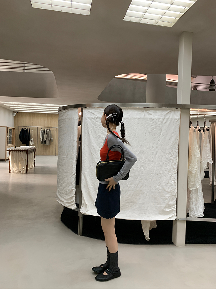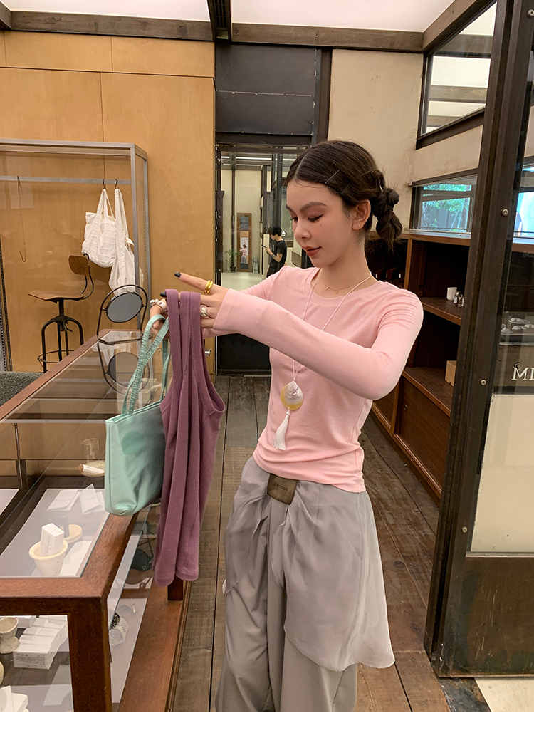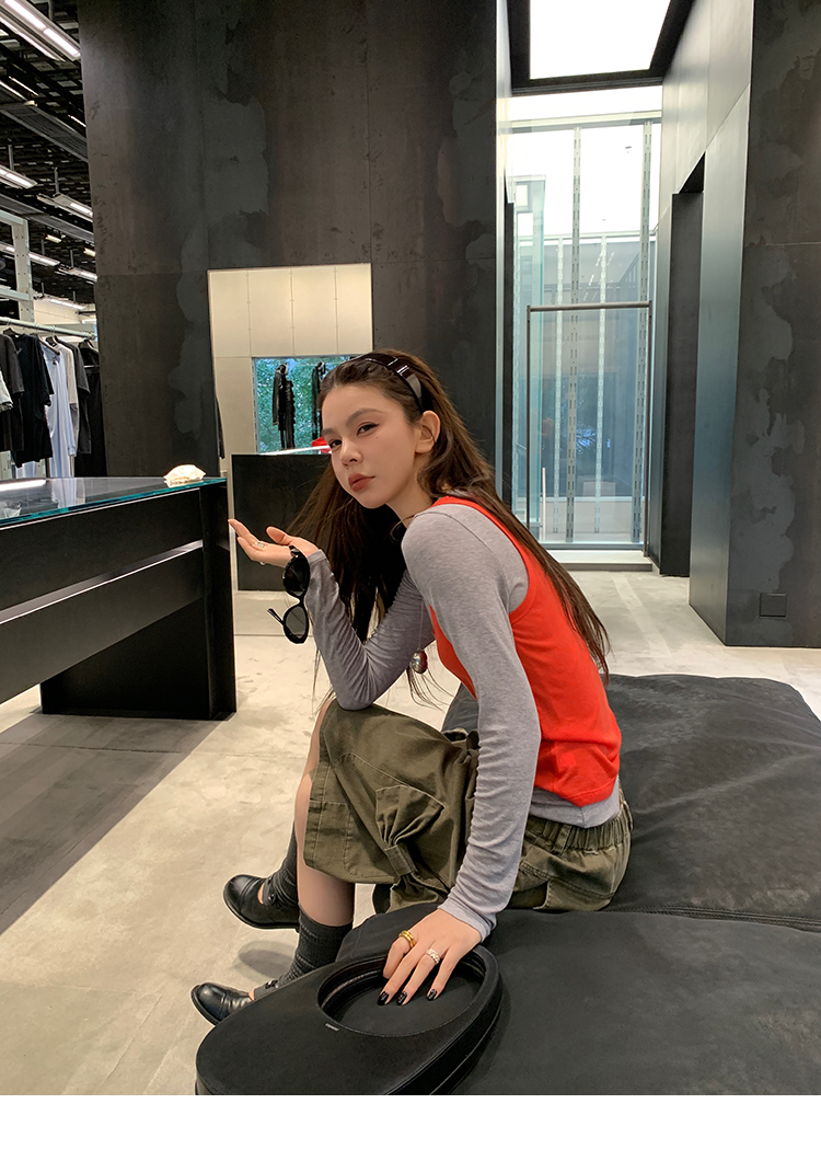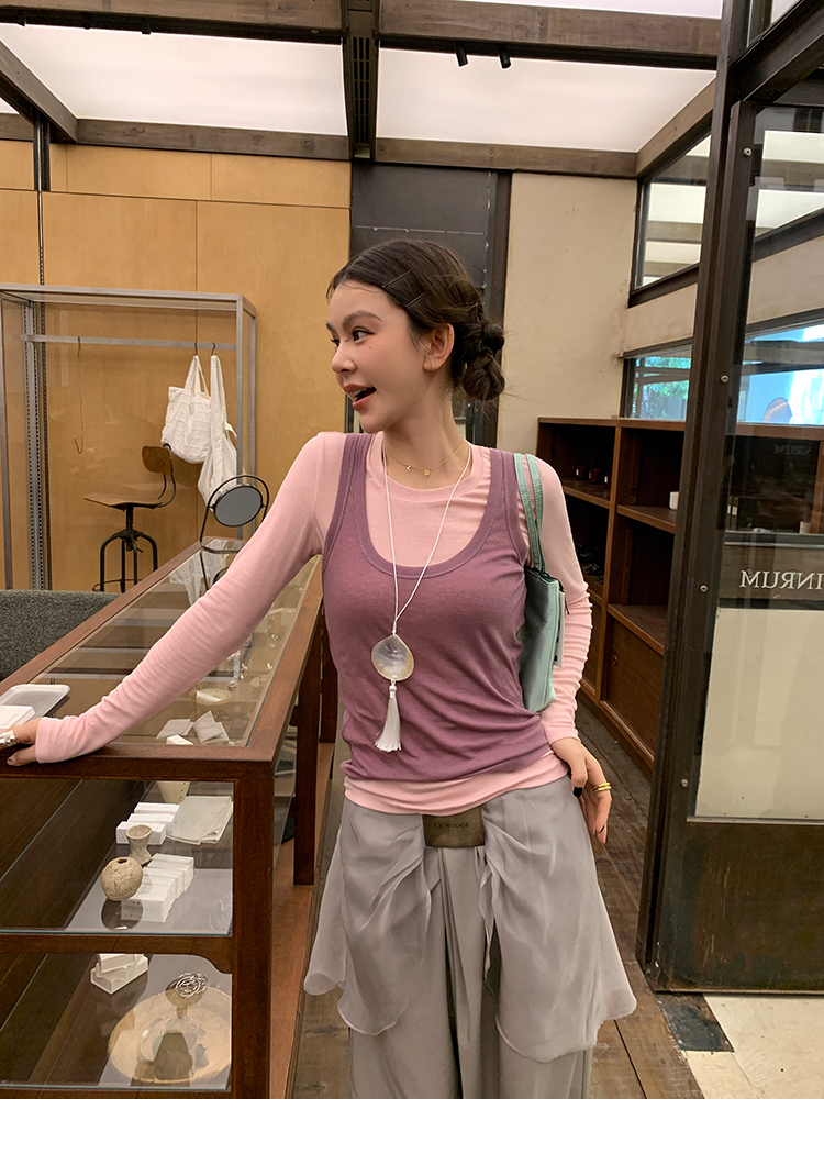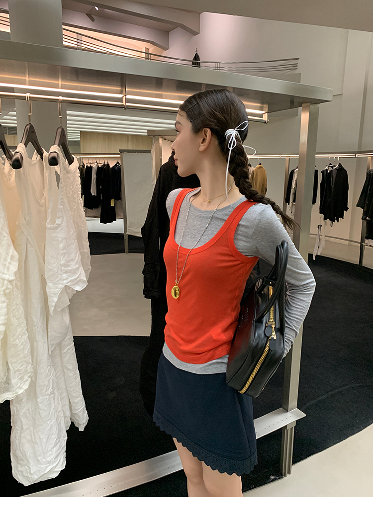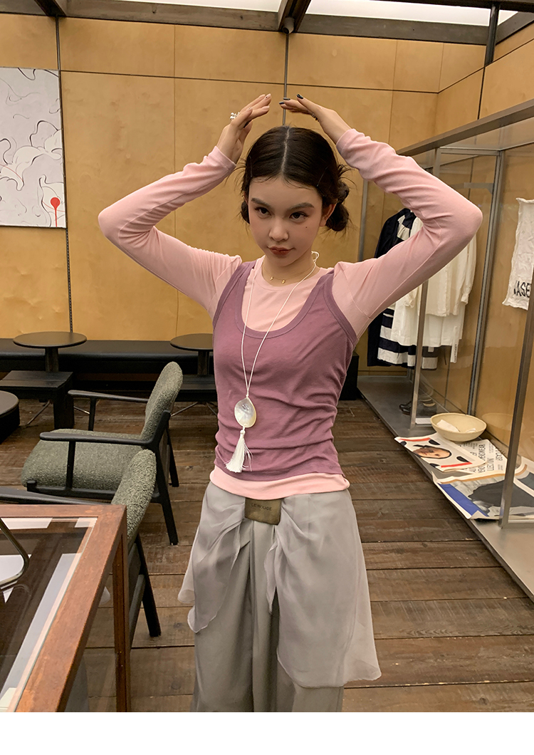 LRIB round-neck lyocell wool contrasting color layered bottoming two-piece top