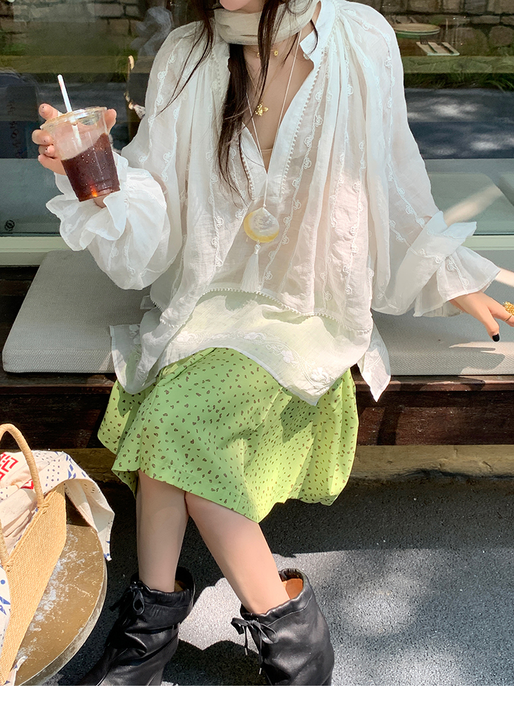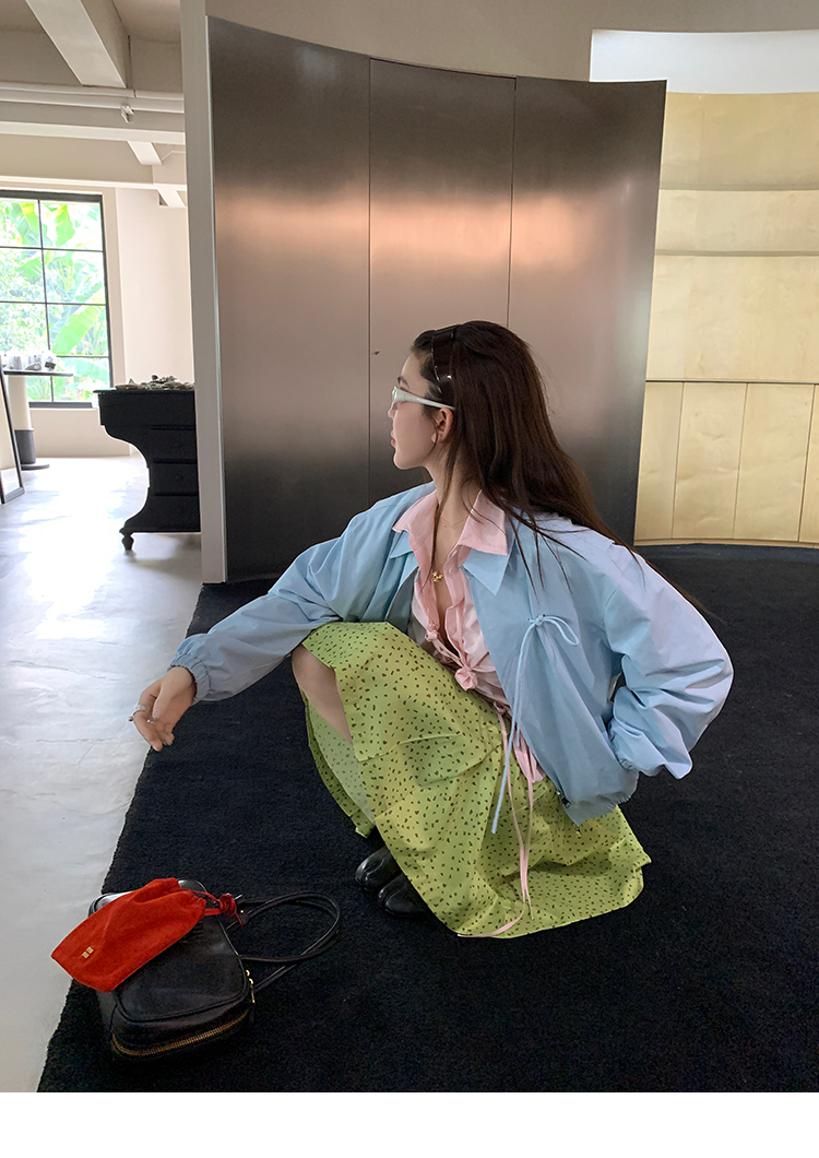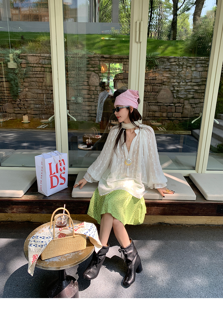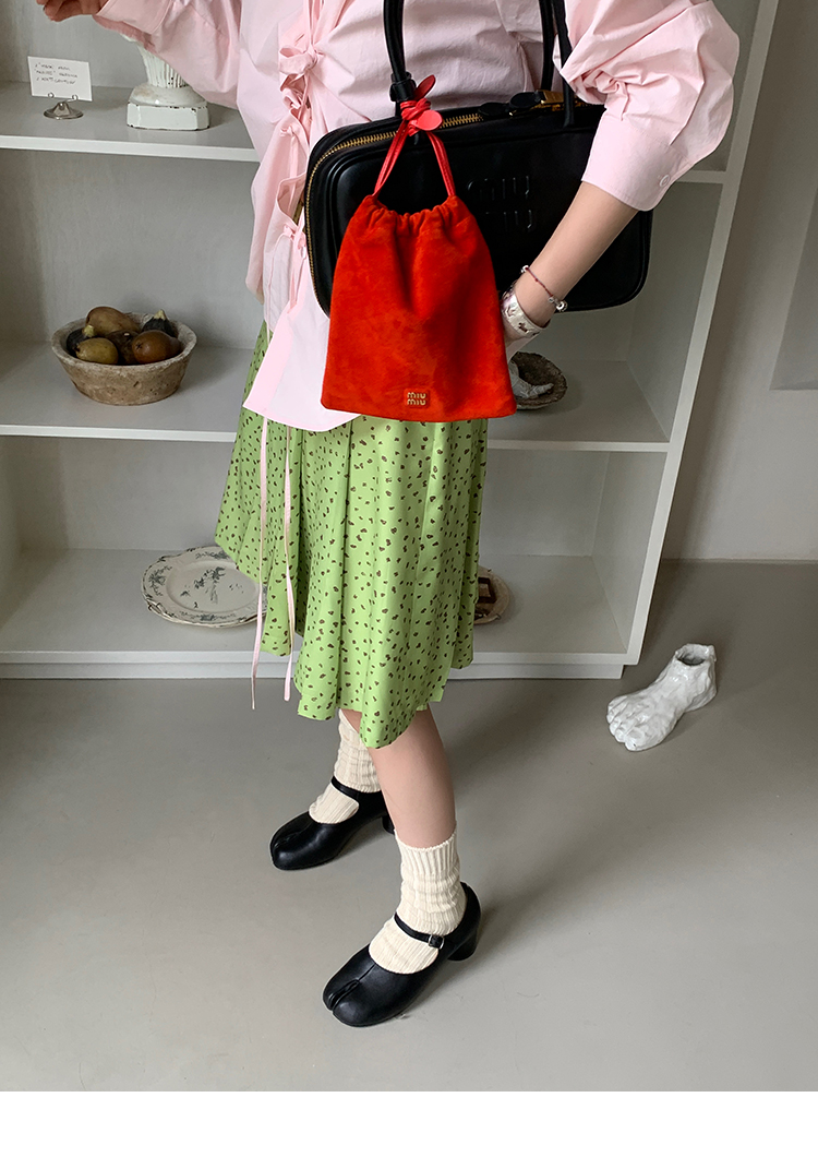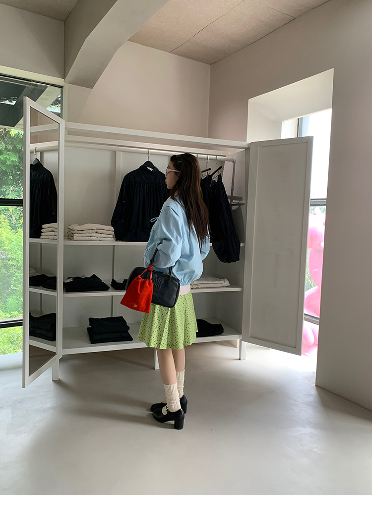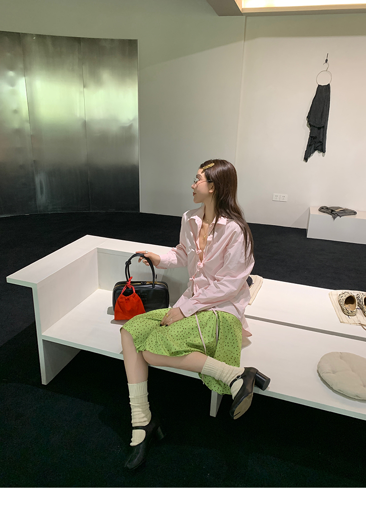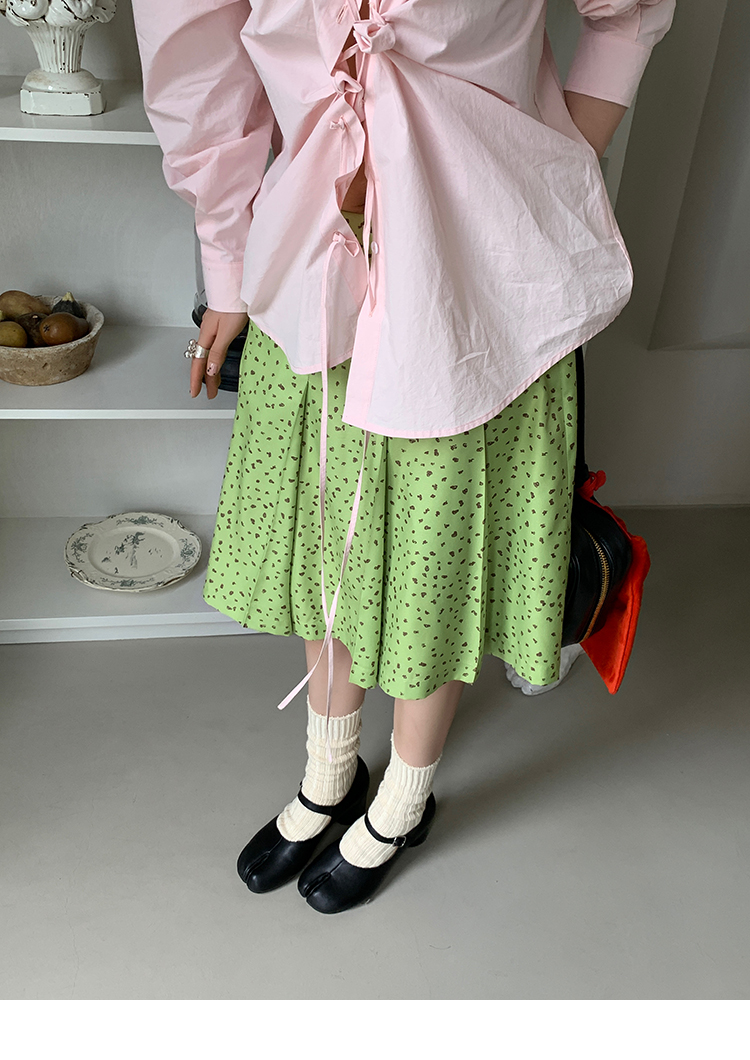LRIB sweet lime fruit green small polka dot pleated midi skirt
