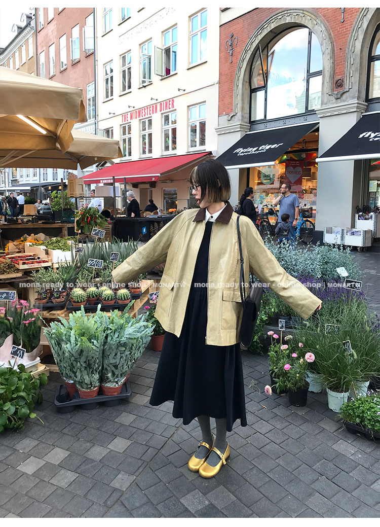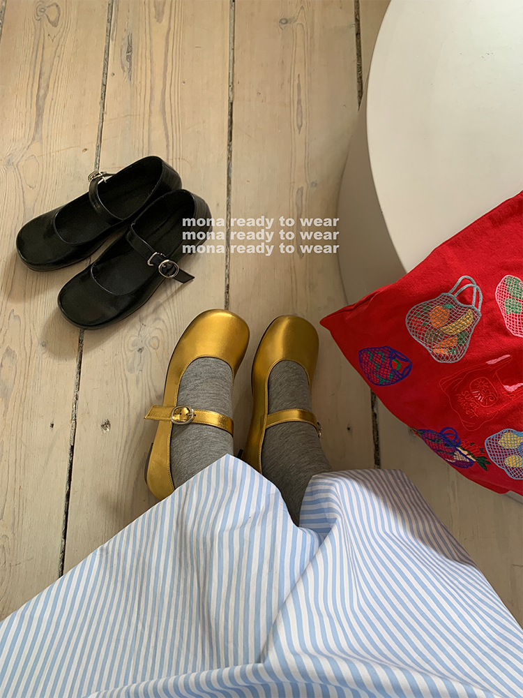 MONARTW gold and black Mary Jane round-toe leather shoes