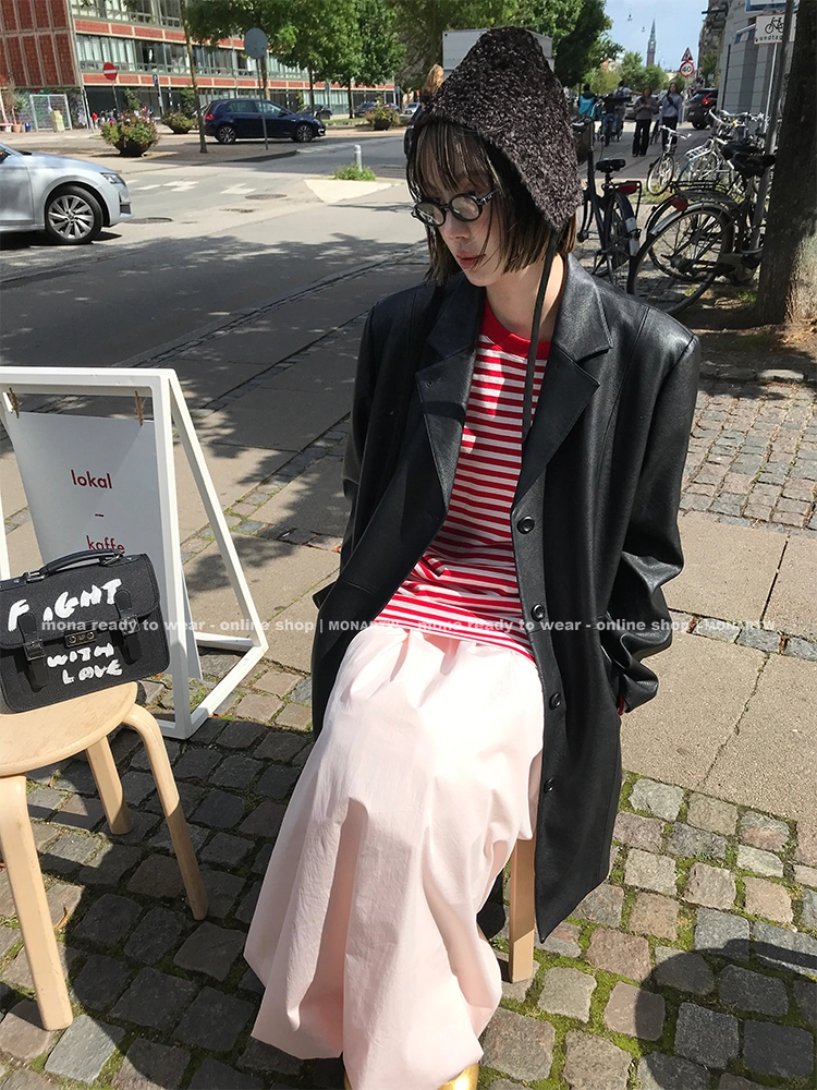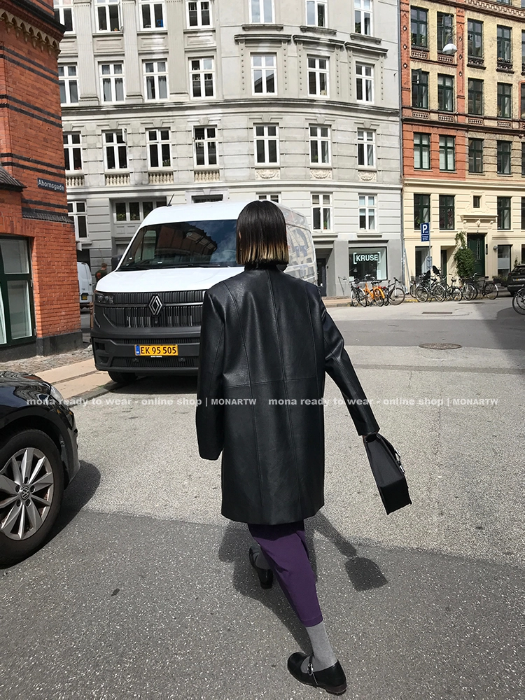 MONARTW Simple Mid-Length PU Leather Jacket