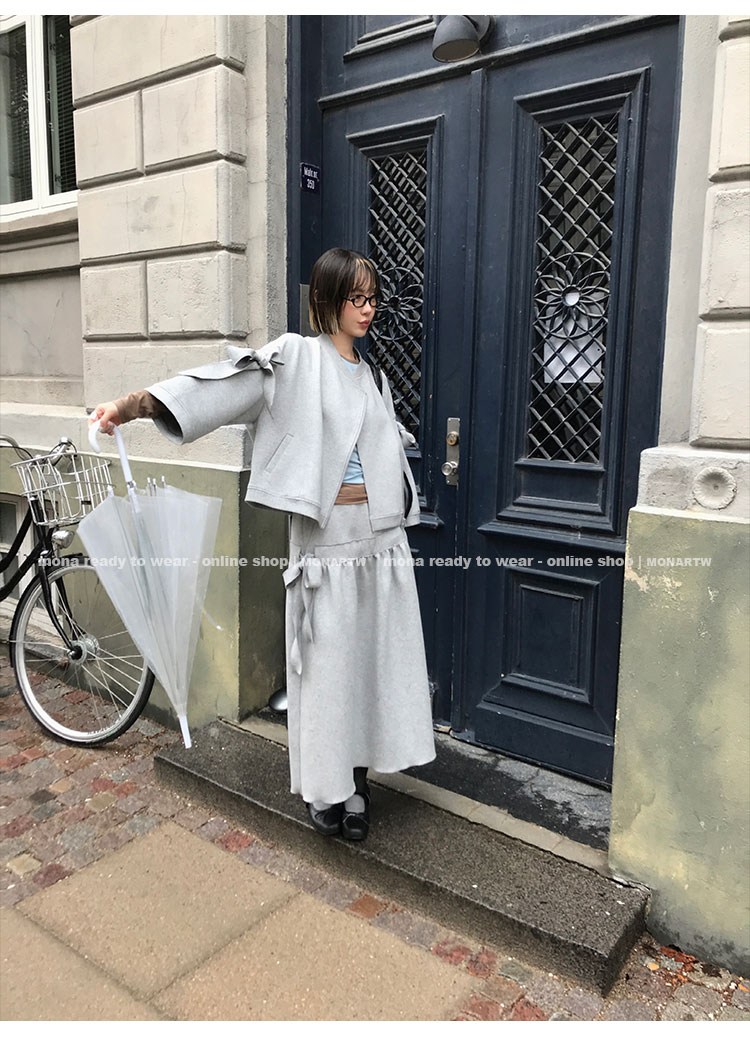 MONARTW asymmetrical jacket and mid-waist skirt set