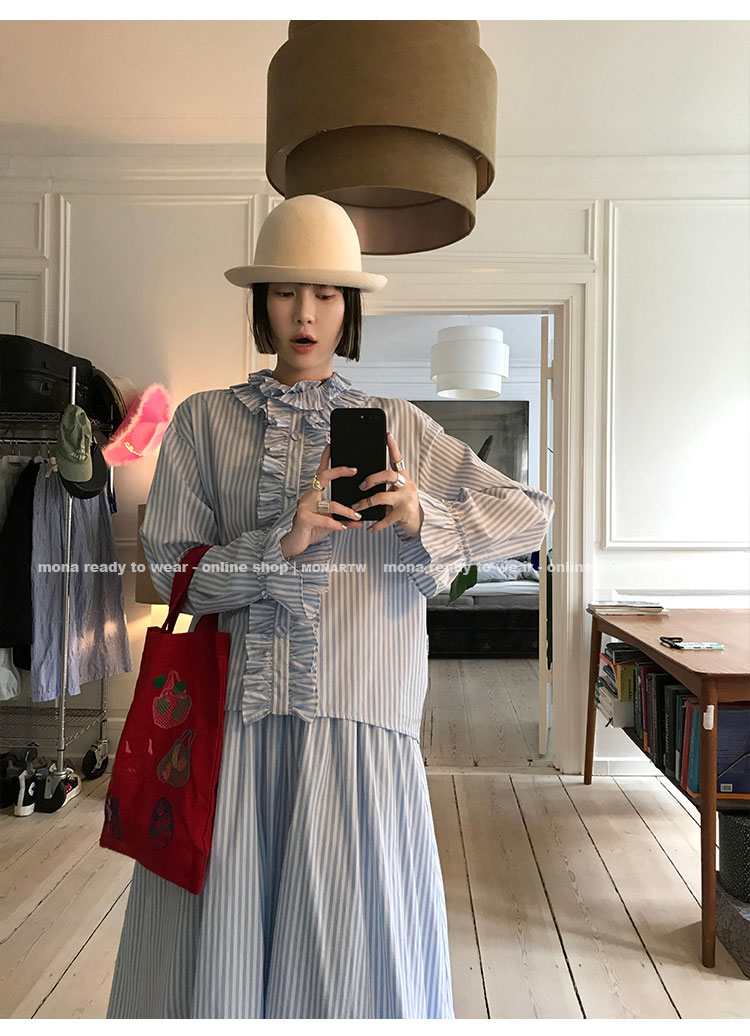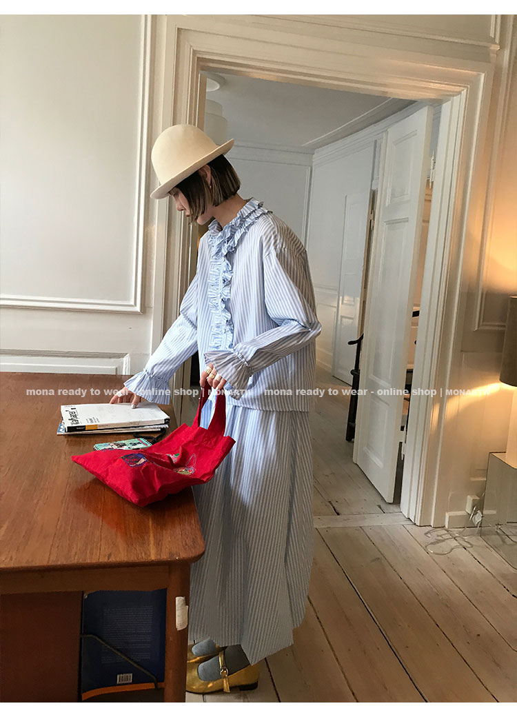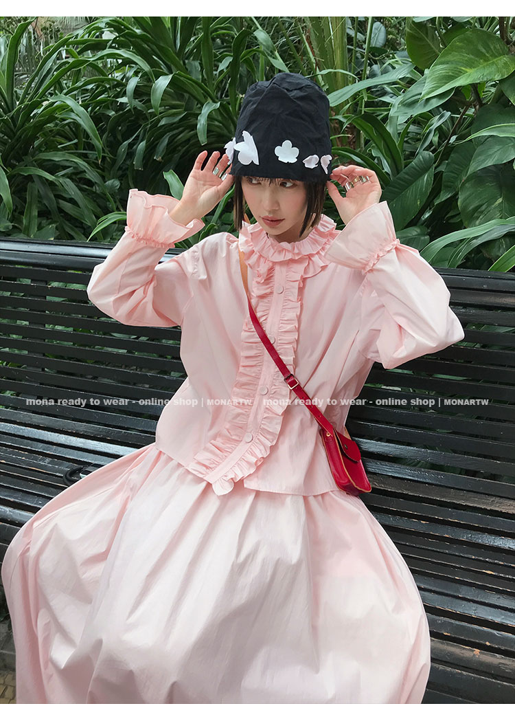 MONARTW Sweet Shirt Flower Bud High Waist Skirt set
