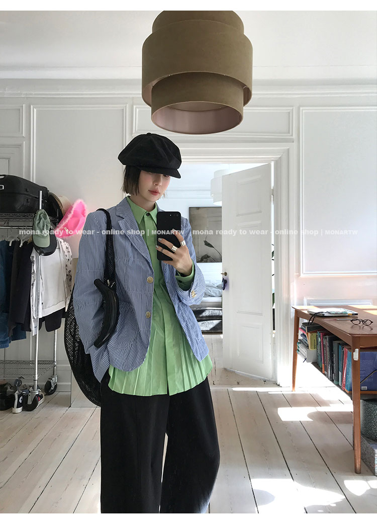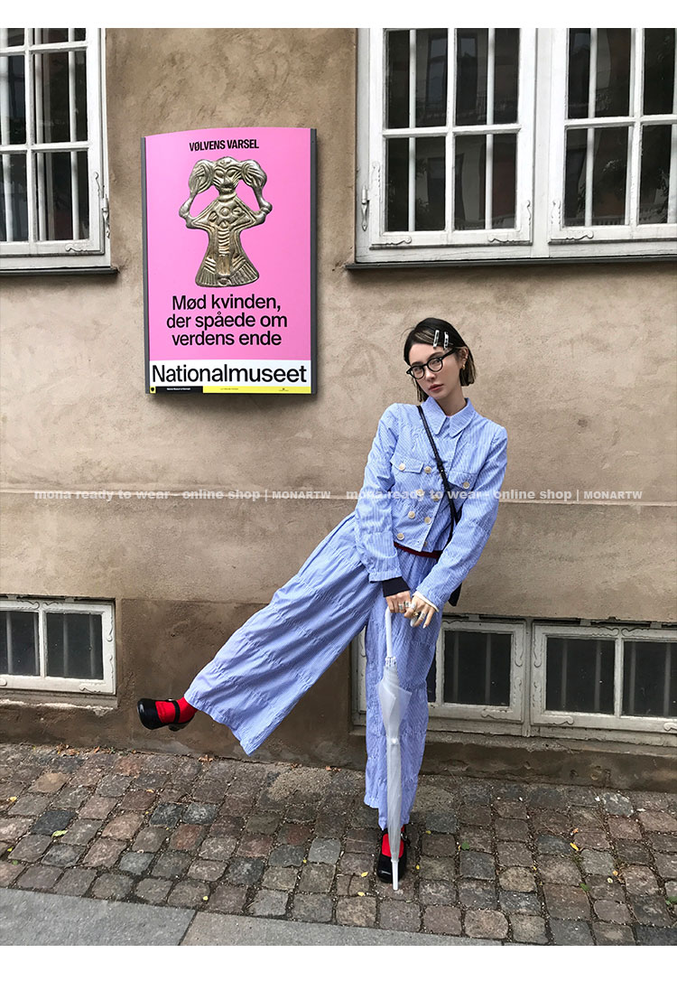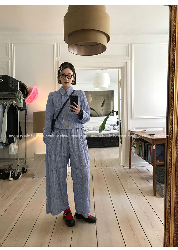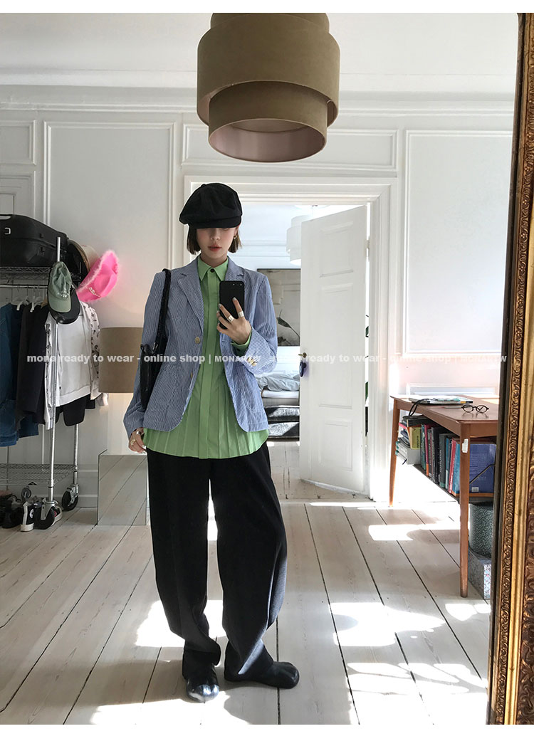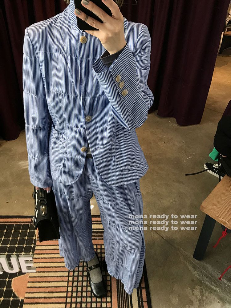 MONARTW retro jacket waist-cinching mid-rise pants set