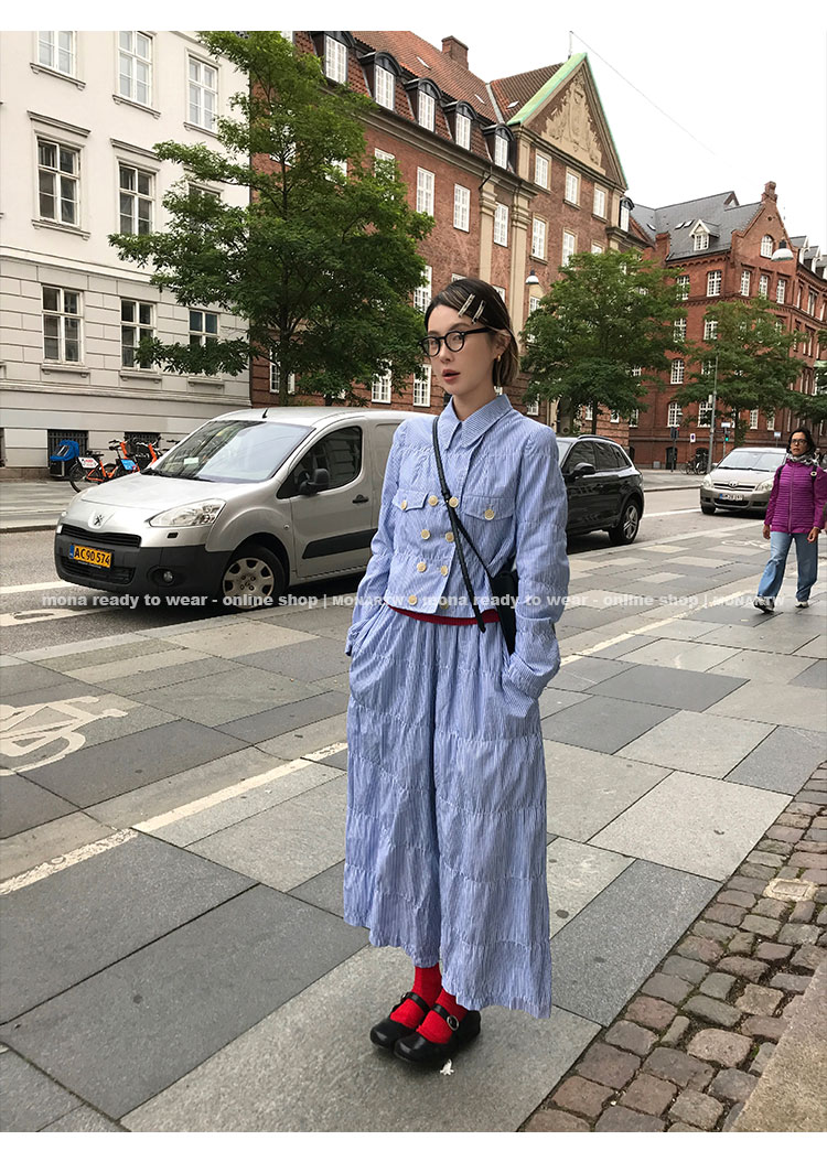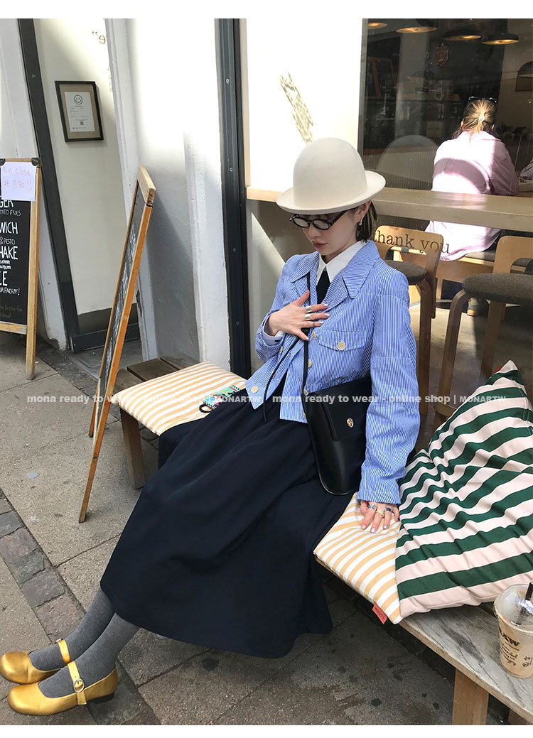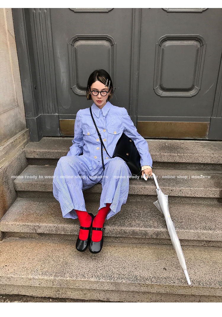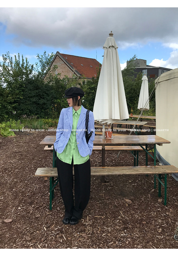 MONARTW retro jacket waist-cinching mid-rise pants set