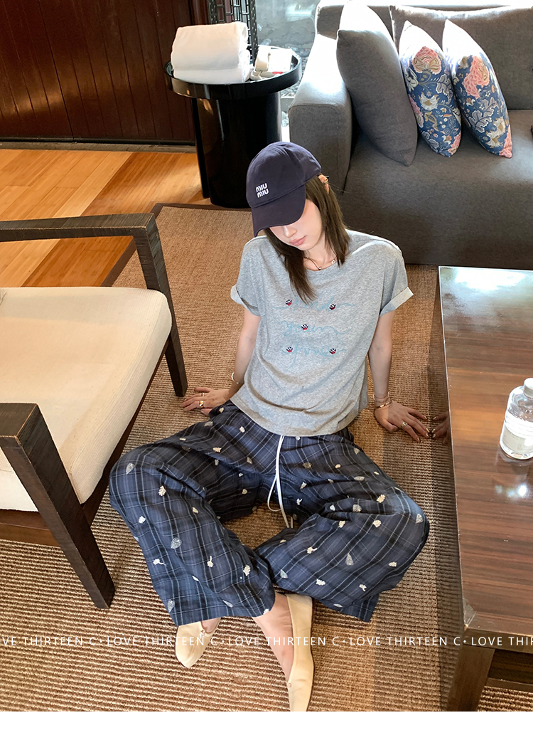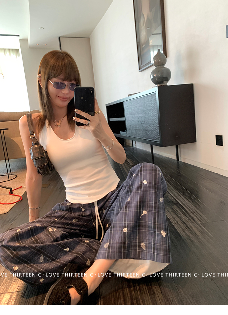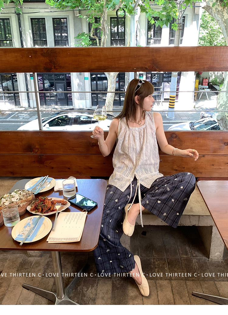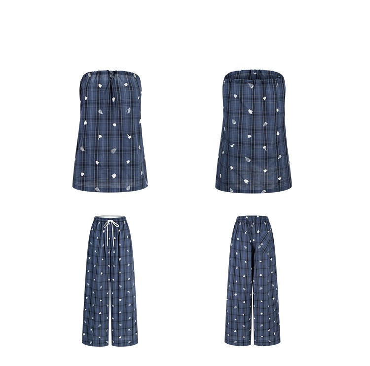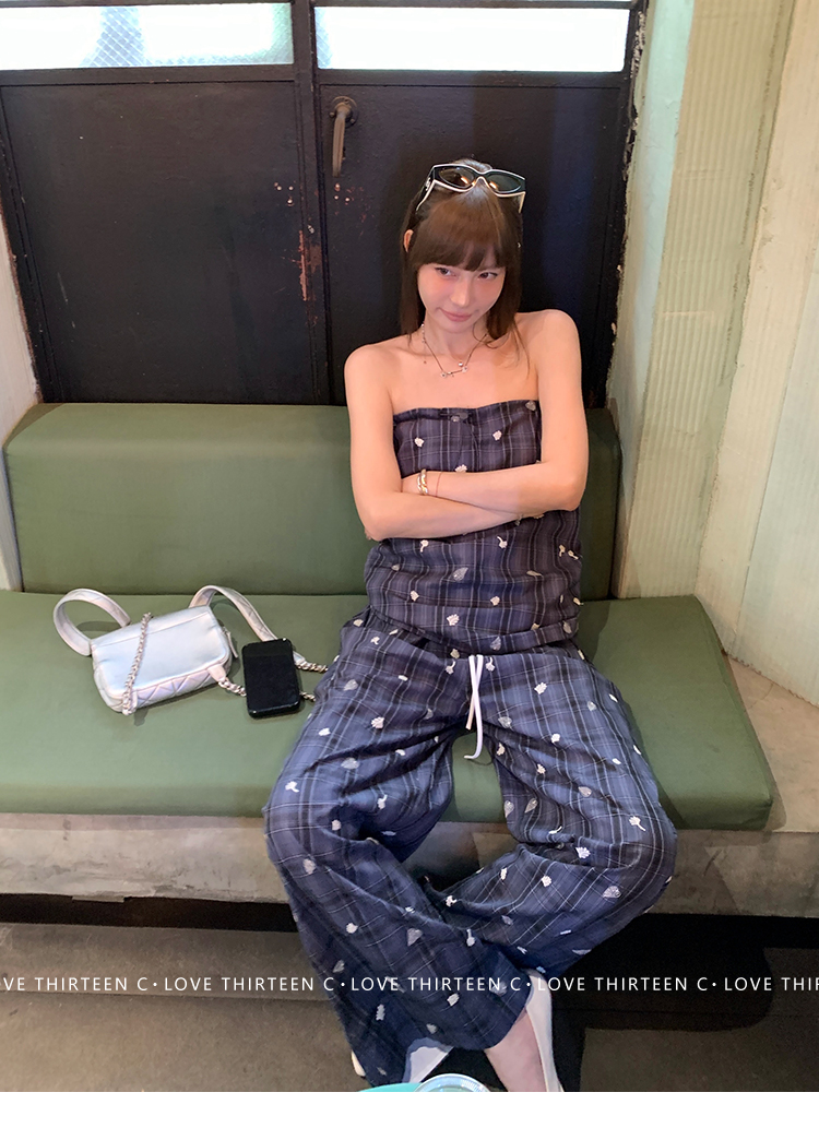 TC Light Oxygen Embroidery Drawstring Tube Top + Wide Pants Set